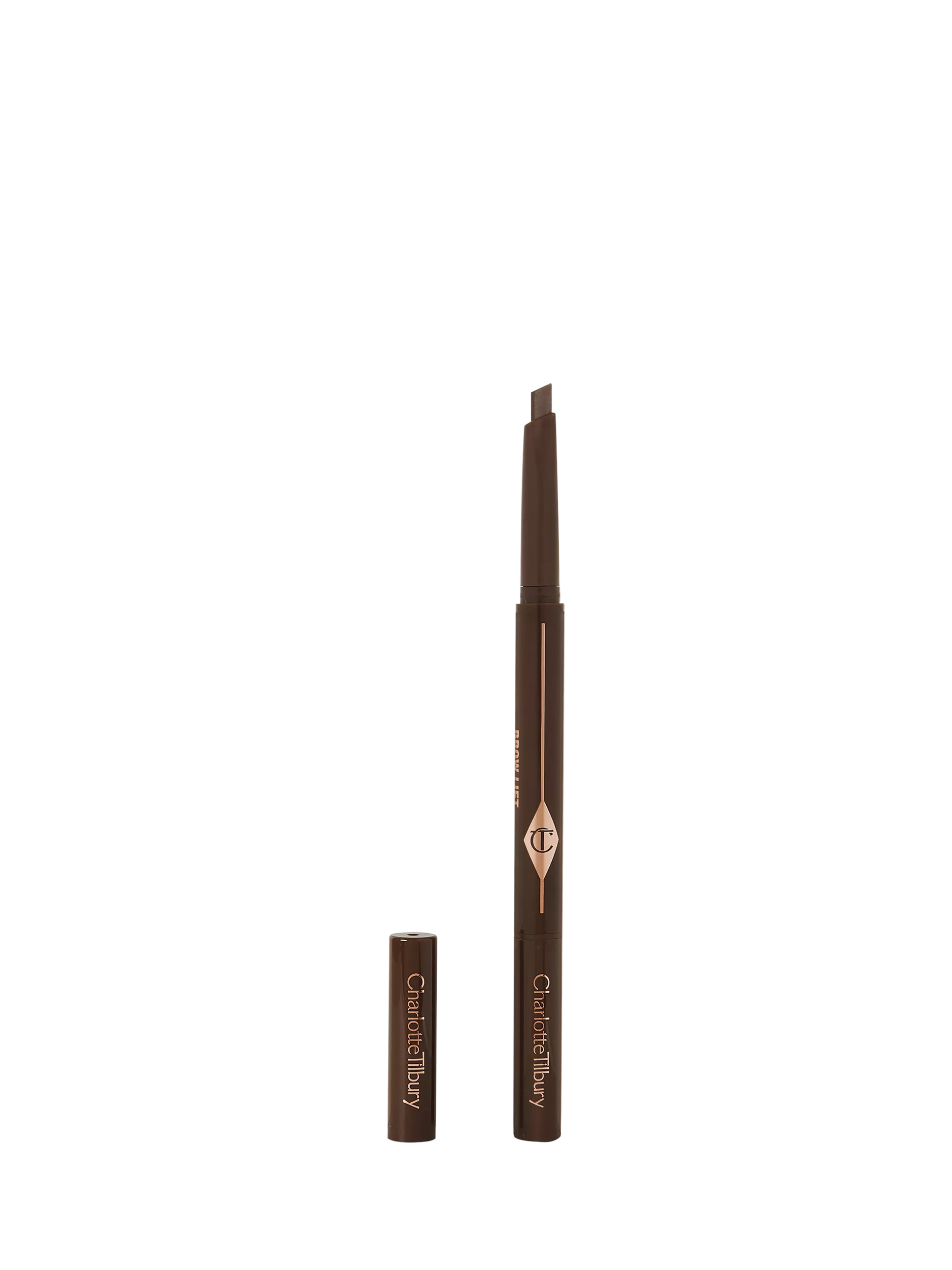 "I wanted to innovate a brow perfecting tool that gives everyone perfectly shaped and defined brows – never stamped on! The formula is so rich in emollients, it glides on and stays! It has pure pigments for natural-looking colour with depth for your best brows." Charlotte Tilbury.