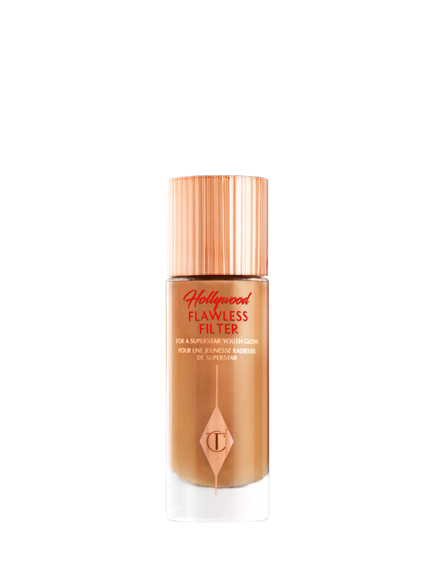 "Darlings, get your Hollywood glow on with my award-winning Hollywood Flawless Filter! Inspired by the perfecting properties of social media and illuminating effects of Hollywood lights, it blurs, smooths and illuminates for the most magical Hollywood effect glow of your life!"Get your glow on and unlock 4 ways to a flawless-looking glow by wearing Hollywood Flawless Filter alone, underneath, mixed with or on top of your favourite foundation! Not to glow prime is a beauty crime, darlings!" Charlotte Tilbury MBE.