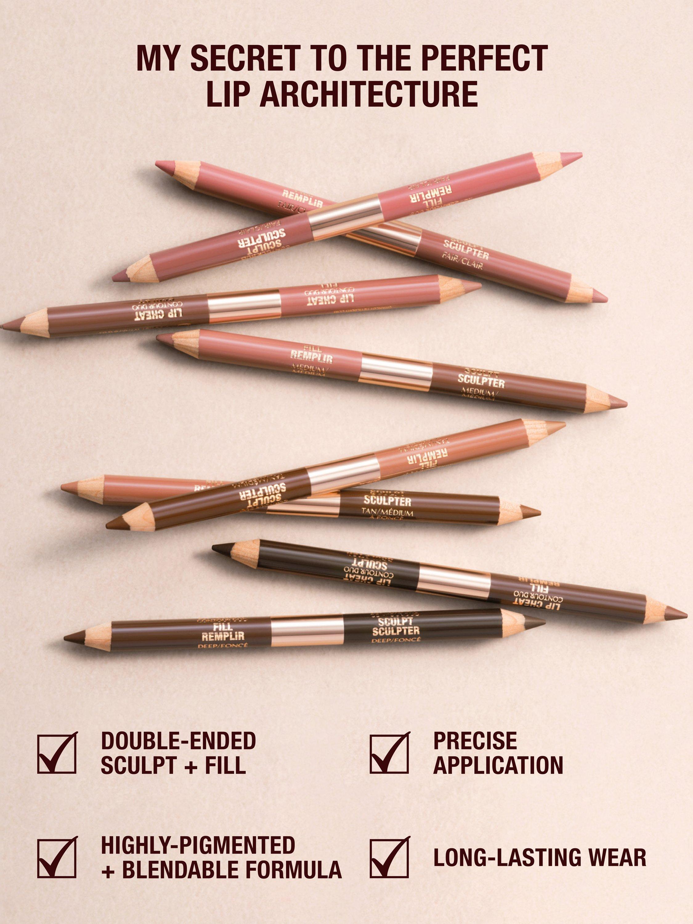 "A good nude should look good and work hard! When creating my Lip Cheat Contour Duos, I studied the nude undertones and overtones that lips of all skin tones are naturally blessed with, then formulated fair, medium, tan and deep lip liner duos with a flawless balance of beige, brown, peach and blush tones. Each shade is super-nuanced and super-intelligent, creating super-wearable looks that beautify every complexion, whether you have fair, medium, or deep skin, from cool to warm." Charlotte Tilbury MBE.