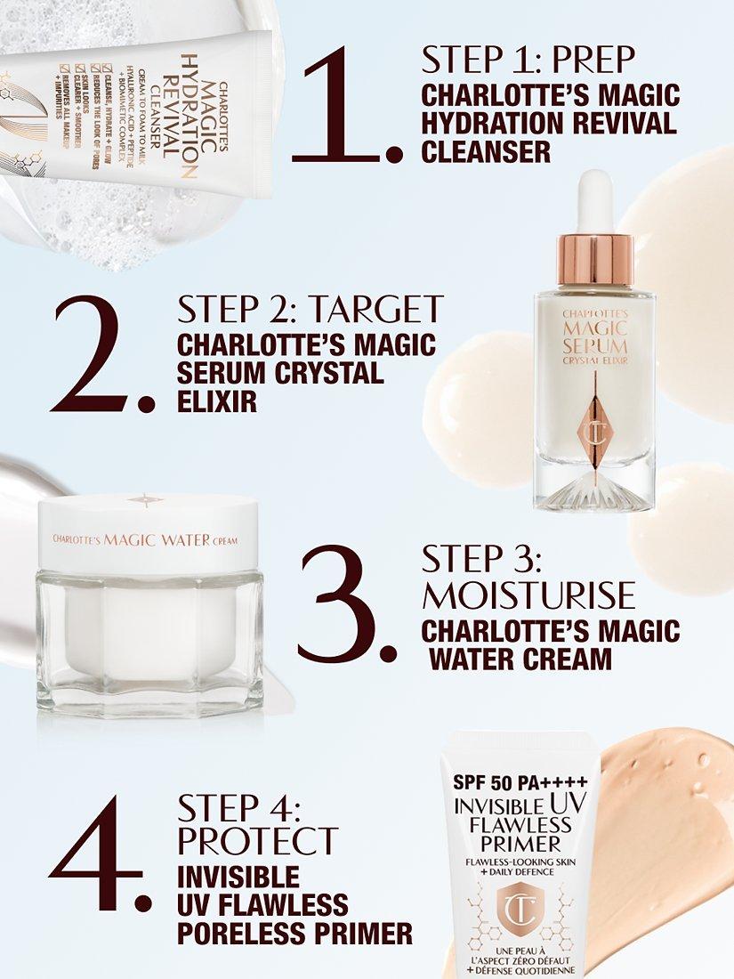 “Darlings, I want to keep spreading the magical energy of makeup and skincare throughout the world. When developing my new Magic Serum Crystal Elixir I wanted to create a quick and easy, targeted serum solution to improve the outward appearance and enhance the skin’s texture for smooth makeup application. I have infused my latest formulation with ground-breaking, clinically proven ingredients developed in the world’s leading skincare laboratories to give everyone, everywhere real science to unlock your confidence.” Charlotte Tilbury.