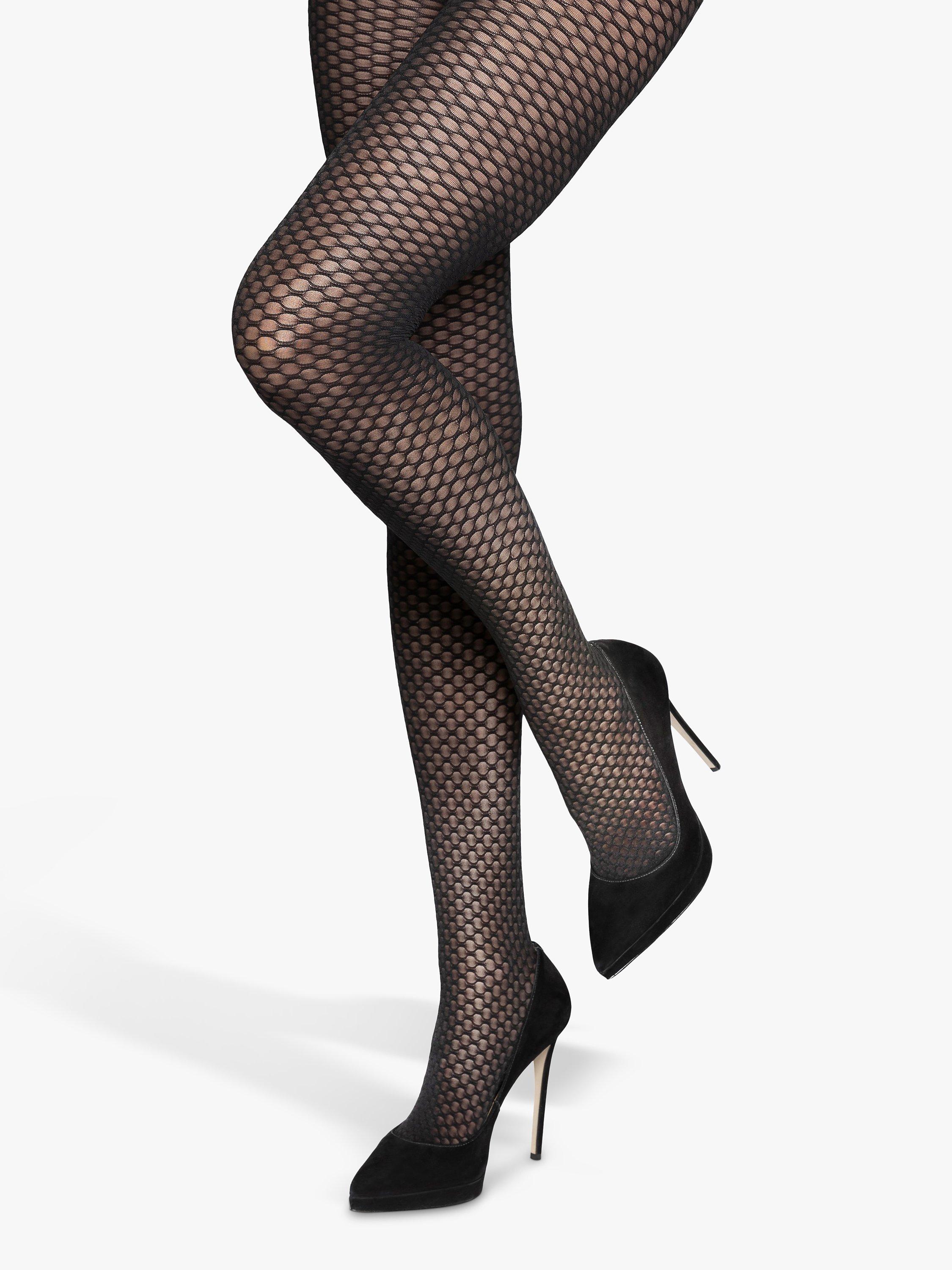 These Italian made fashion tights are finished with a geomtric honeycomb design.