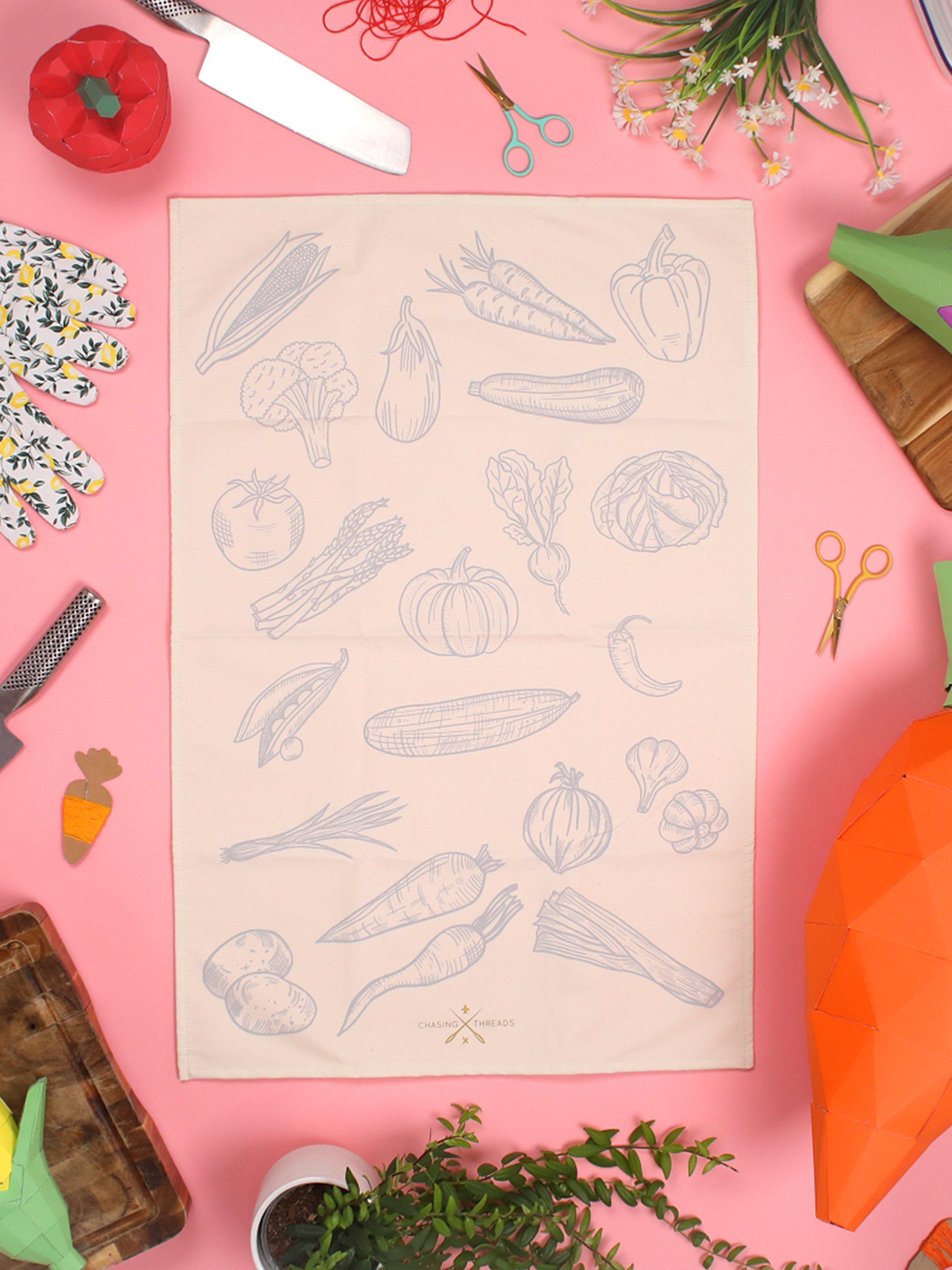 Chasing ThreadsVeggies Tea Towel Embroidery Kit