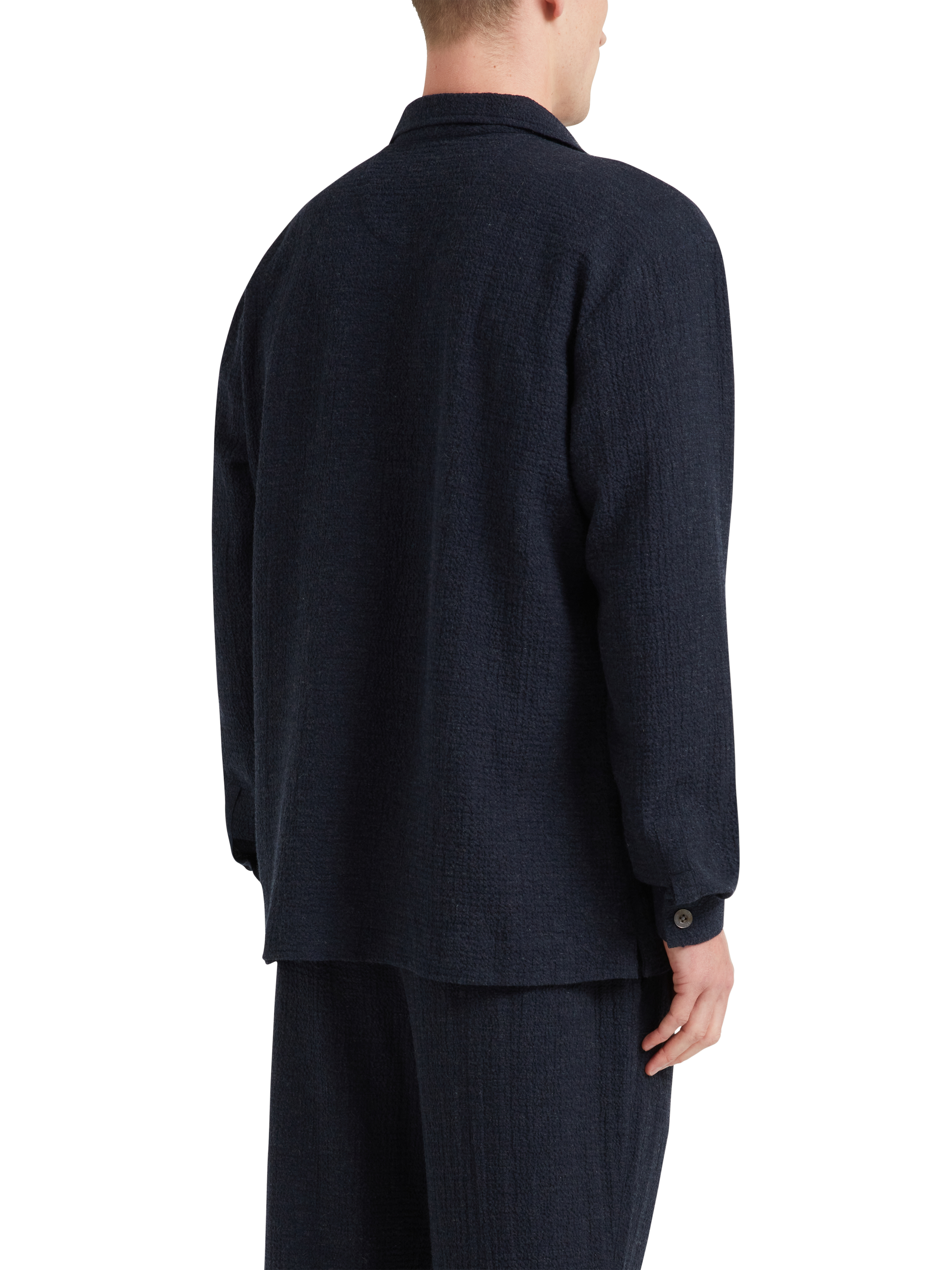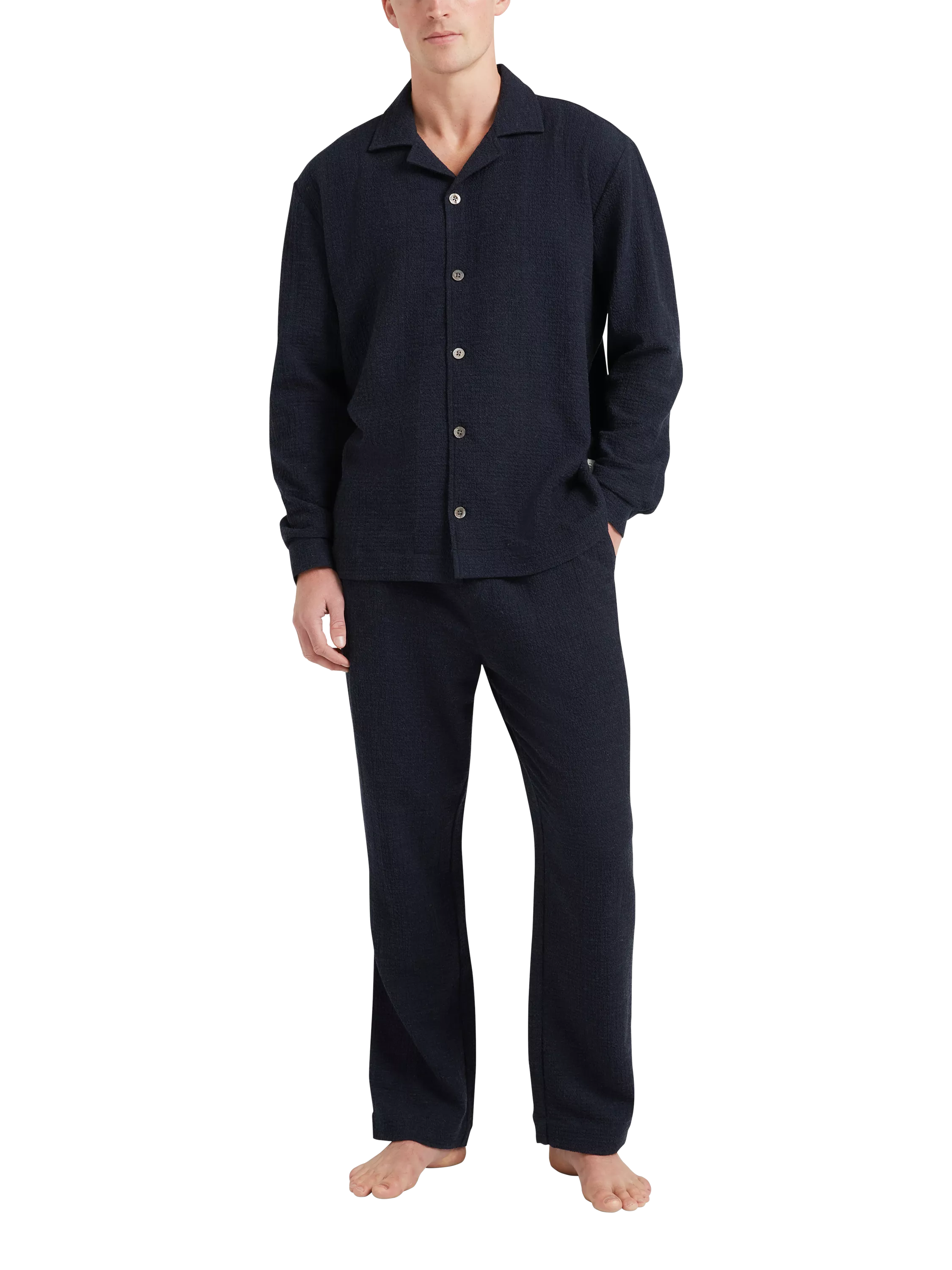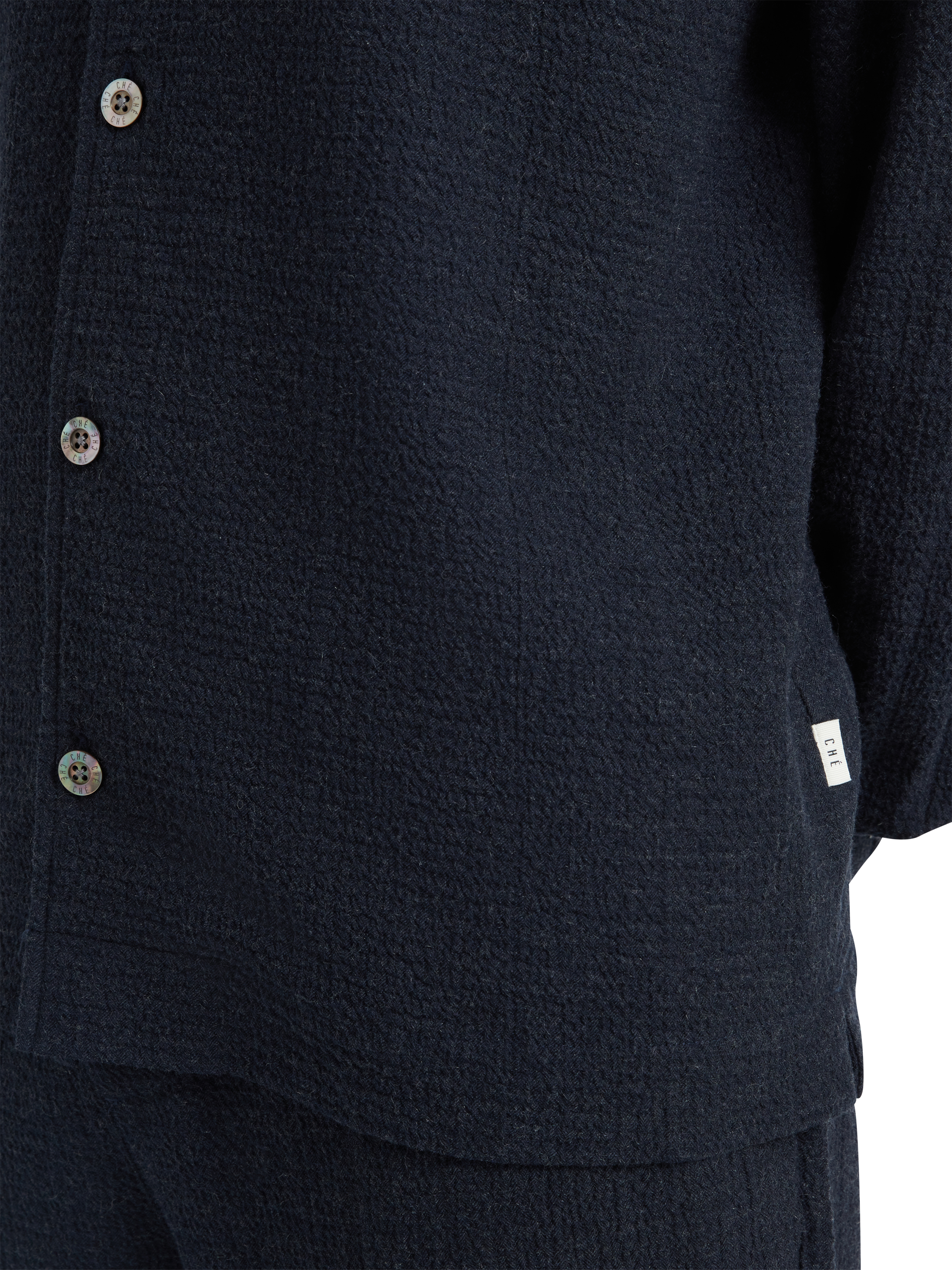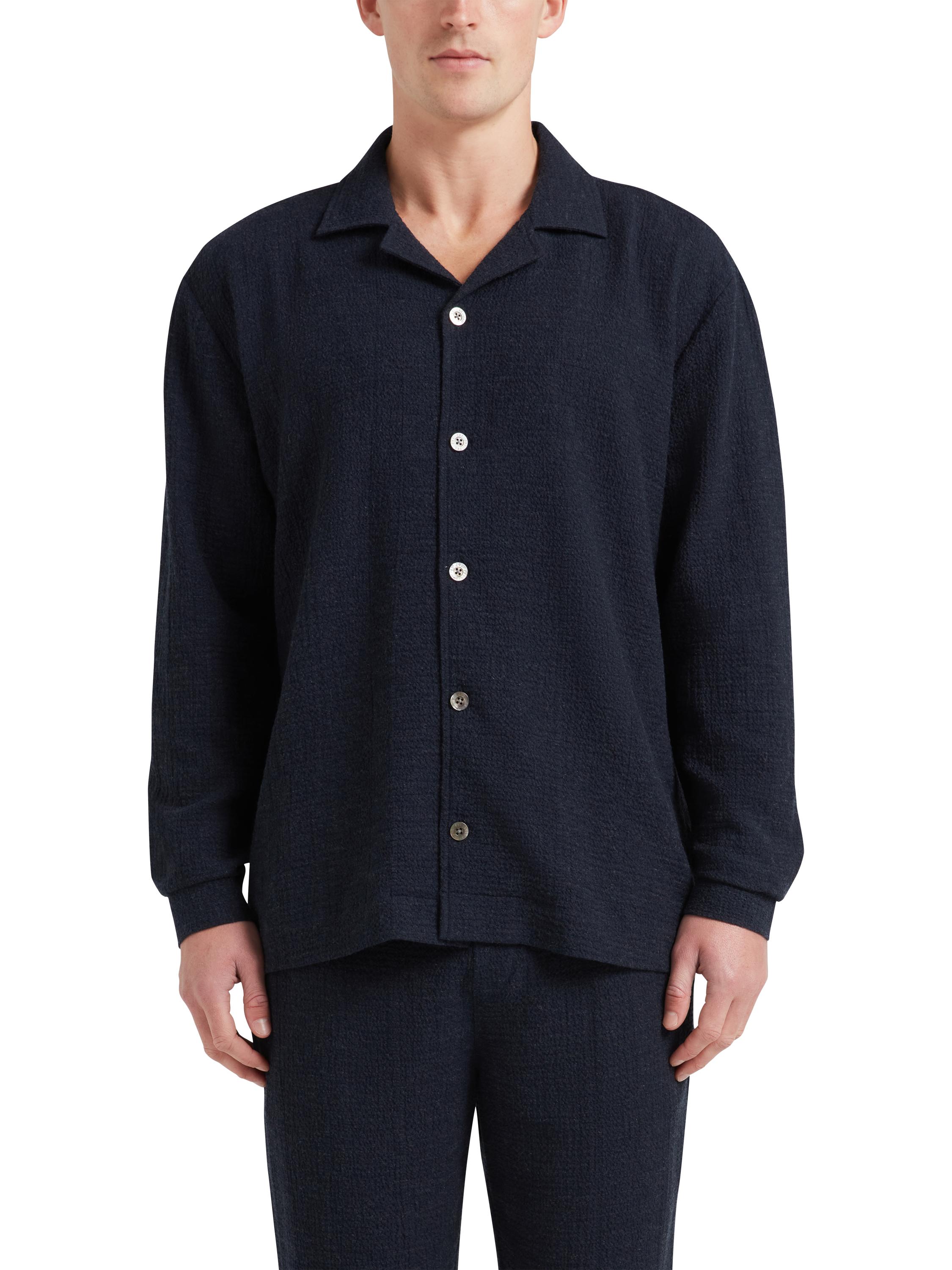 Elevated sleepwear for the modern man. Woven in a super-soft cotton and cashmere blend, this pyjama shirt has a subtle texture and relaxed fit. It features a revere collar and oversized trochus shell buttons.