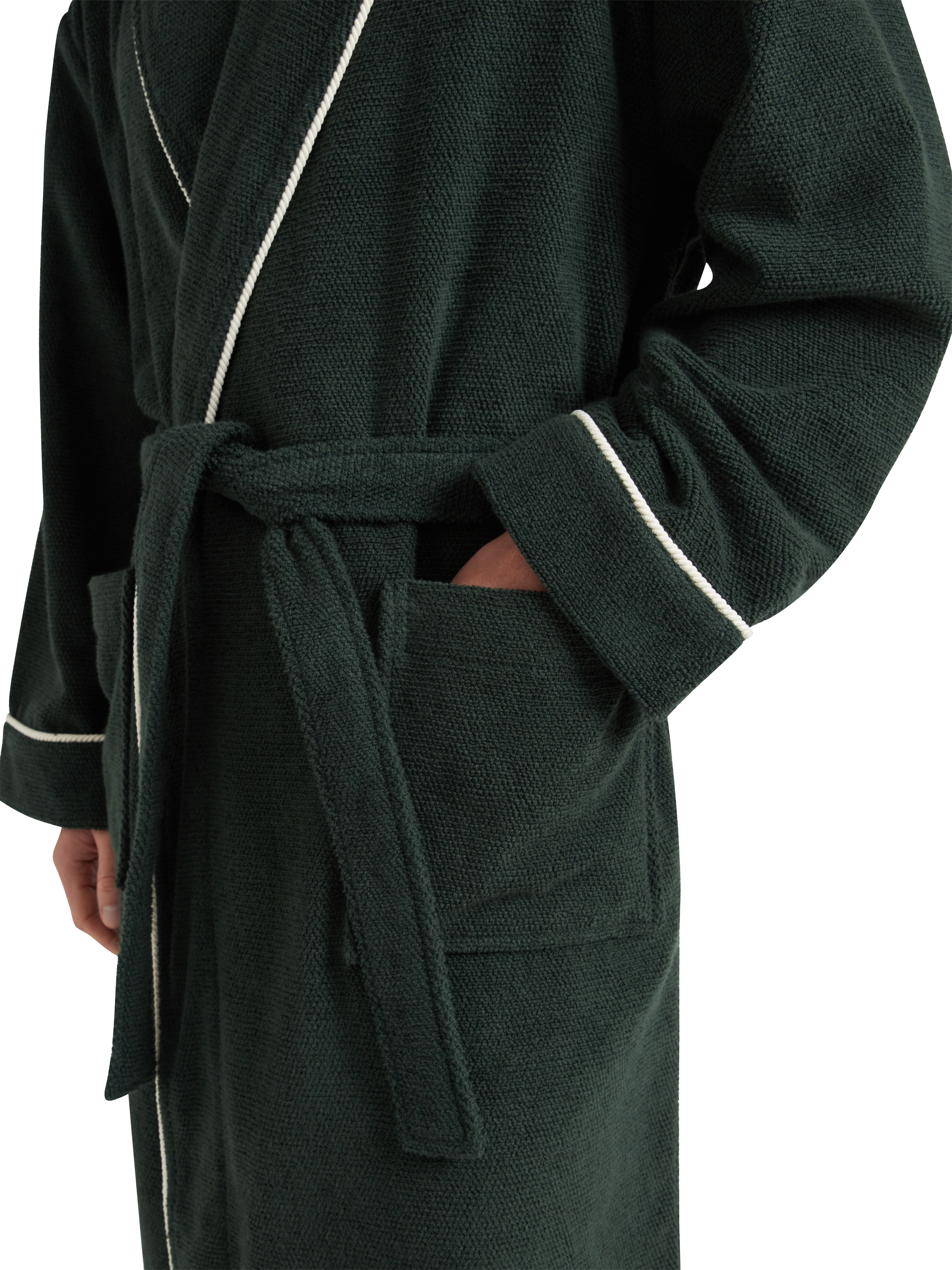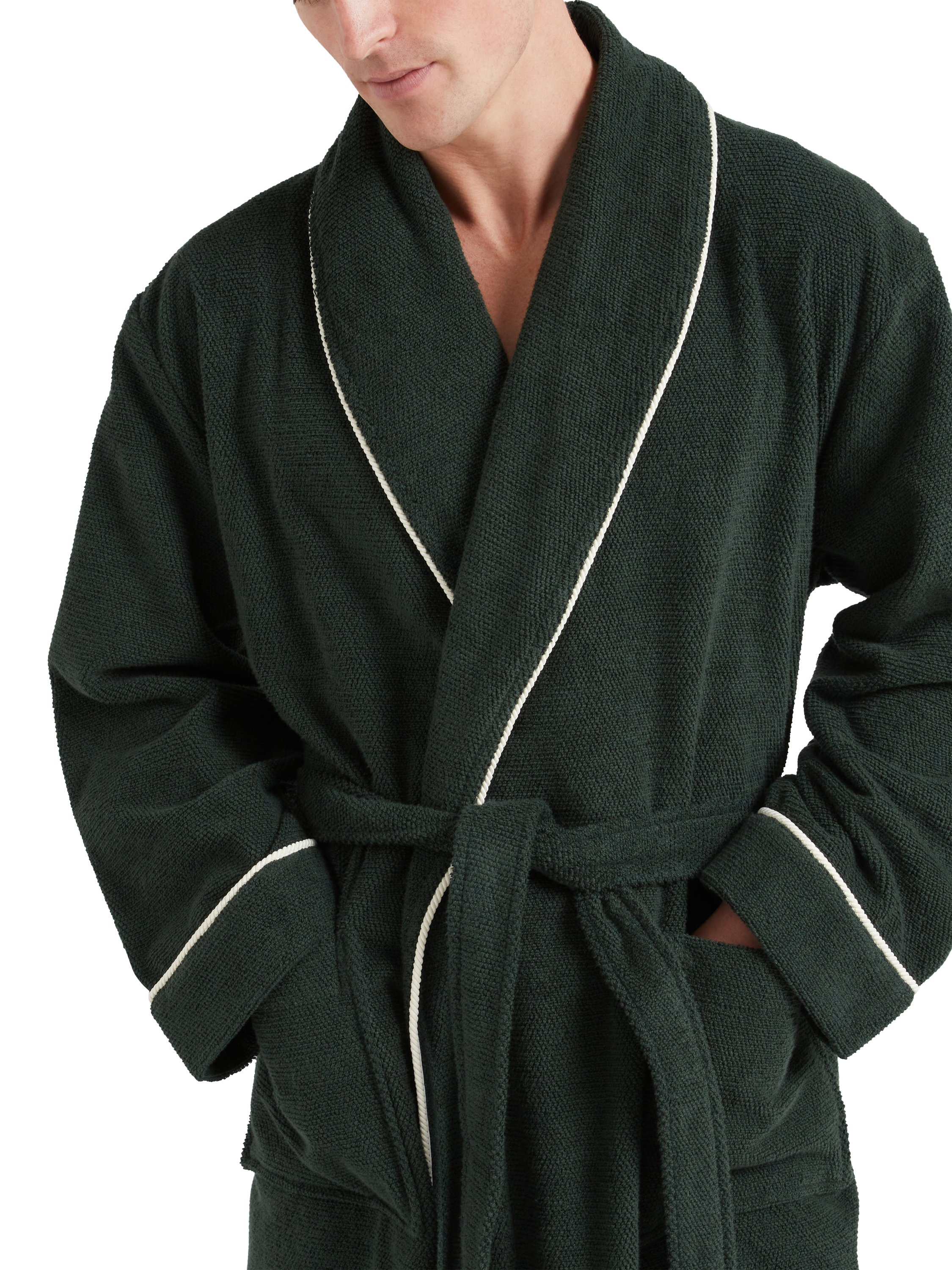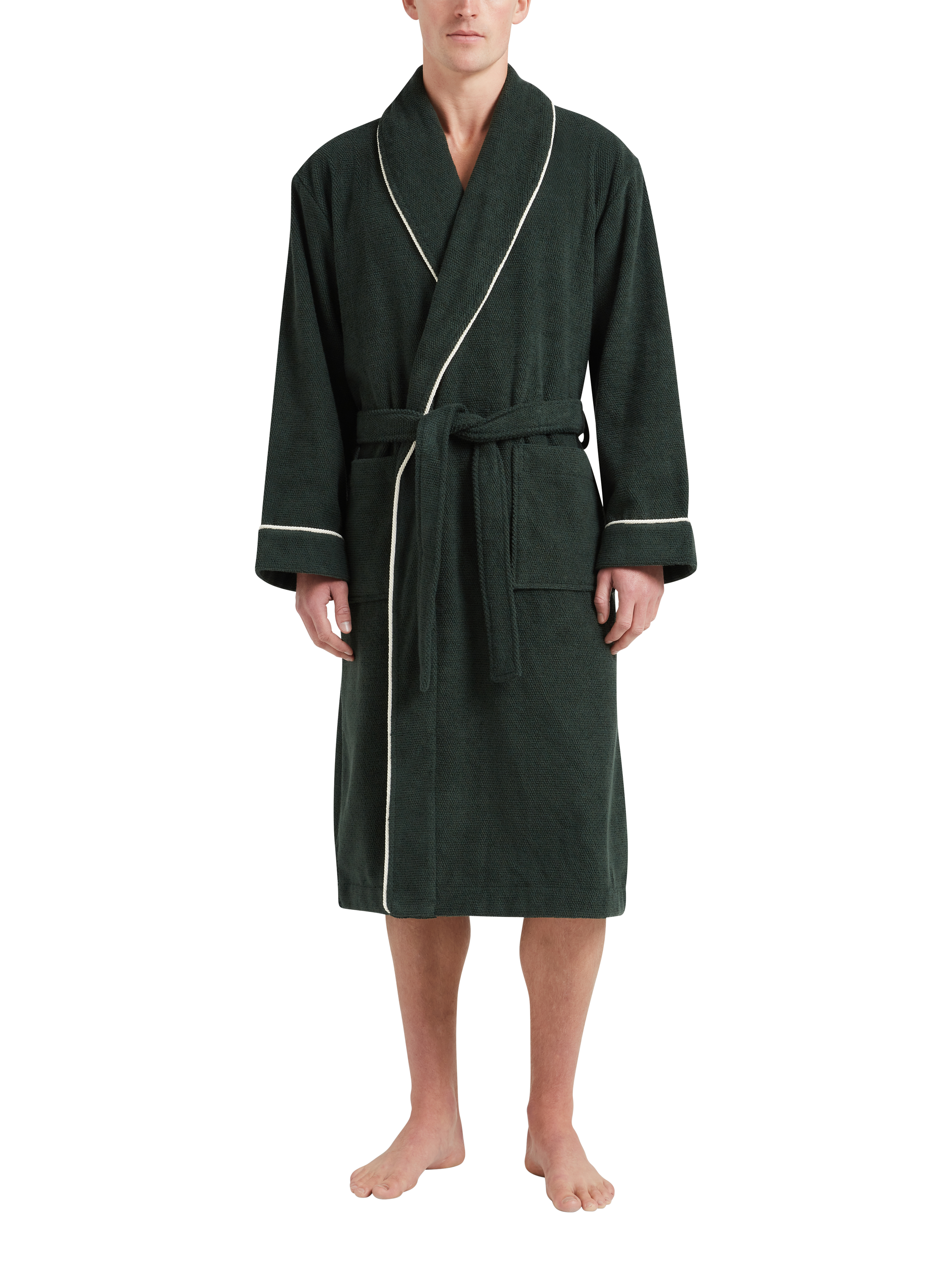 Made from heavyweight cotton, this dressing gown offers long-lasting comfort and warmth. The substantial weight of the fabric also makes this an ideal post-shower choice, while contrast piping provides a refined finishing touch.