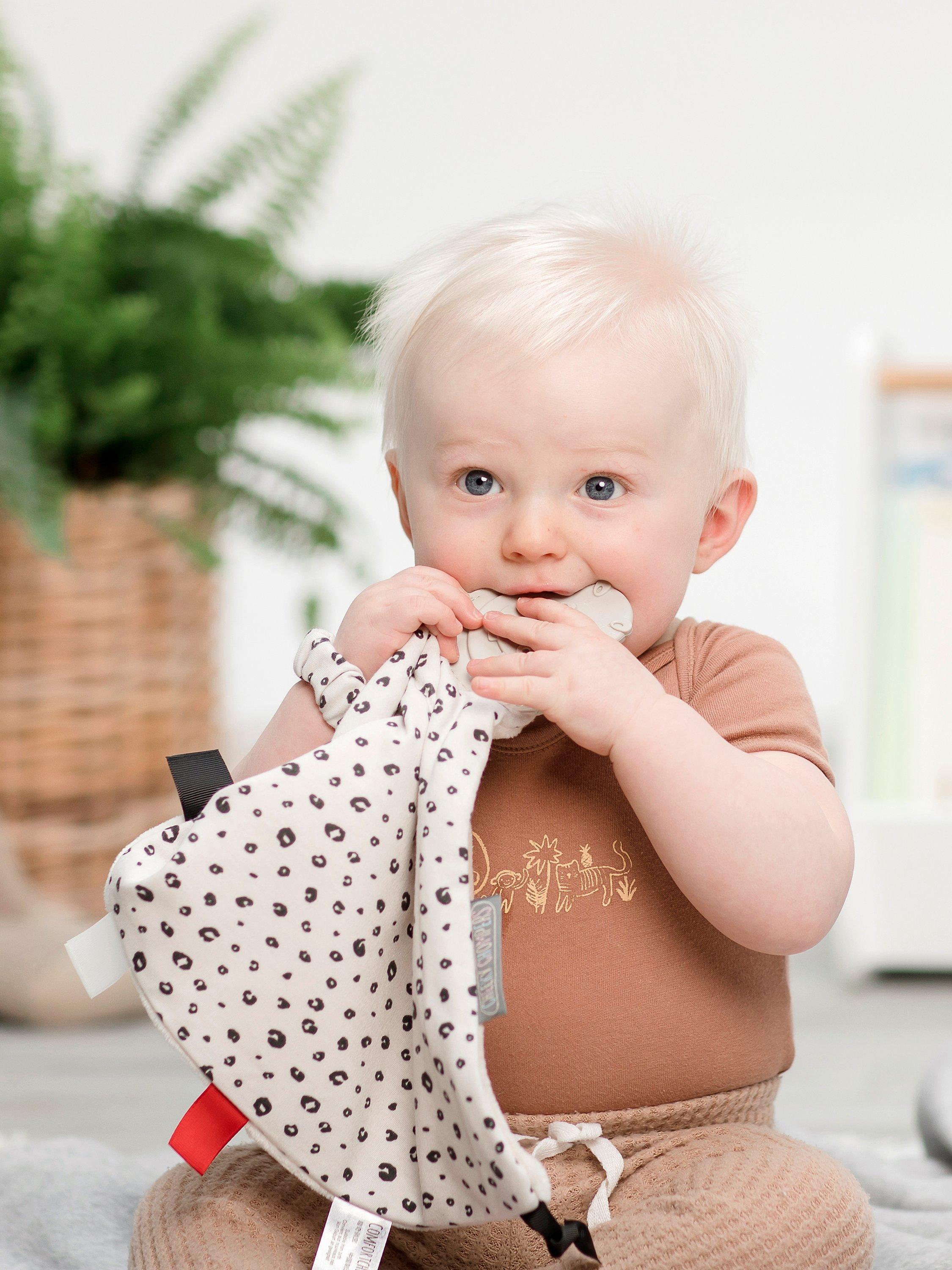 With super-soft jersey cotton and cuddle fleece that's delicate on young skin, the Comfortchew combines baby's favourite essentials - comforter, teether, sensory tags, and a soft feel similar to that of their favourite teddy.