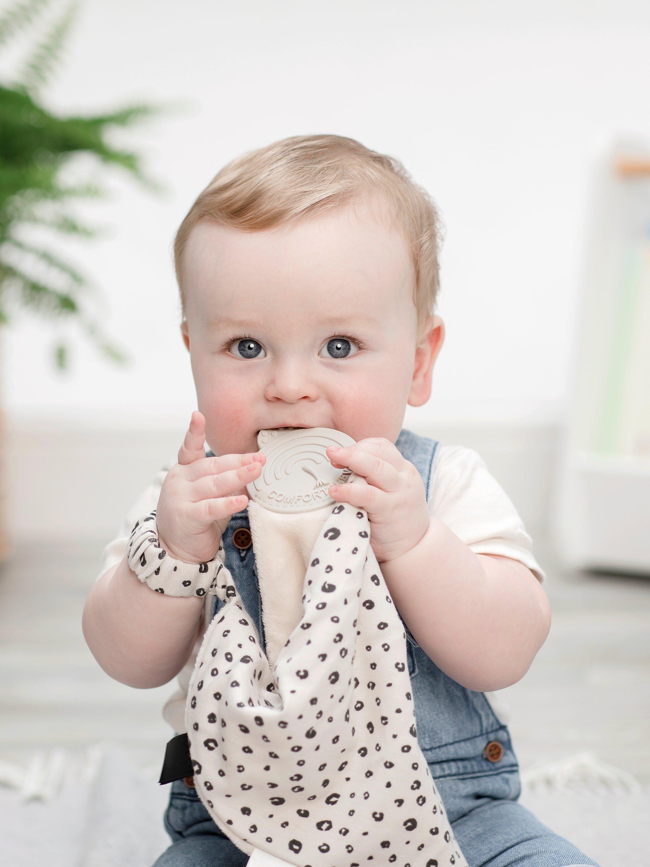 This clever comforter, the Comfortchew from Cheeky Chompers, is super soft and snuggly, with an attached teether. It has everything you need to comfort and soothe your little one.
