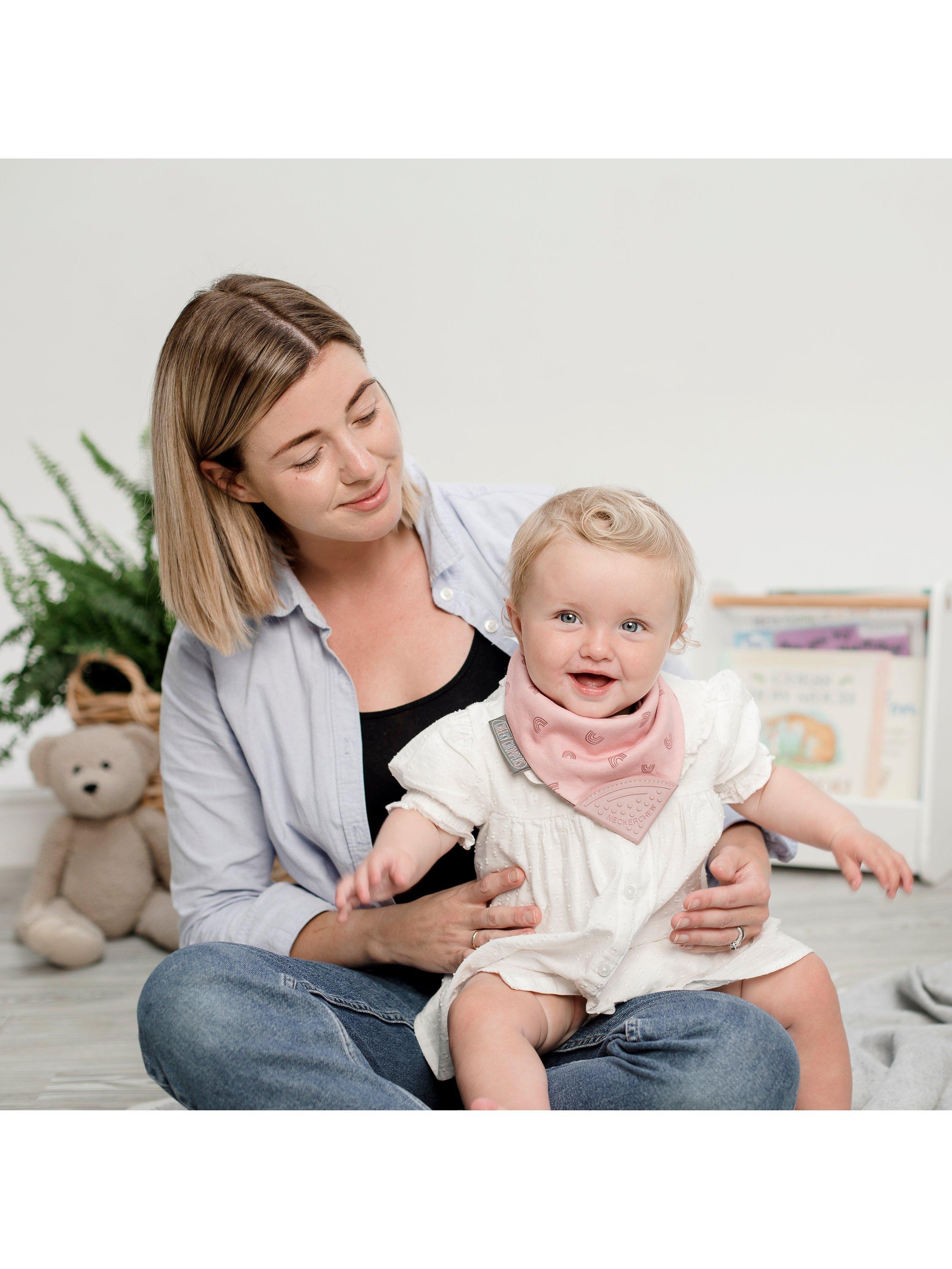 This stylish teething dribble bib lets baby chew away those teething pains with a soothing alternative to less hygienic options - no longer will you need to pick dropped teethers off the floor. It's also super absorbent with a triple-layer quality cotton, to catch all those drools and keep your baby dry. It is fully reversible for all-day wear making it two stylish bibs in one.