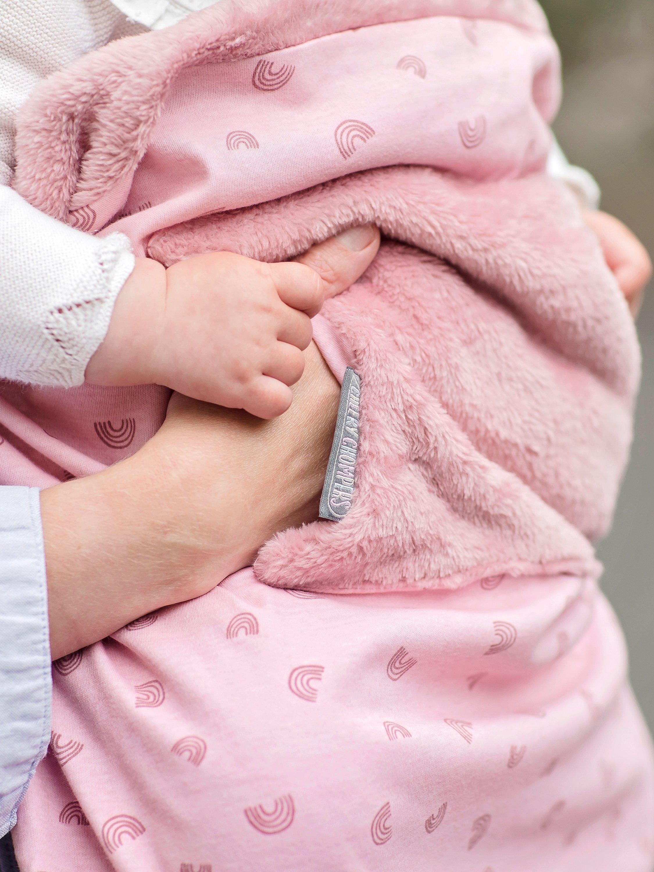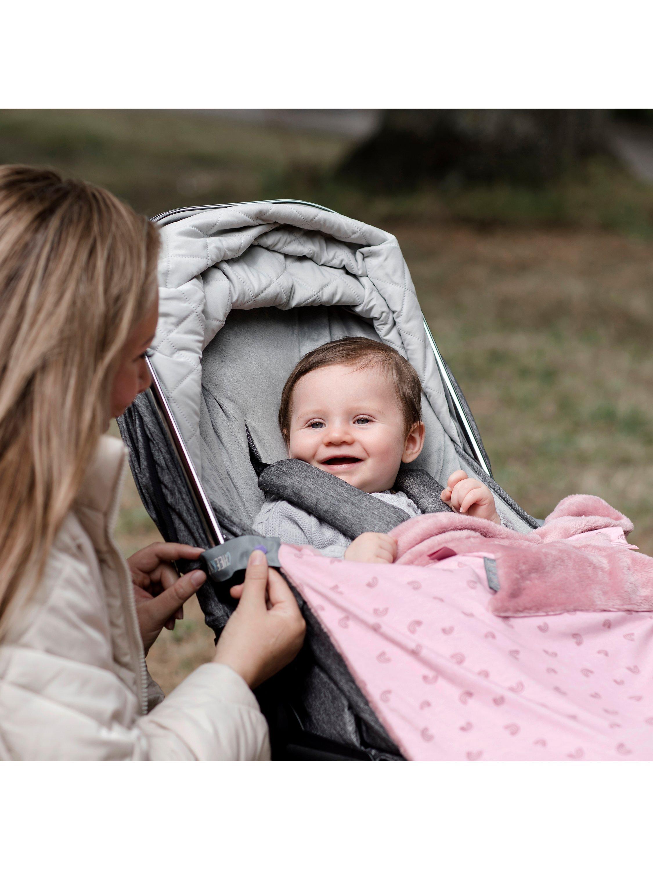 This versatile baby blanket has a soft cuddle fleece reverse and hidden pouches, to allow little hands and feet to be tucked in and kept cosy. The must-have baby blanket also has poppered straps for attaching to your baby's pushchair or car seat so it can't be kicked off or get trapped in the wheels! It can also be attached to most baby carriers for an extra layer and comfort when out on walks.