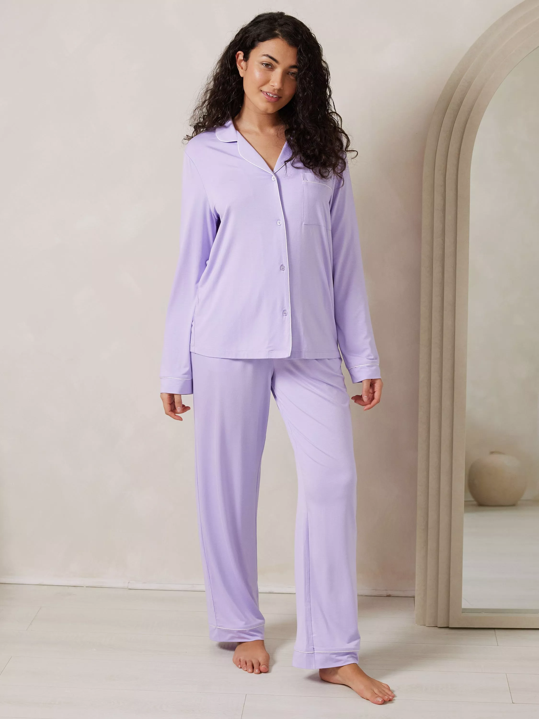 In a colour palette to wake up invigorated, this button-up pyjama set is made from TENCEL Modal, a super soft, silky fabric. Made from beech wood fibres, these pjs are both temperature regulating and durable, for good nights sleep for years to come.