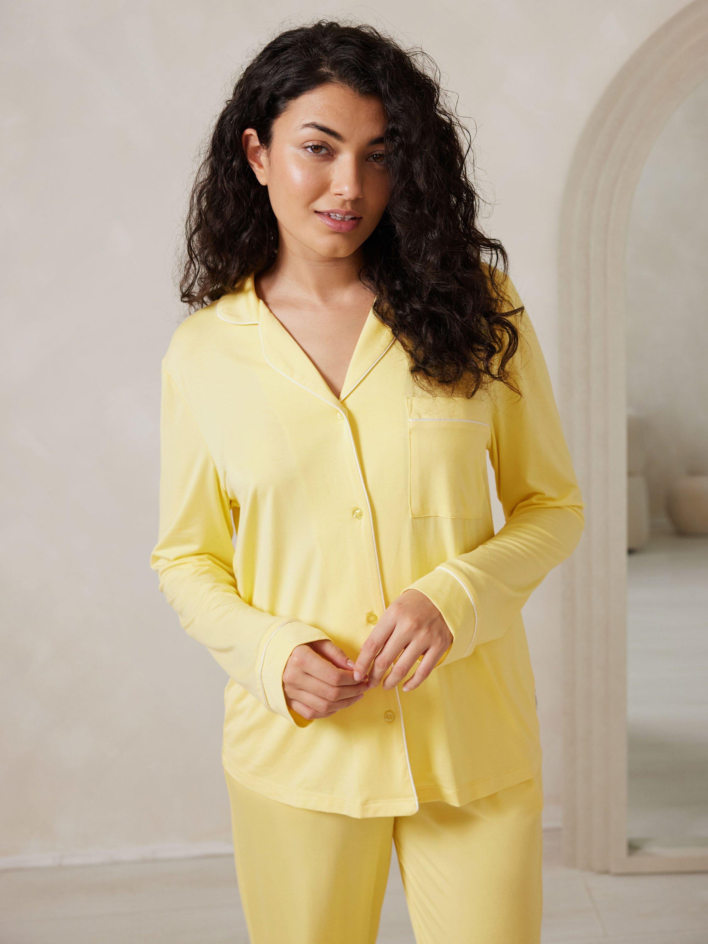 In a colour palette to wake up invigorated, this button-up pyjama set is made from TENCEL Modal, a super soft, silky fabric. Made from beech wood fibres, these pjs are both temperature regulating and durable, for good nights sleep for years to come.