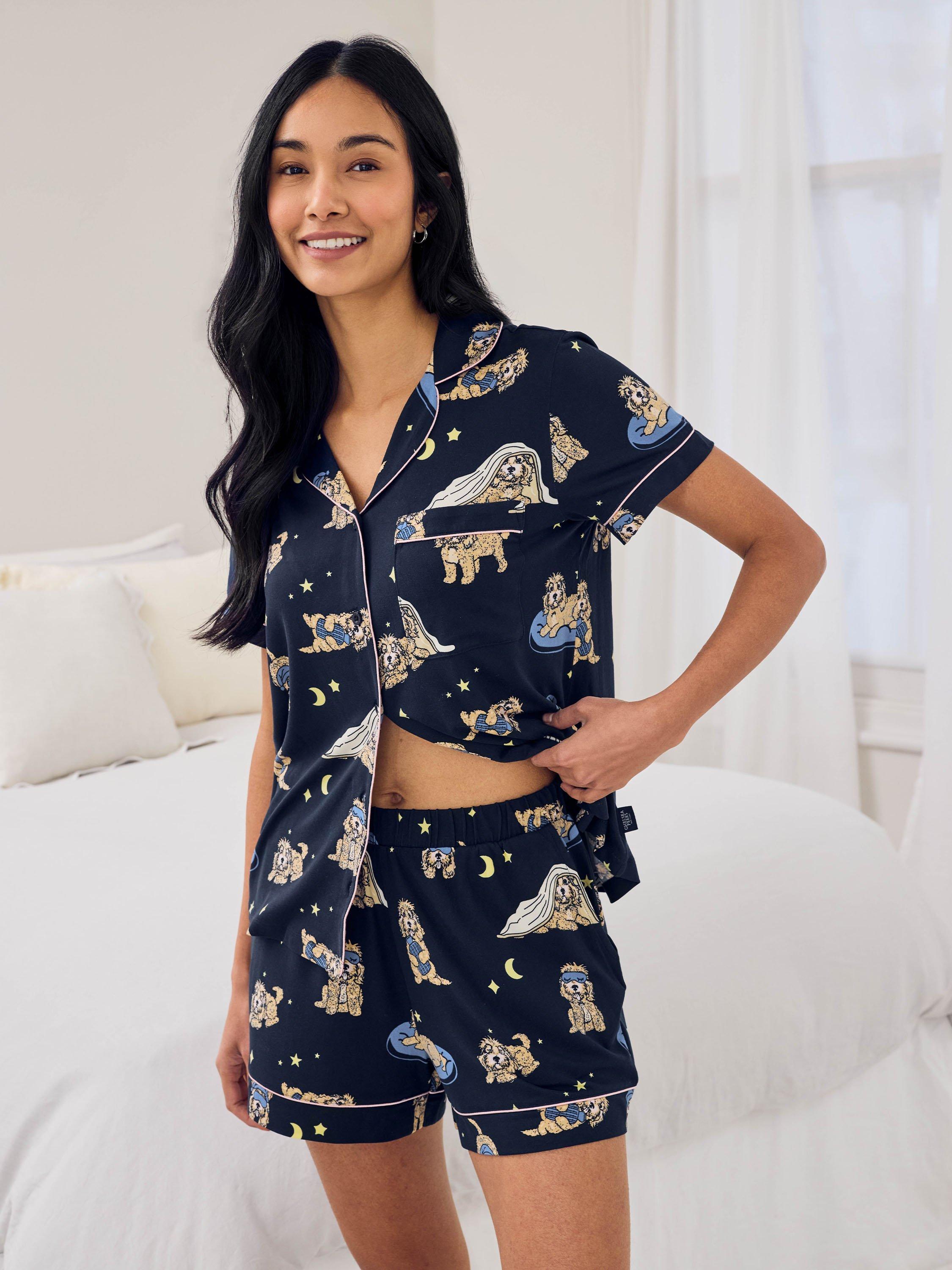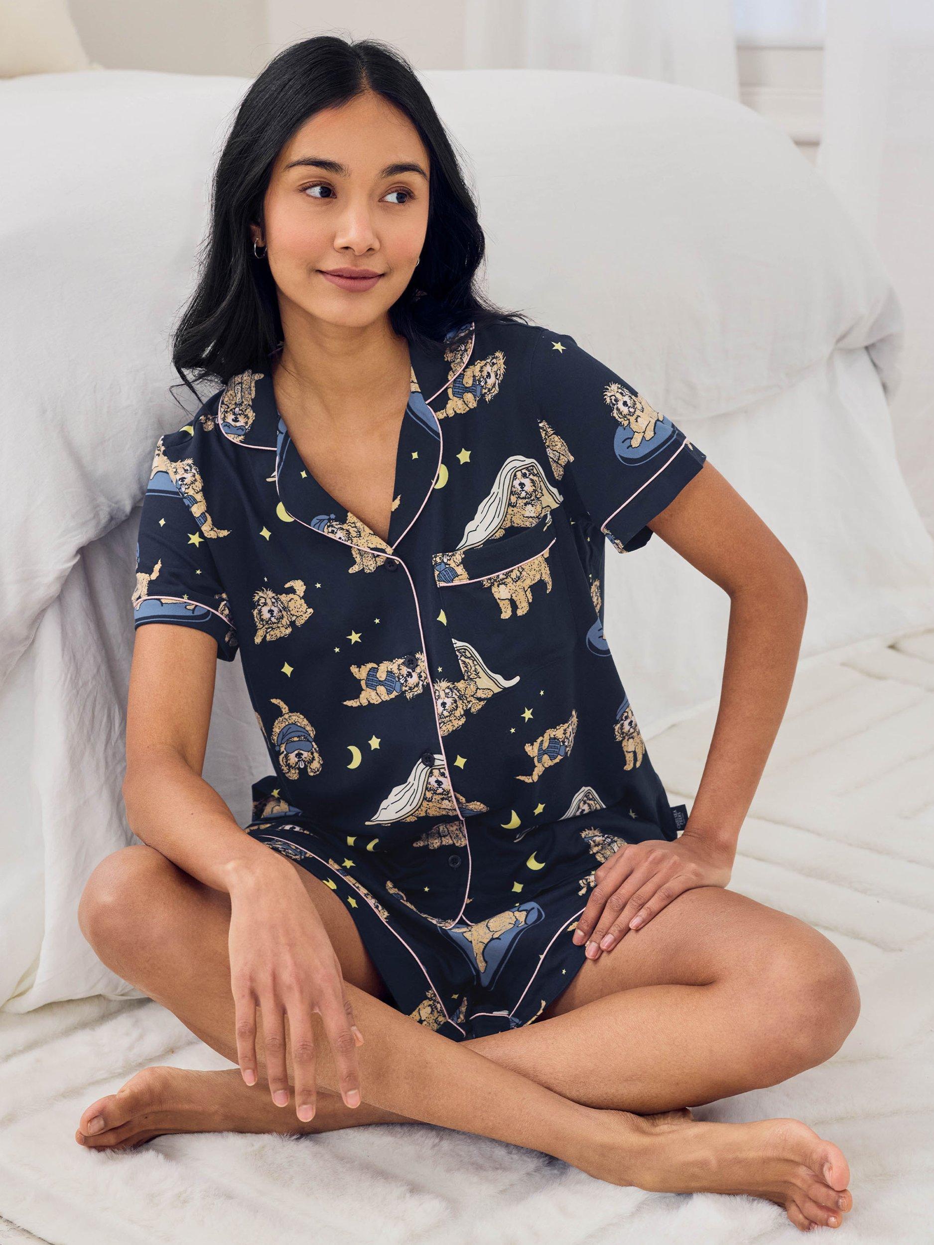 Chelsea PeersCockapoo Snooze Button Down Short Pyjama Set, Navy