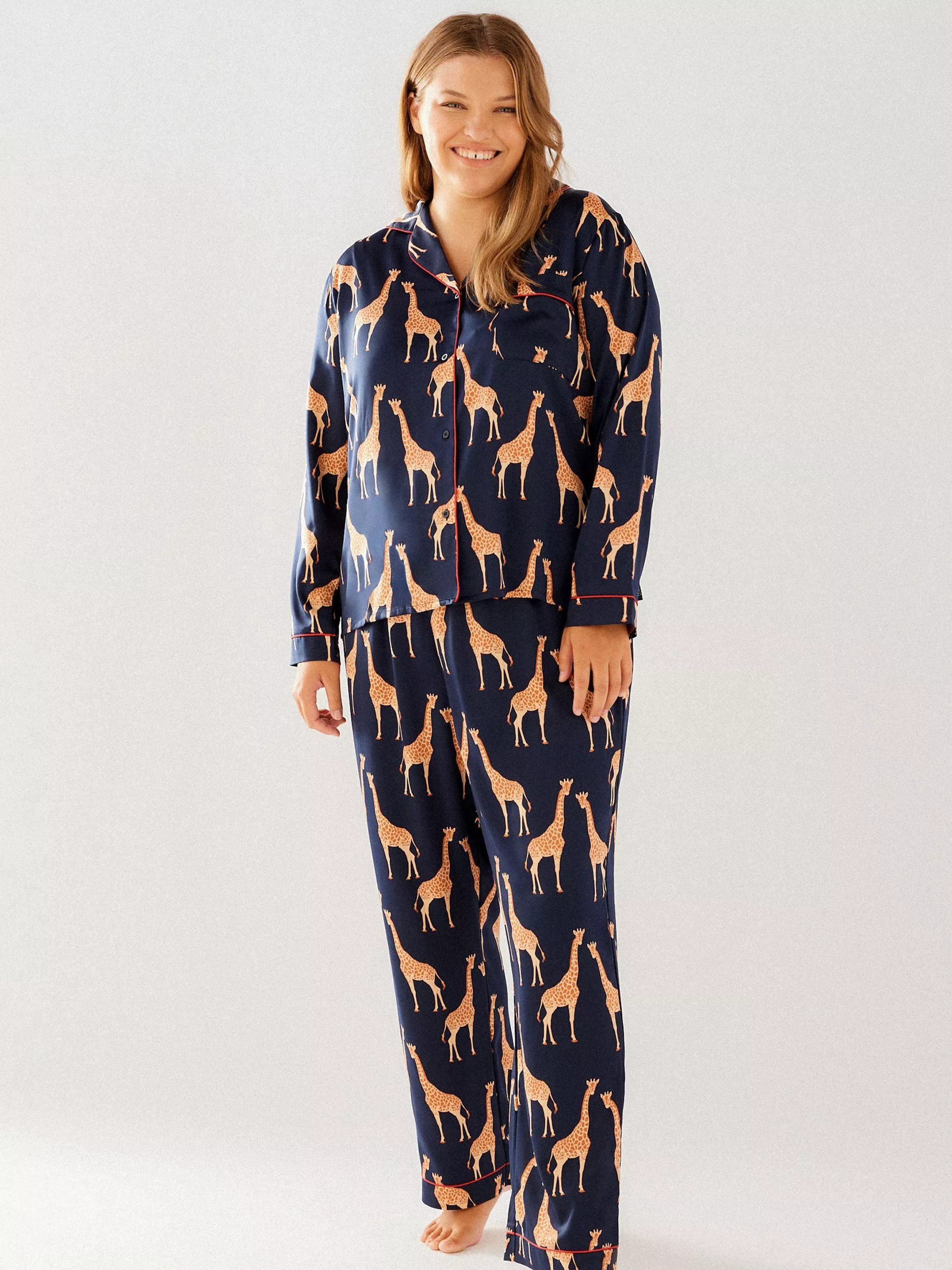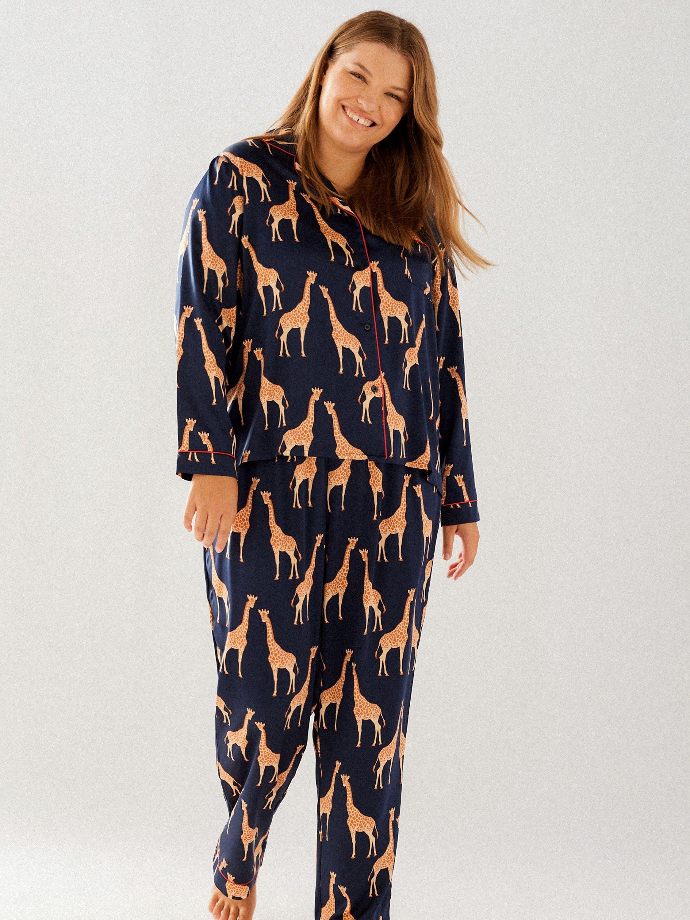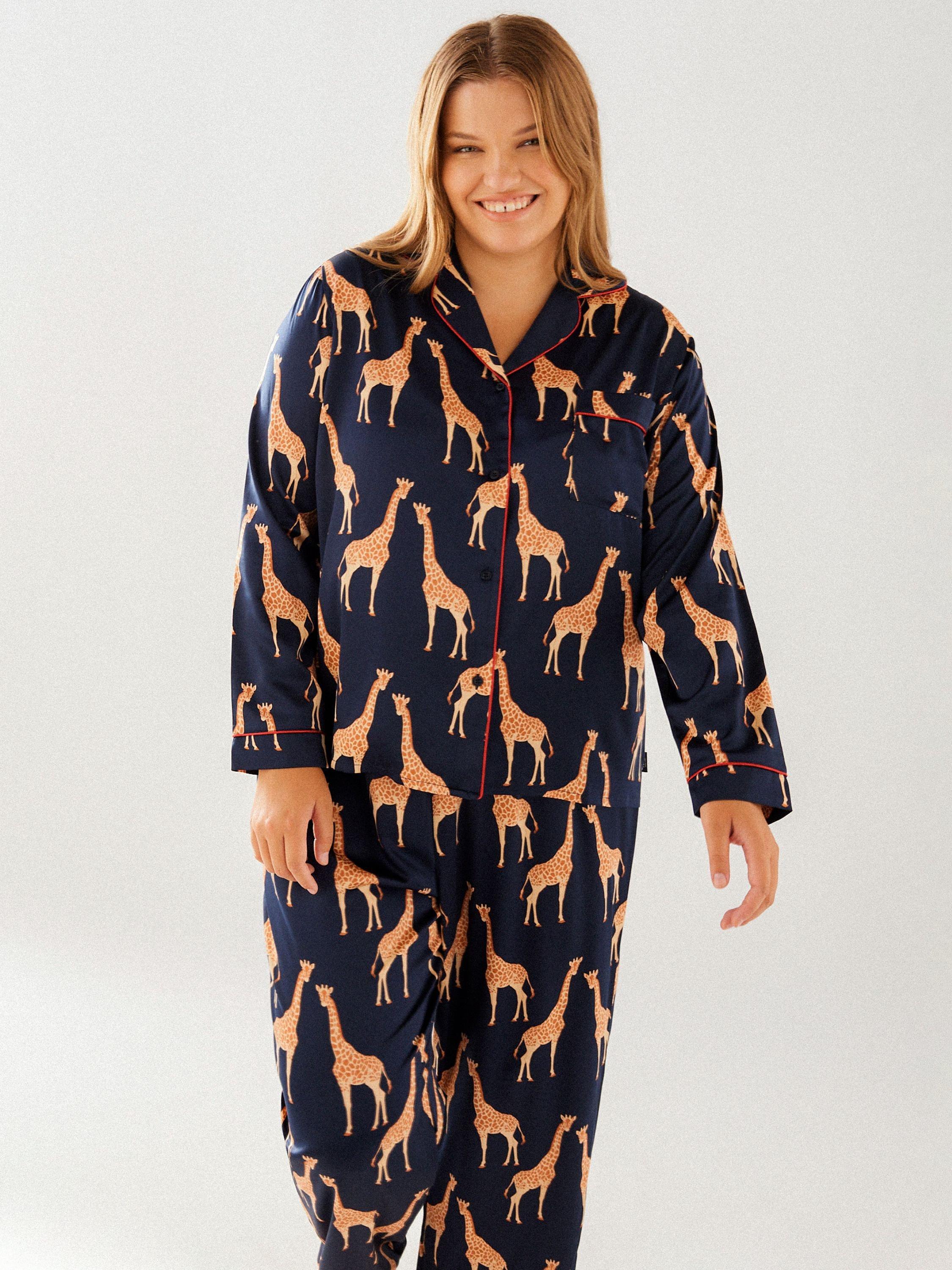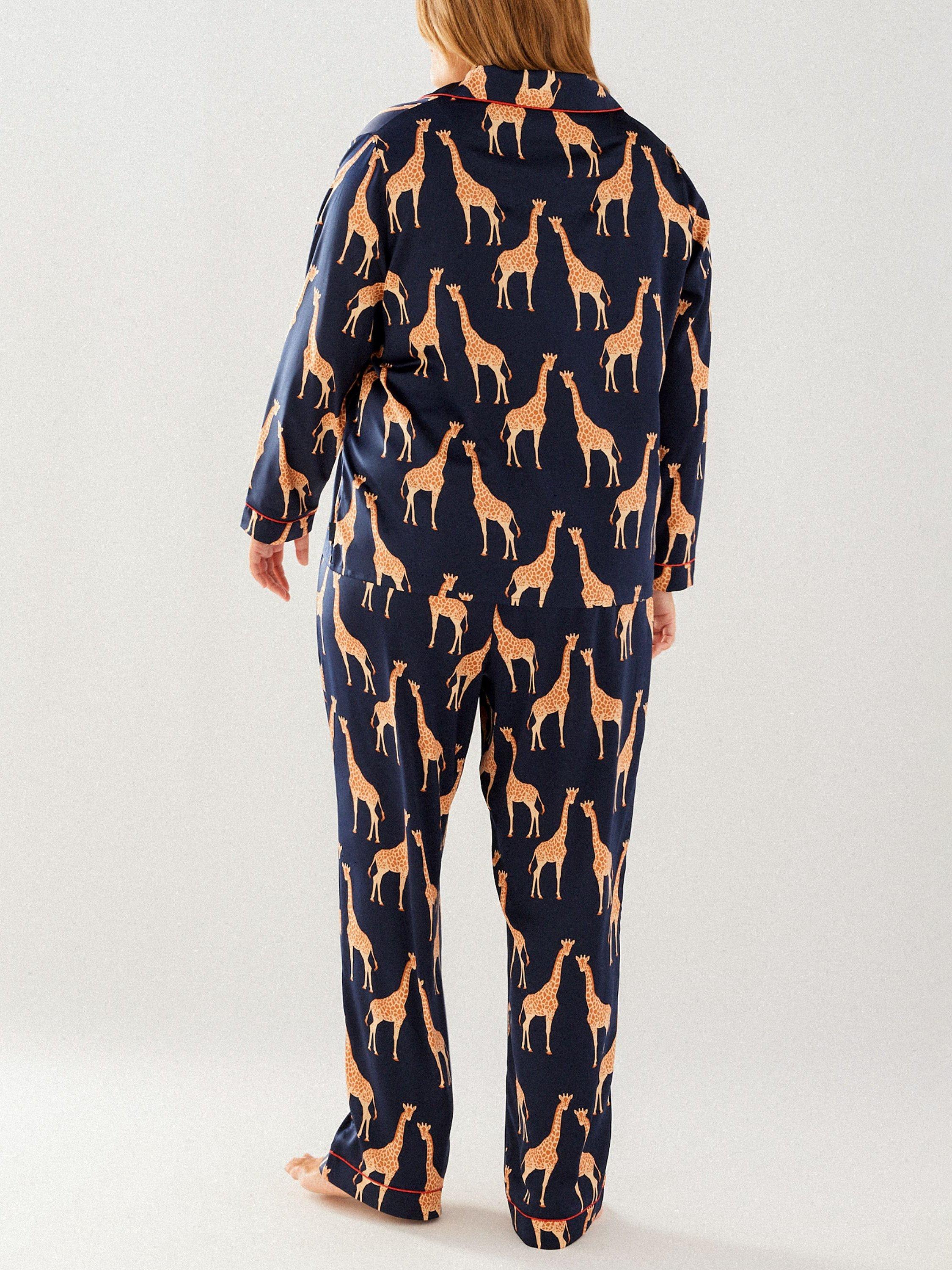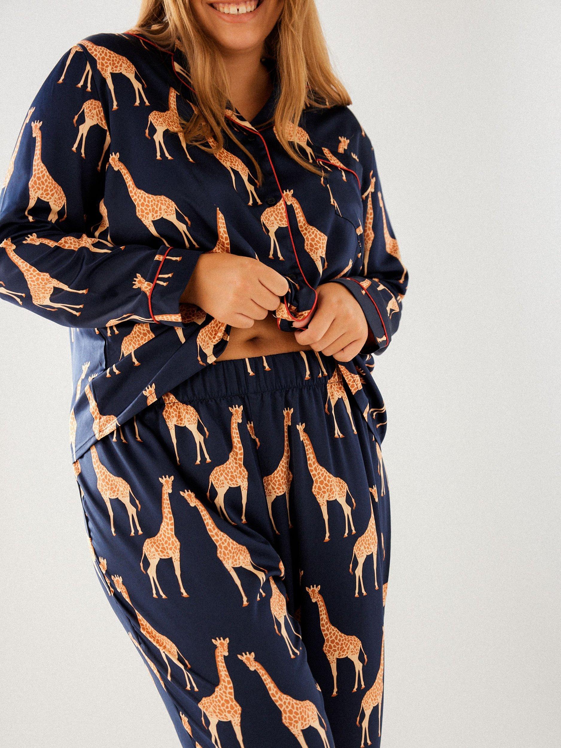 These pyjamas lend character and elegance to all your lounging pursuits, thanks to the bold giraffe print and luxurious satin feel. Reach for them whether you want to curl up with a book or have a film night in with your favourite person.