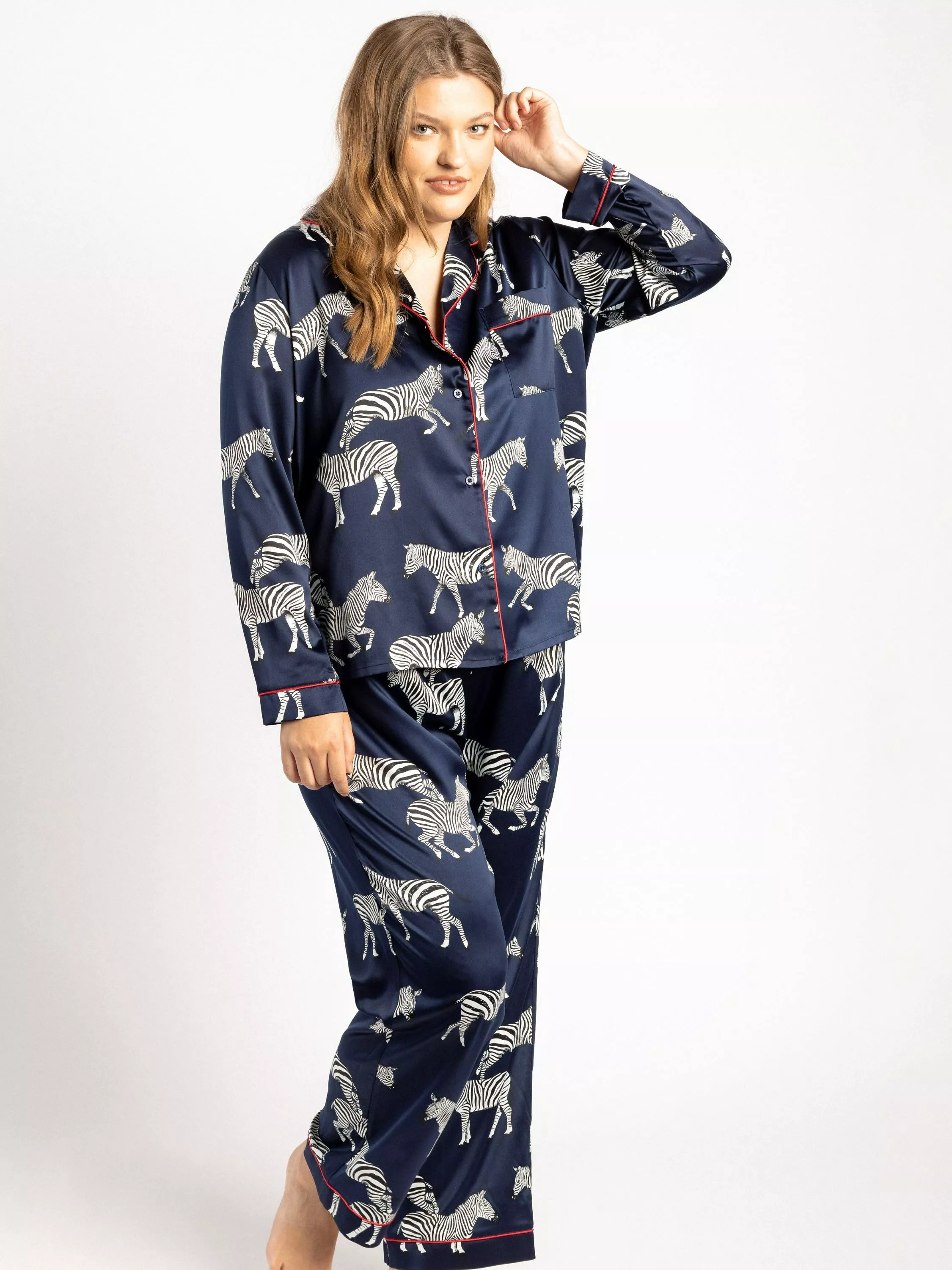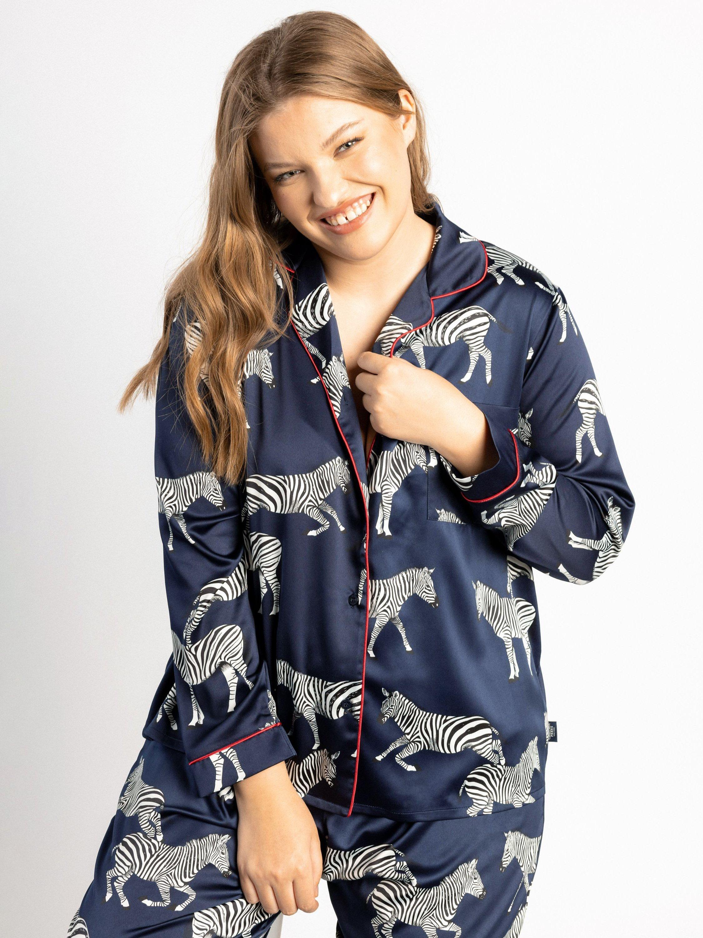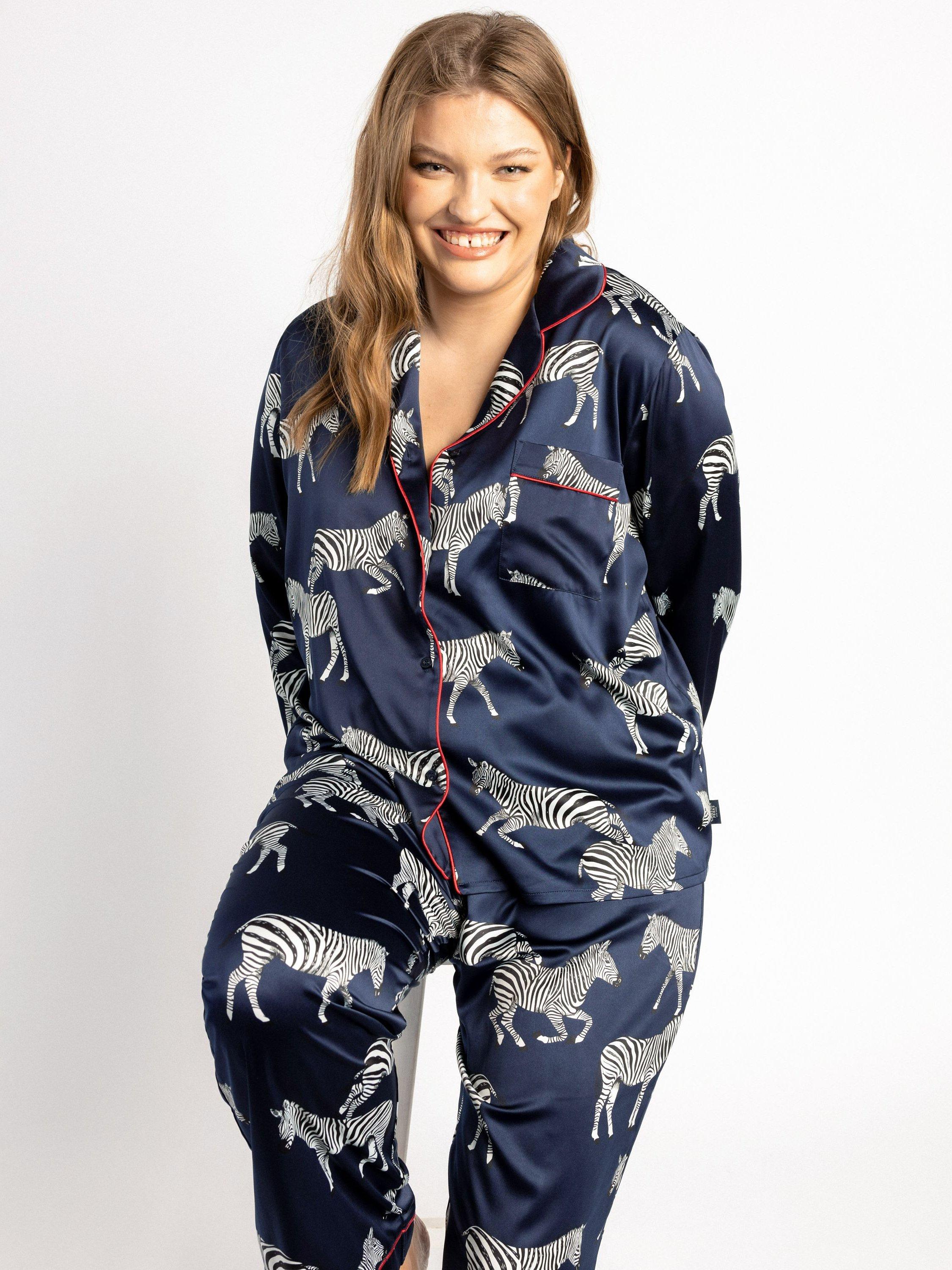 Add a touch of luxury to your naps with this Zebra Satin Button Up Pyjama Set. The button up fit, with long bottoms and an elasticated waist, is designed specifically to get the most out of your lounging.