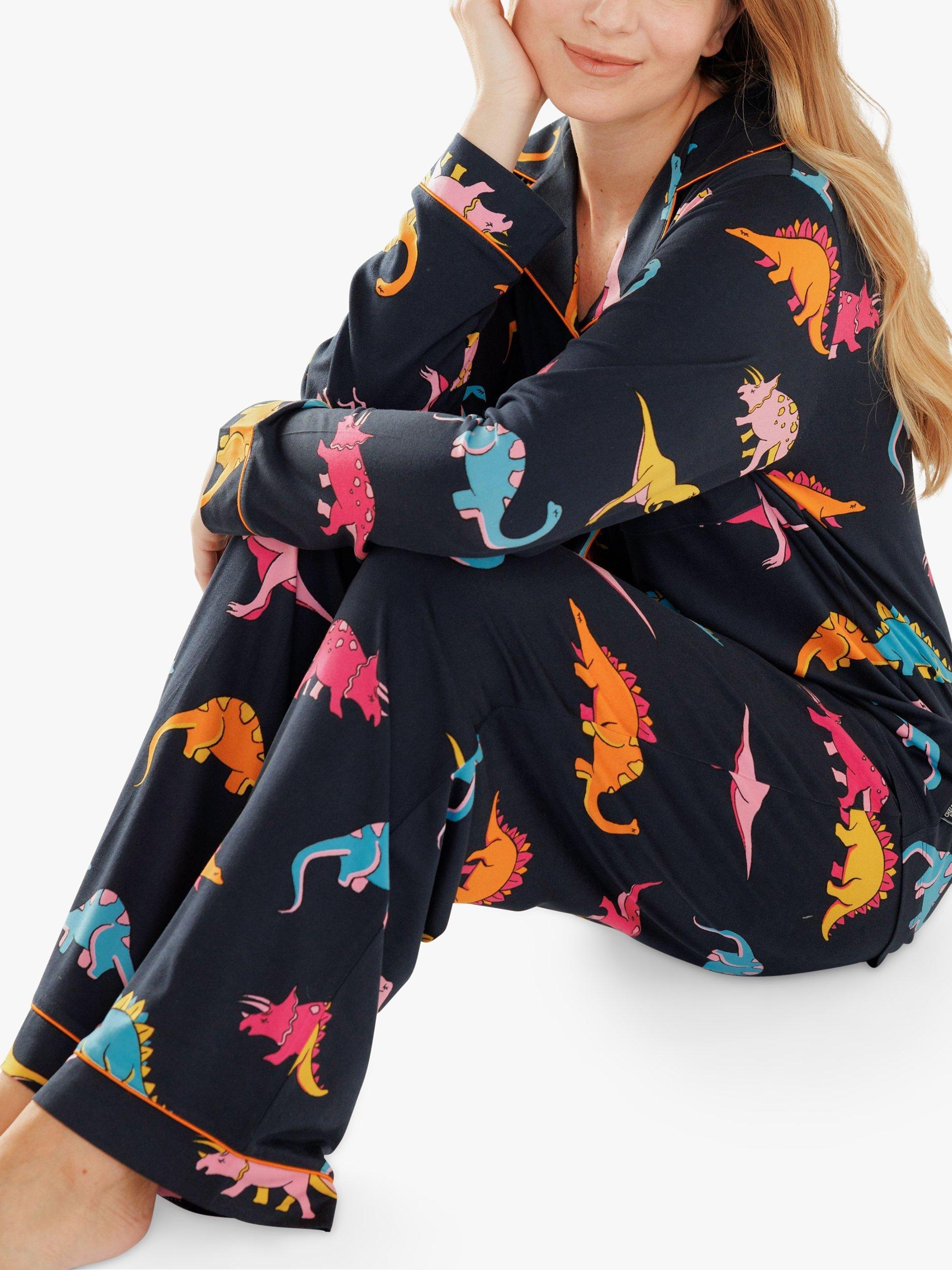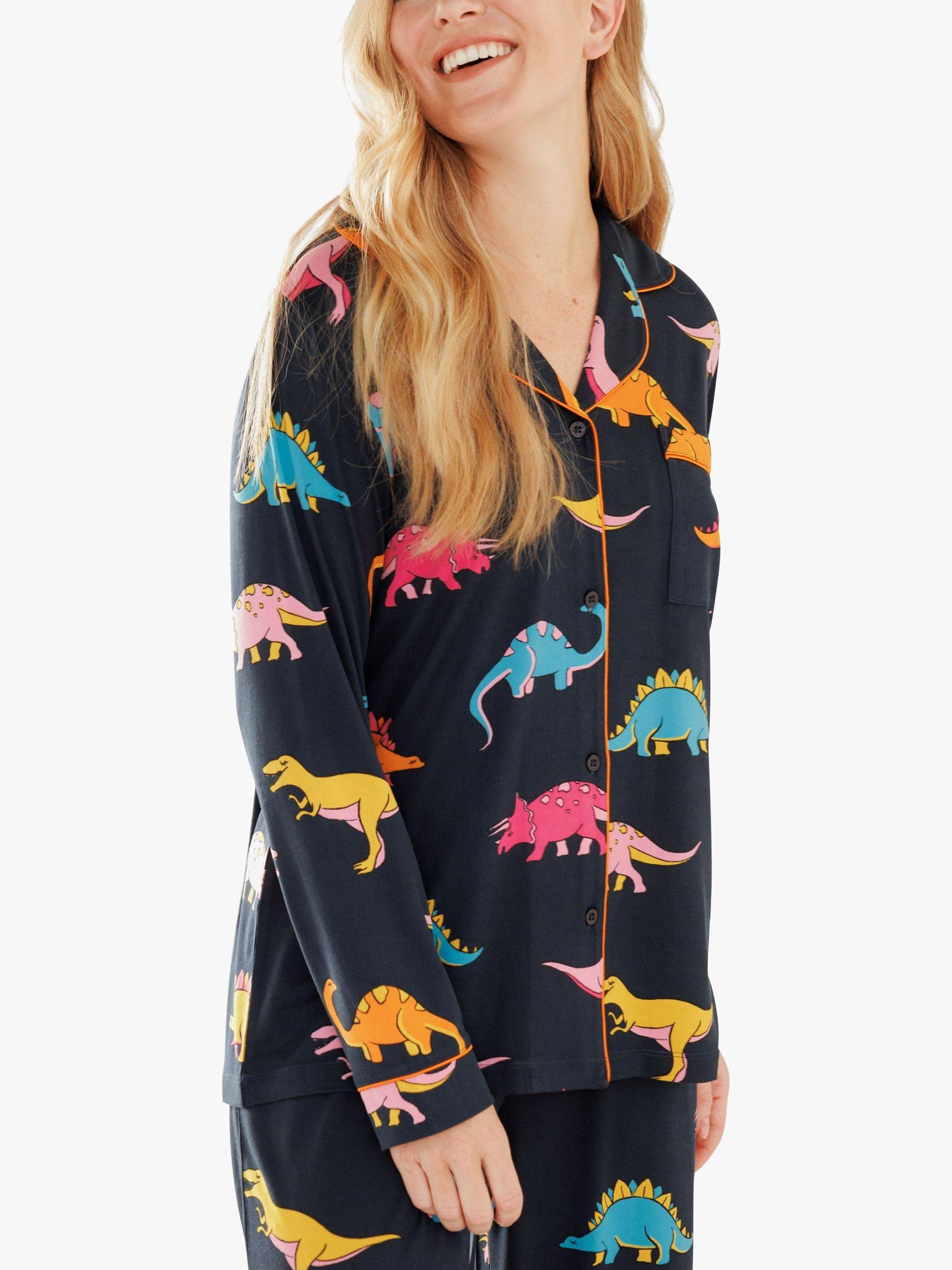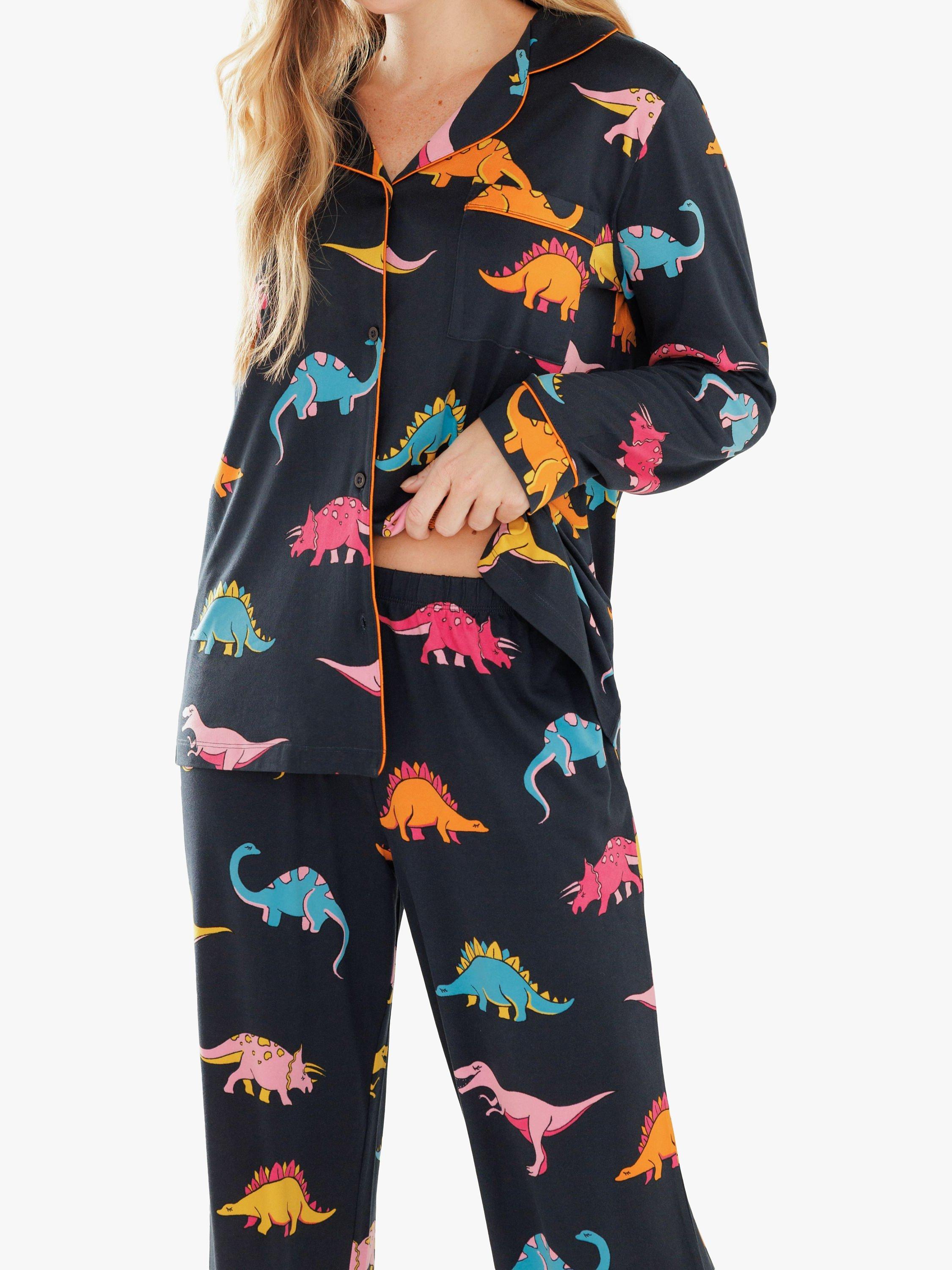 Featuring a colourful dinosaur print, this long-sleeve pyjama set from Chelsea Peers ensures optimum comfort with its super soft fabric blend.