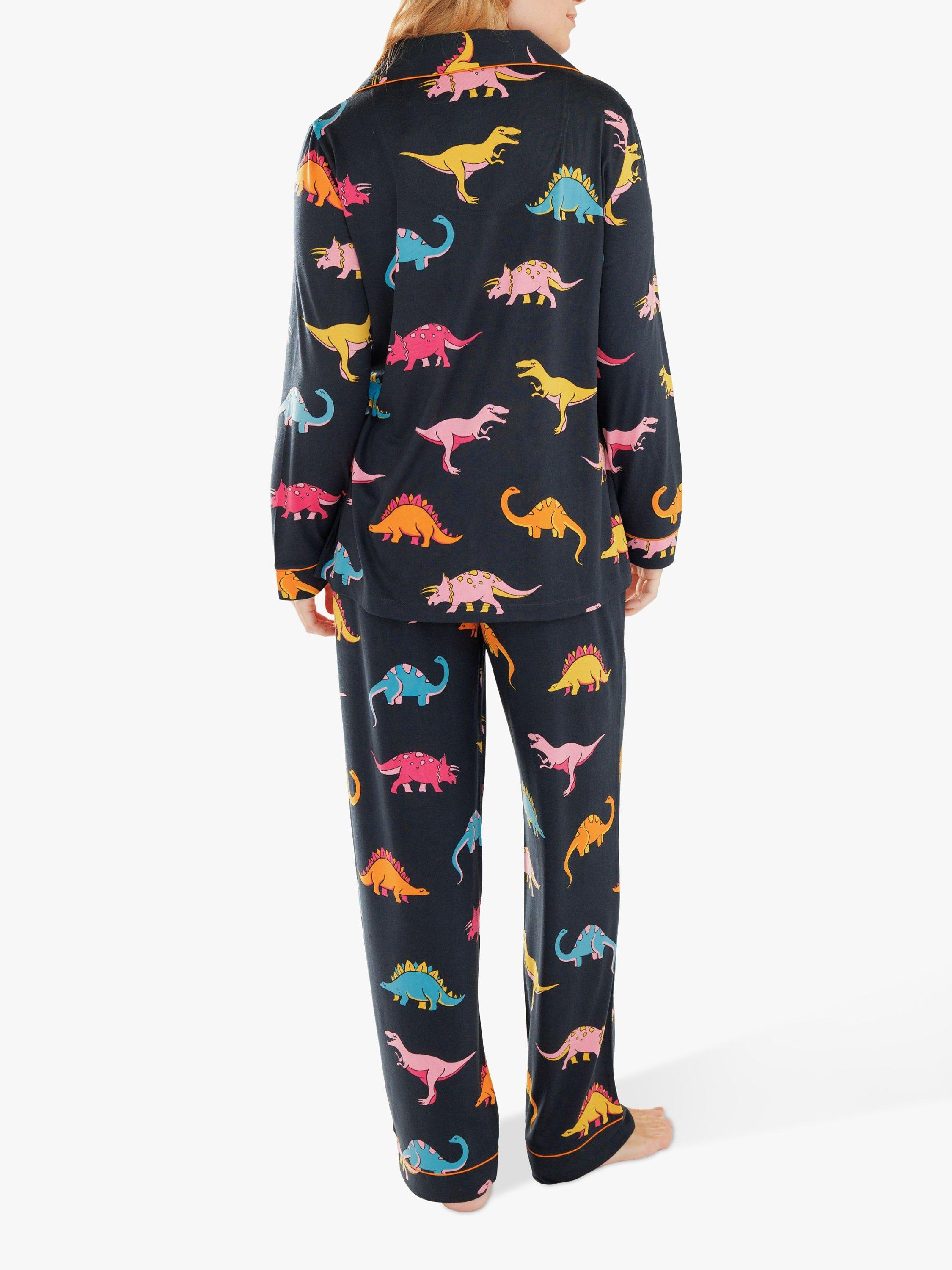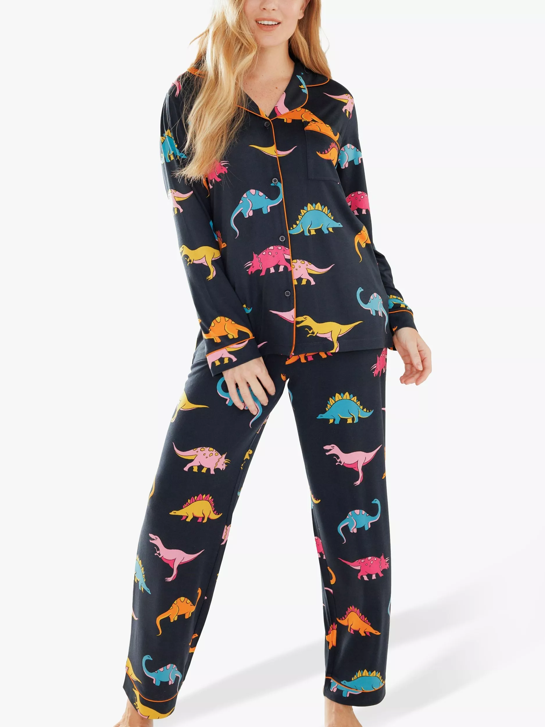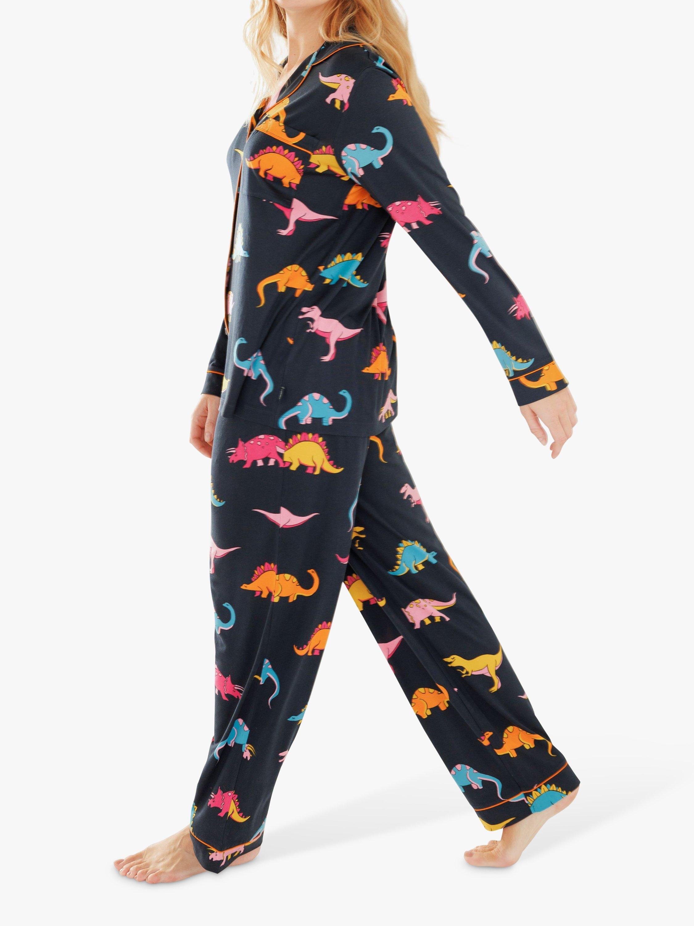 Featuring a colourful dinosaur print, this long-sleeve pyjama set from Chelsea Peers ensures optimum comfort with its super soft fabric blend.