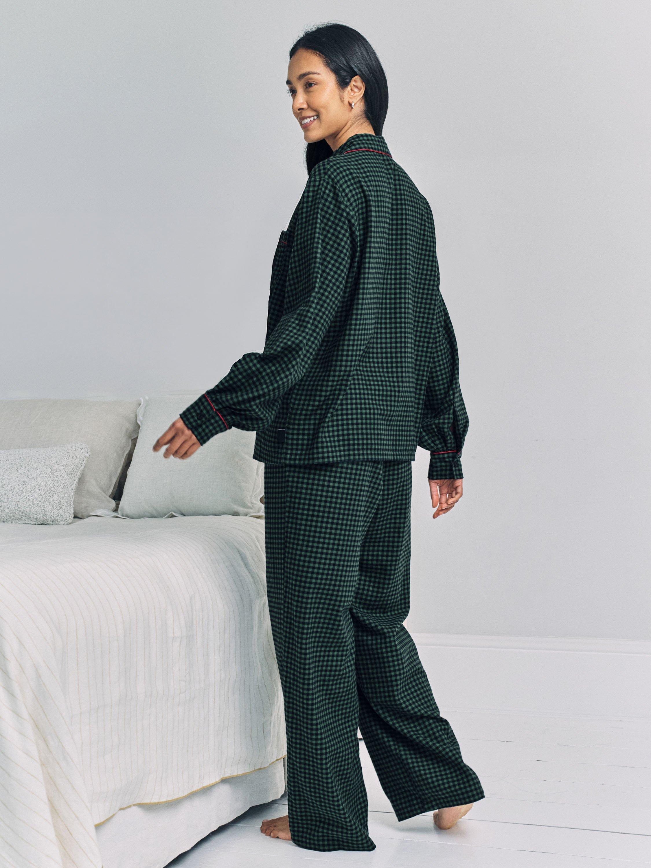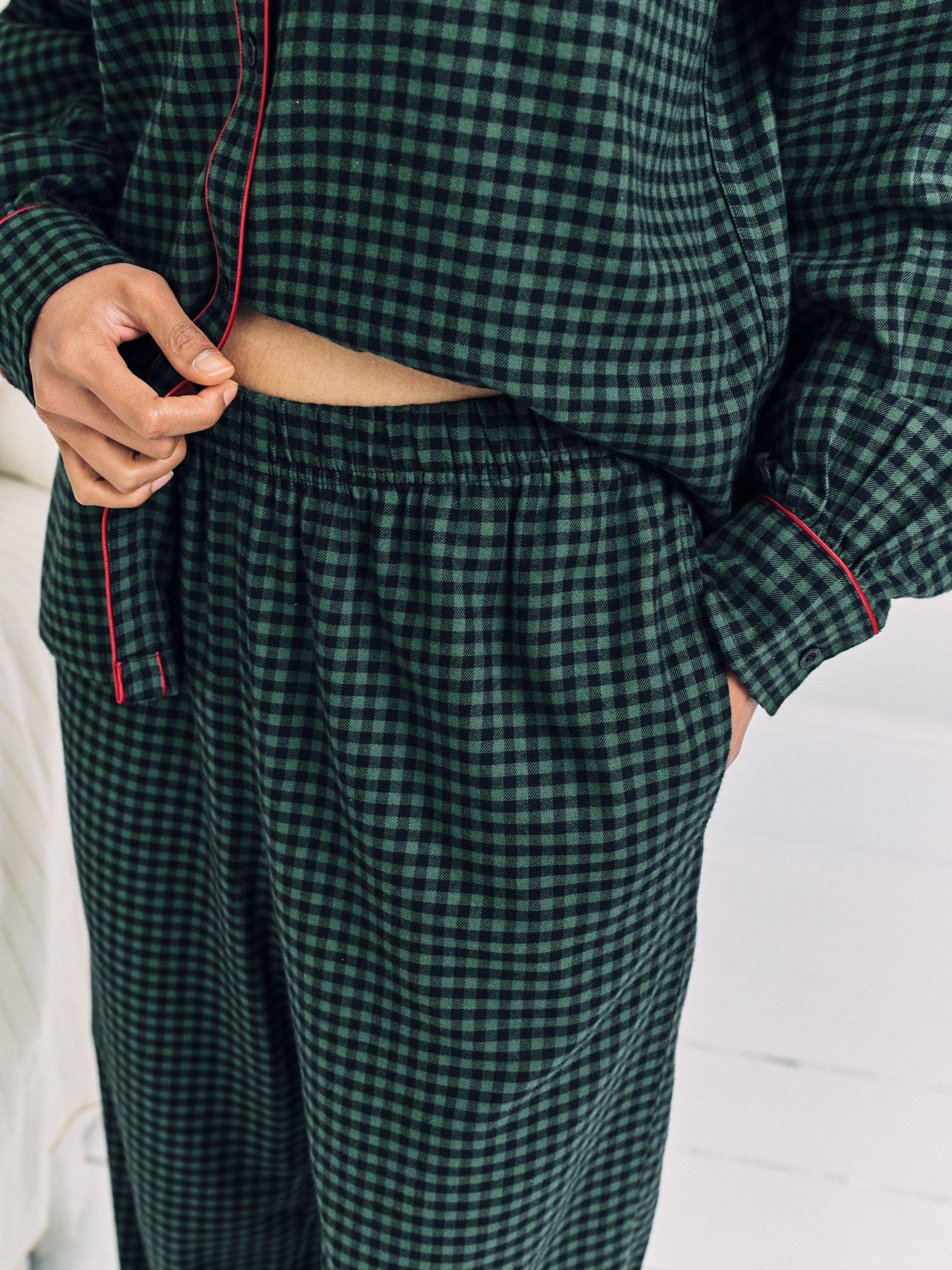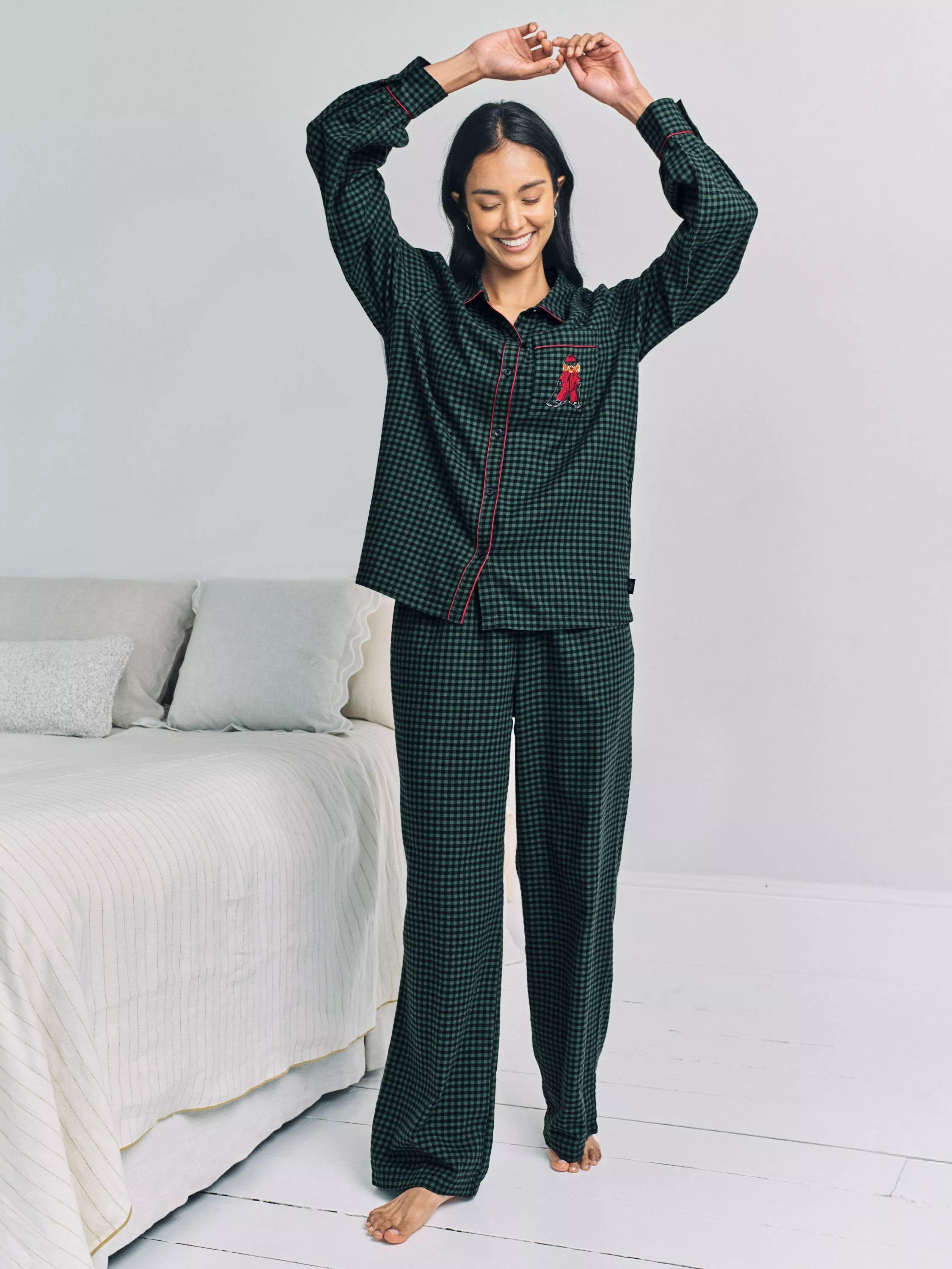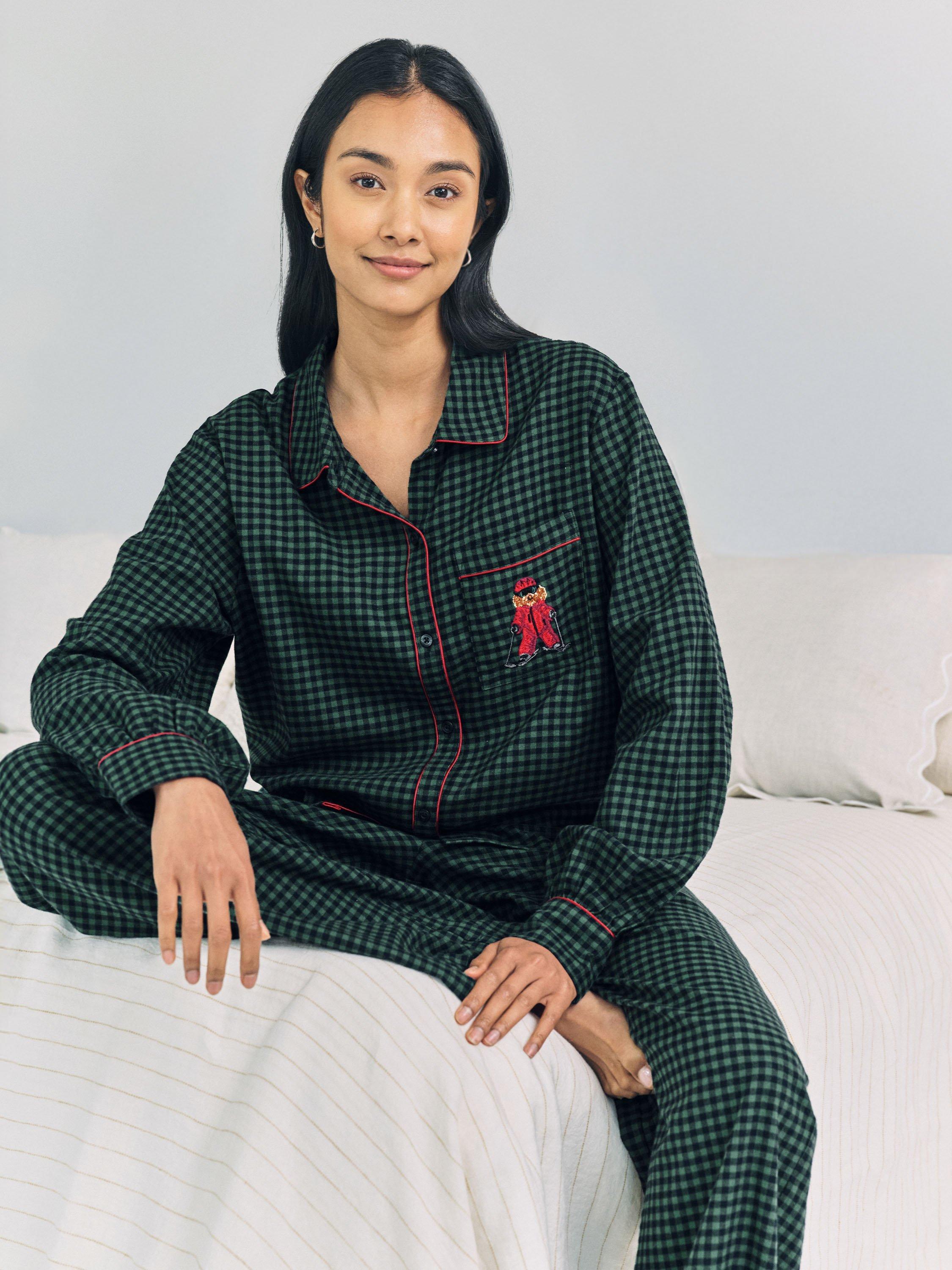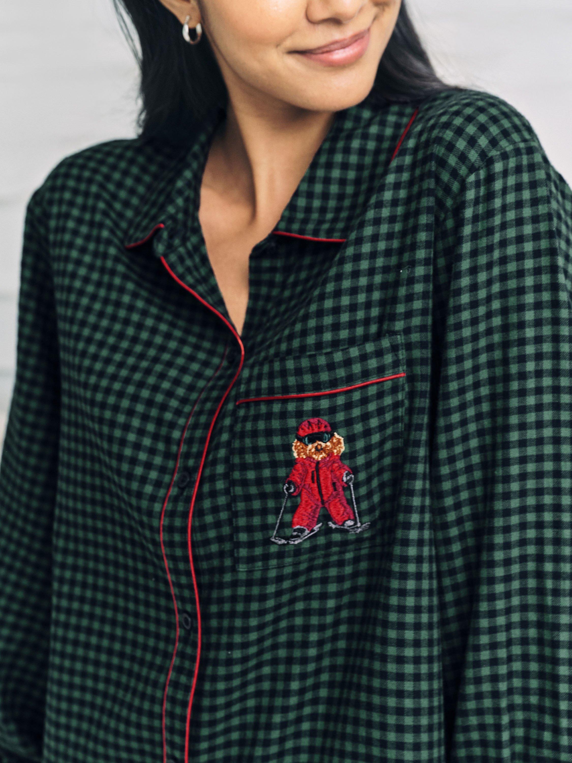 Festive checks with a playful twist, Chelsea Peers' signature cockapoo dog, Chip, swaps the fireplace for the slopes in this embroidered detail pyjama set. Crafted from 100% cotton, the design pairs a revere collar, button-up shirt with relaxed bottoms,in gingham check, trimmed in festive piping. Soft, breathable and finished with side pockets for practicality, it’s a timeless take on festive pyjamas, perfect for Christmas Eve lounging or ski-season daydreaming.