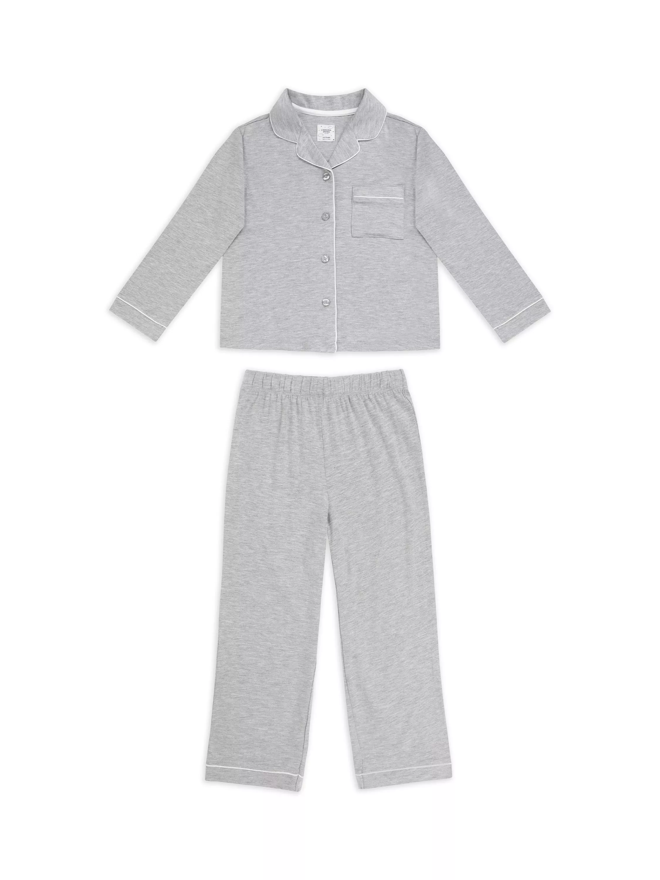 Chelsea PeersKids' Long Sleeved Piped Pyjama Set, Grey