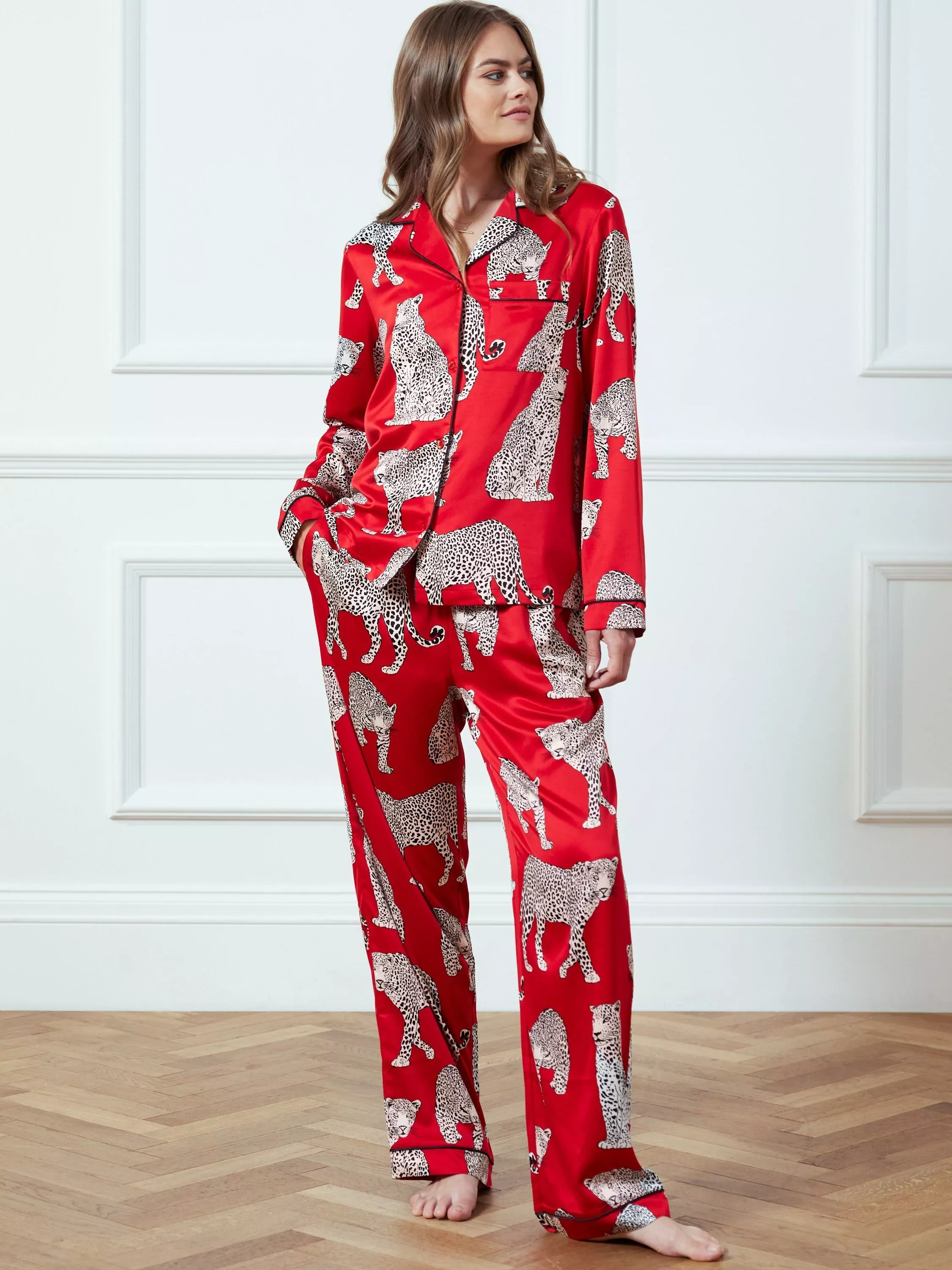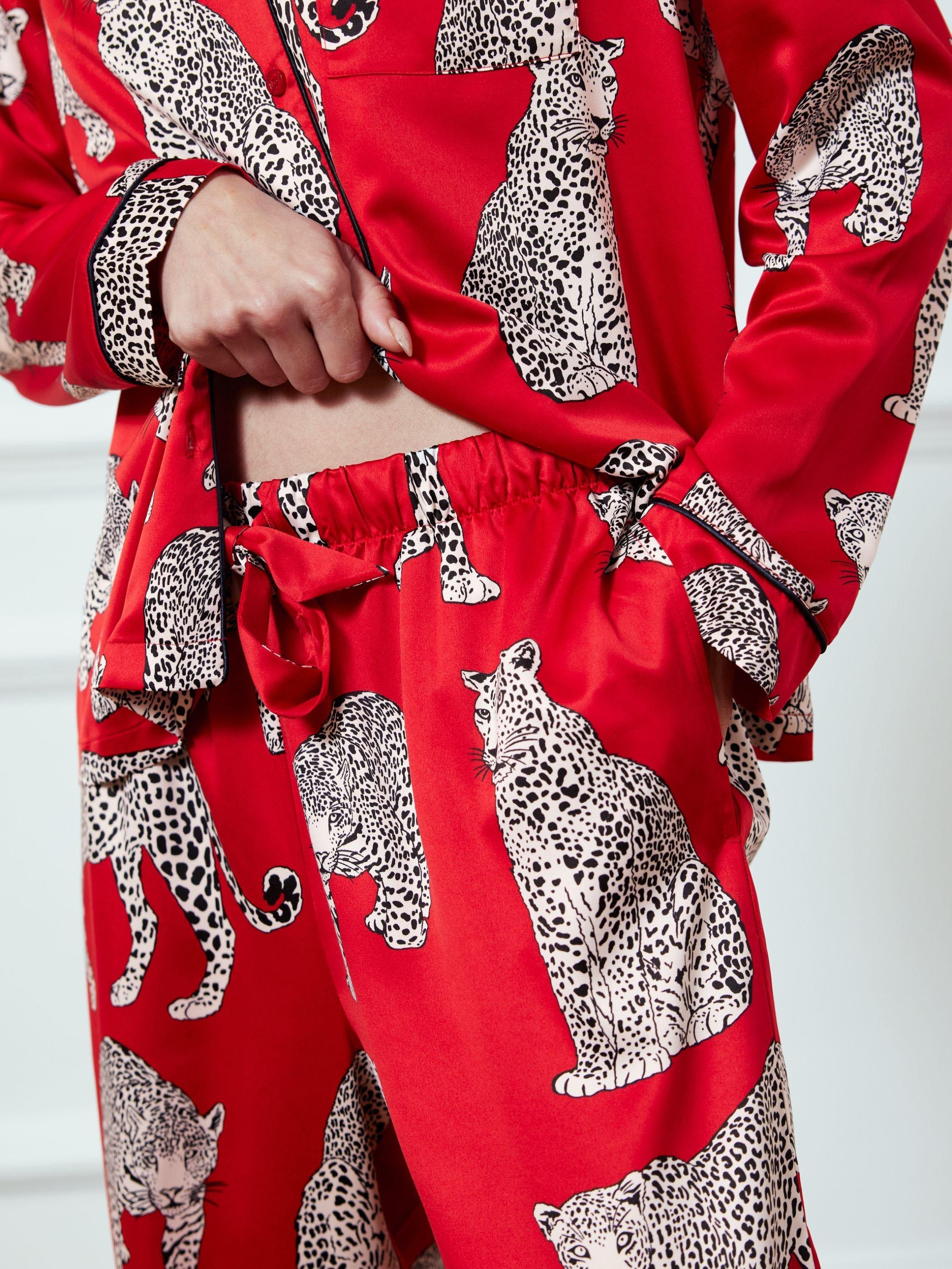 These pyjamas from Chelsea Peers are made from soft satin and are covered in leopards for an exotic flair.