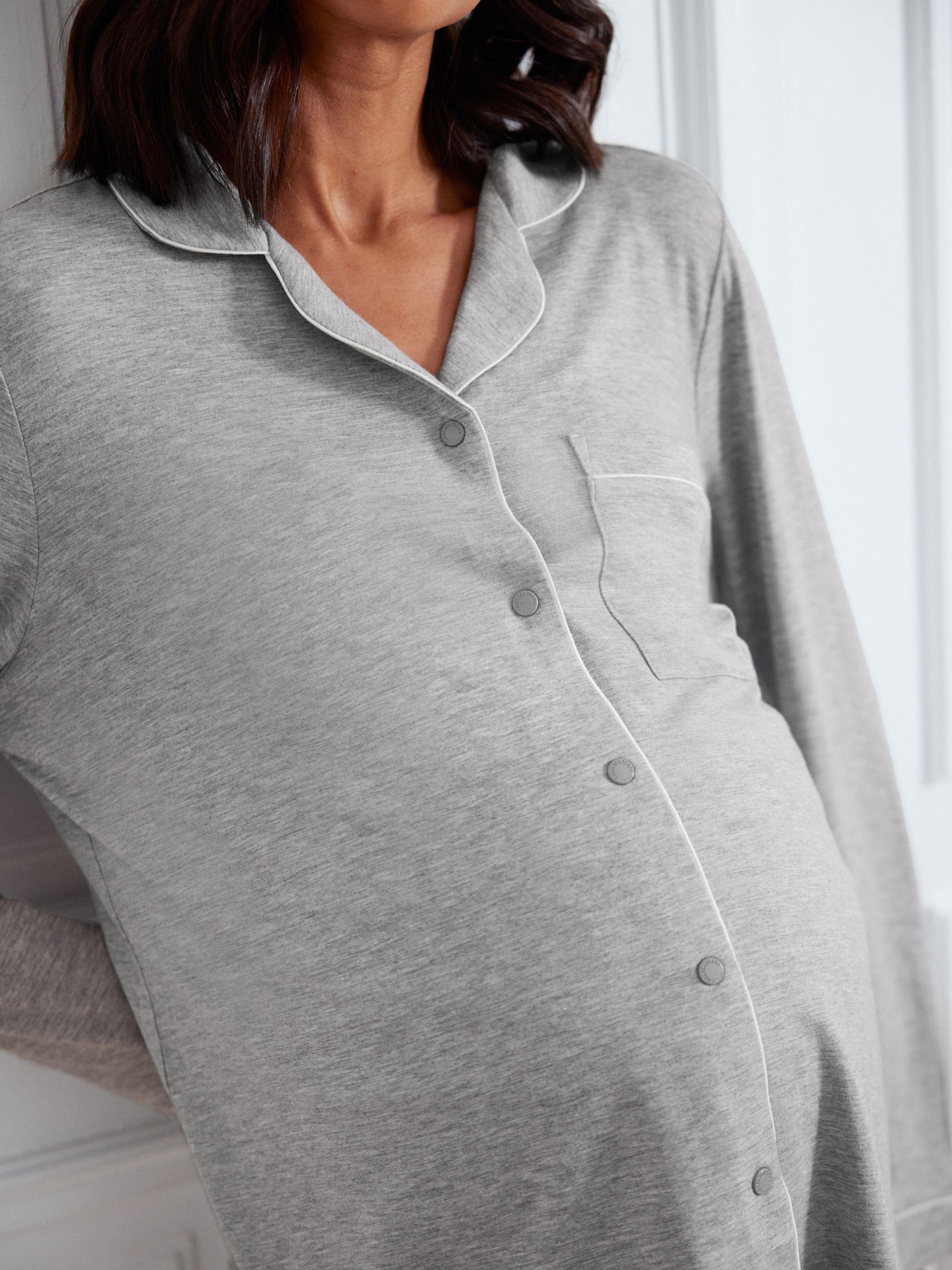 Designed for superior comfort with a full coverage over-bump band to ensure a perfect fit through every week of your pregnancy, these maternity pyjamas are made from TENCEL Modal - a biodegradable fabric that's loved for it's cooling, soft and silky feel. Moisture-wicking, with a touch of stretch for a comfortable sleep, durable fibres and a natural fade resistance ensure you'll love these pjs long after baby's arrival, with popper front shirt fastenings allow for easy access for breastfeeding.