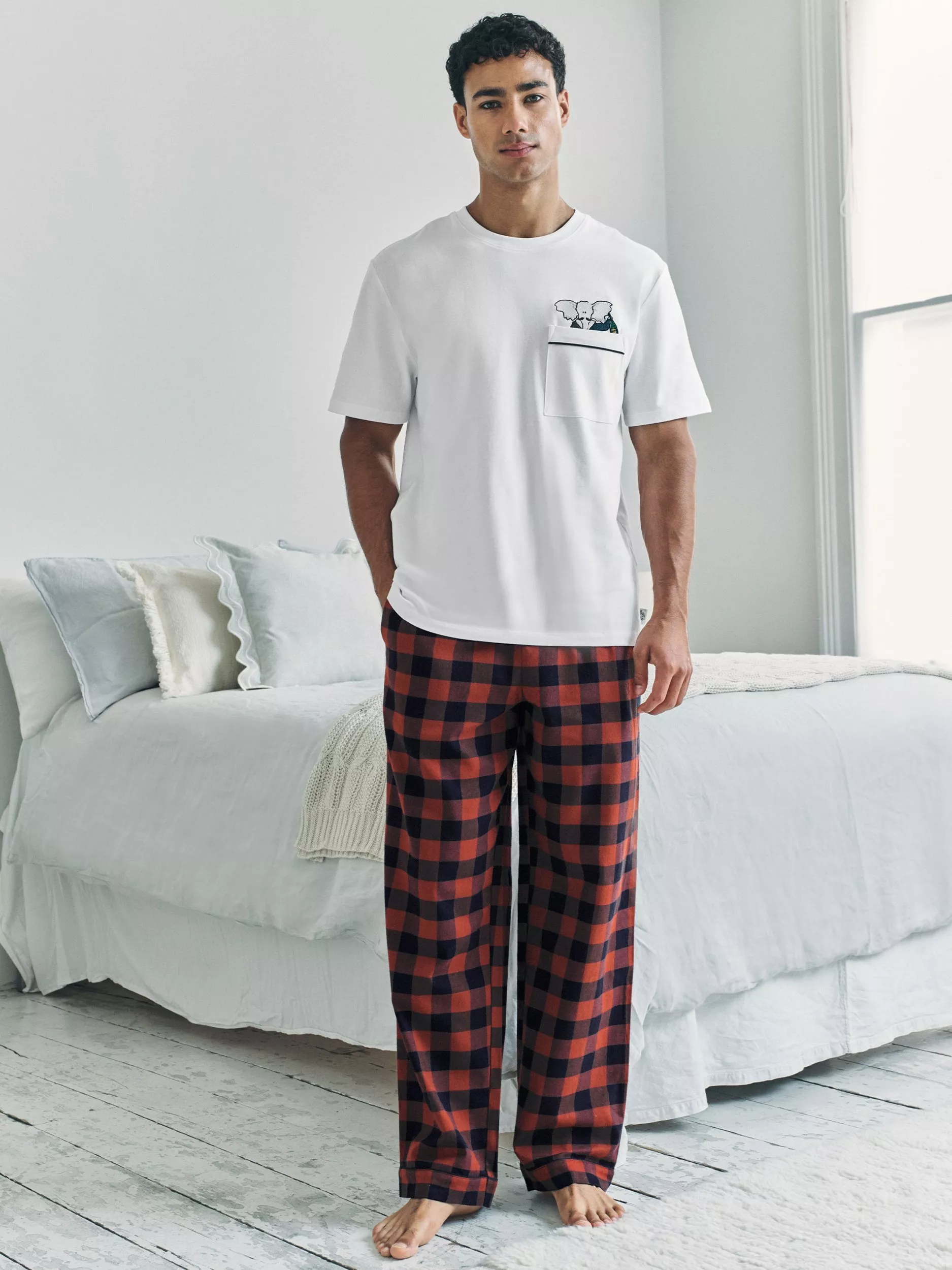 A classic crew-neck T-shirt and check bottoms come together to create this comfortable pyjama set from Chelsea Peers.