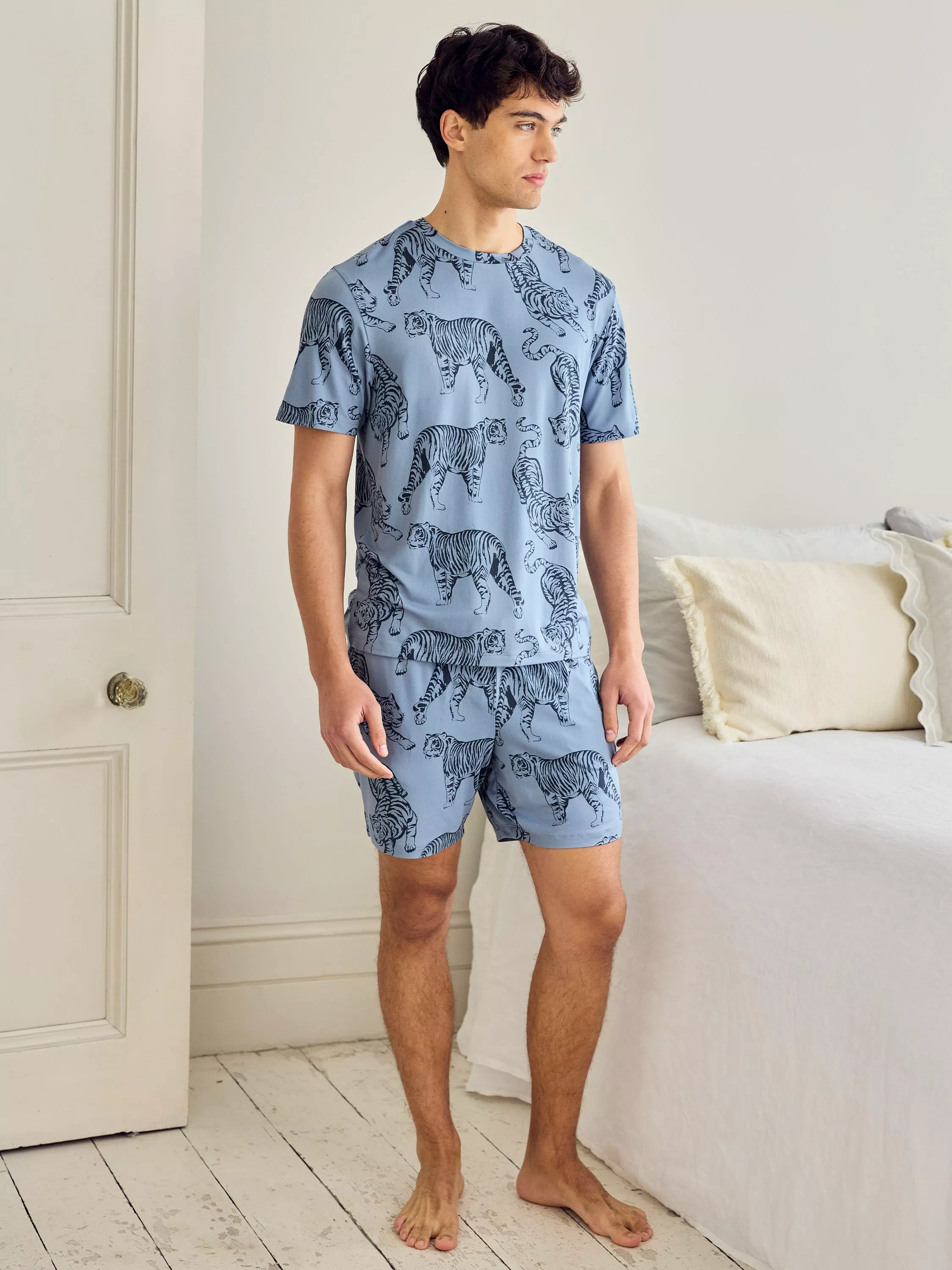 Unleash your wild side, softly. This short pyjama set is crafted from our super-soft jersey and printed with a tonal tiger design. The relaxed crew neck tee pairs with easy drawstring shorts, making it the perfect throw-on for warmer nights or laid-back lounging. Bold, breathable and seriously comfortable, it's an instant nightwear favourite.