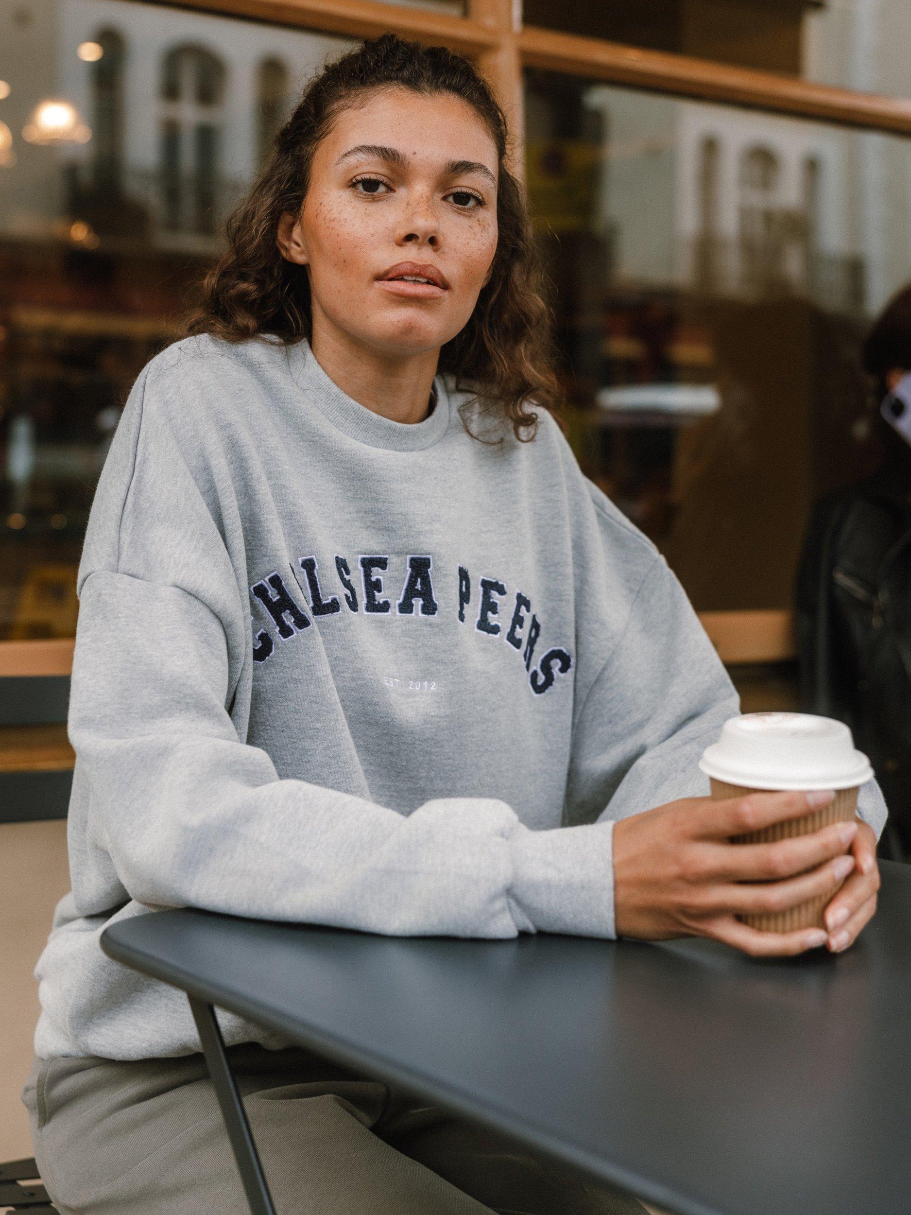 Made from 400gsm certified organic cotton, this oversized sweatshirt is an everyday luxury, finished with Chelsea Peers logo branding in embroidered varsity lettering.