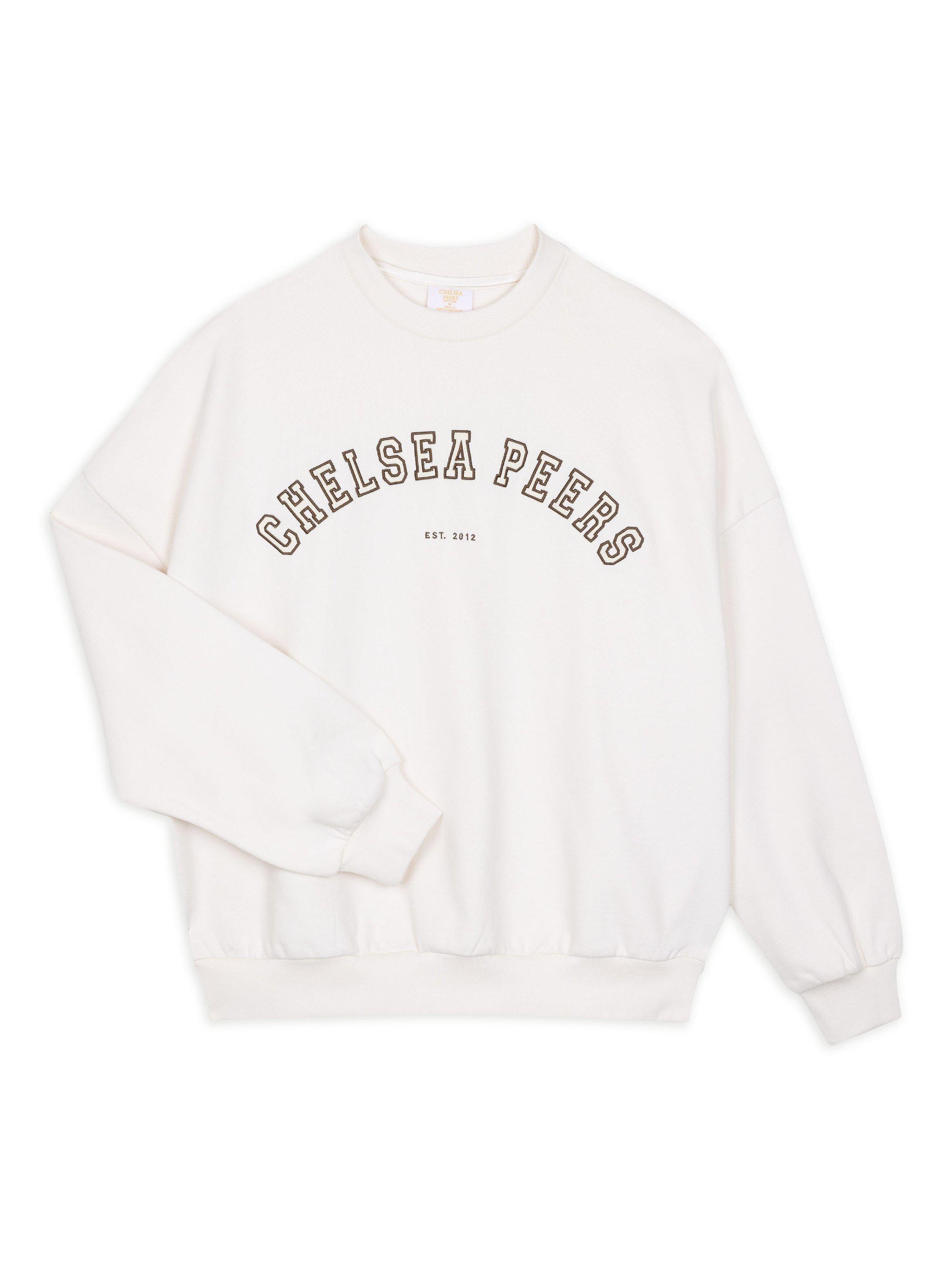 Made from 400gsm certified organic cotton, this oversized sweatshirt is an everyday luxury, finished with Chelsea Peers logo branding in embroidered varsity lettering.
