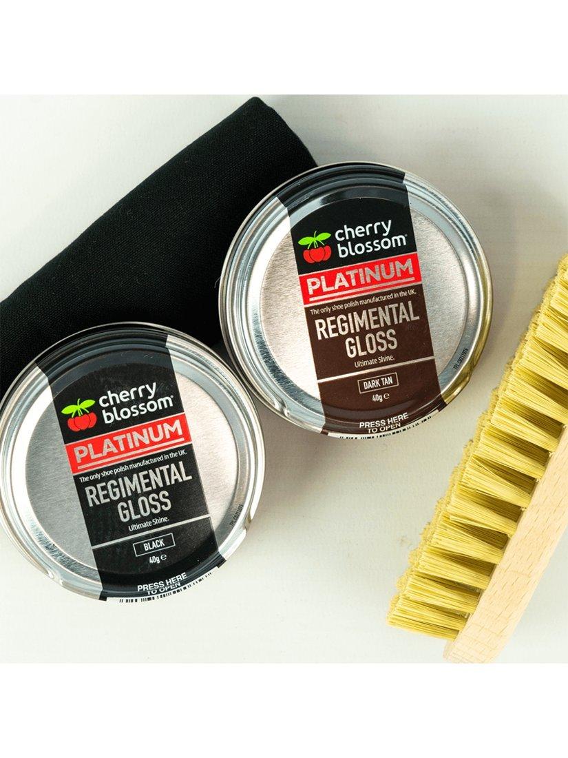 Revive the appearance and performance of your leather footwear with this all-in-one kit. This kit contains Regimental Gloss in both Black and Dark Tan. These two high-shine polishes are formulated for all black and dark tan smooth leather footwear. Containing Carnauba Wax to provide an exceptional high-gloss shine, these polishes offer essential nourishment.Product specification