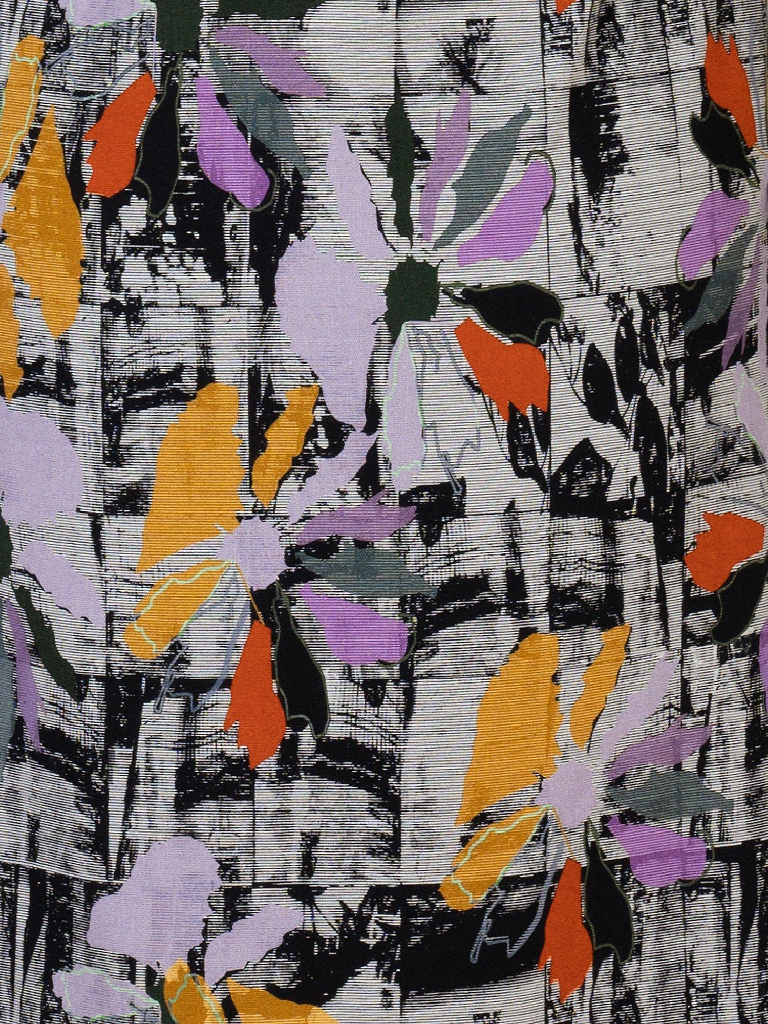 Designed with a relaxed, open border neckline and artsy abstract florals, it is fashioned from long-lasting fabric that will see away the cold.
