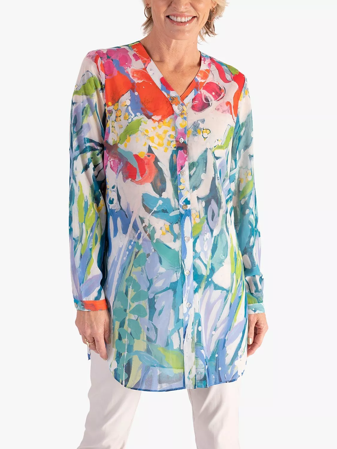 chescaAbstract Spring Flowers Print Chiffon Shirt, Blue/Multi