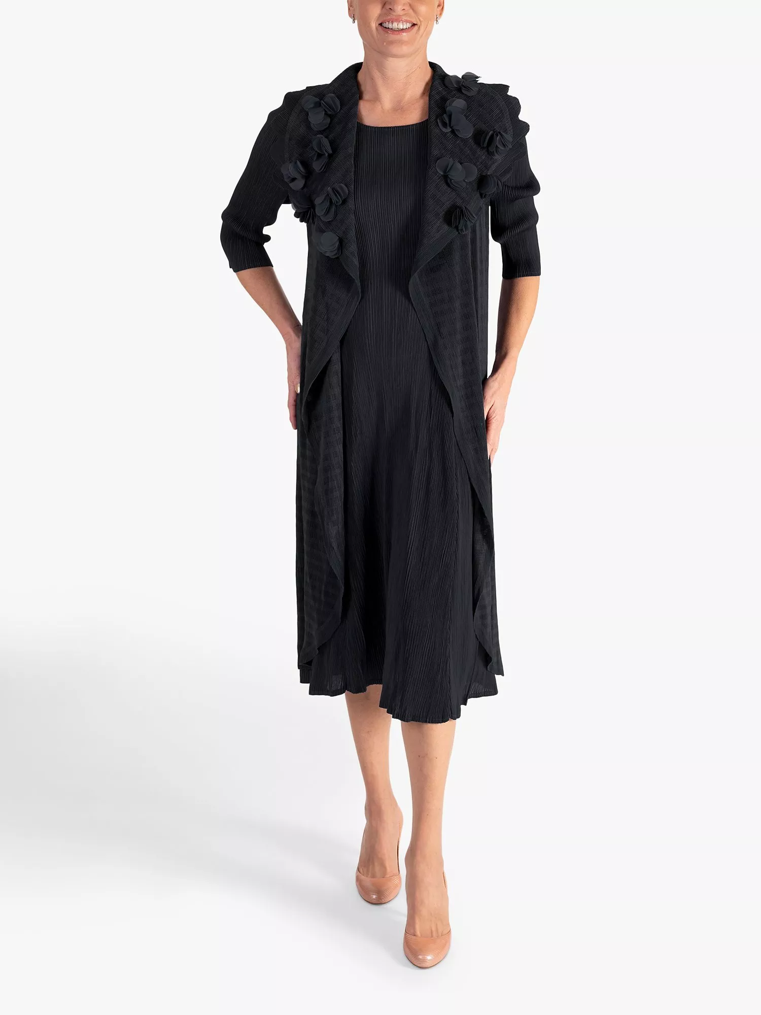 Noting a playful pleated design, this knee length dress from chesca is made from a lightweight fabric. Keeping things simple with a round neckline and three quarter length sleeves, it is kept trend-free so that it'll sit in your closet for years to come.