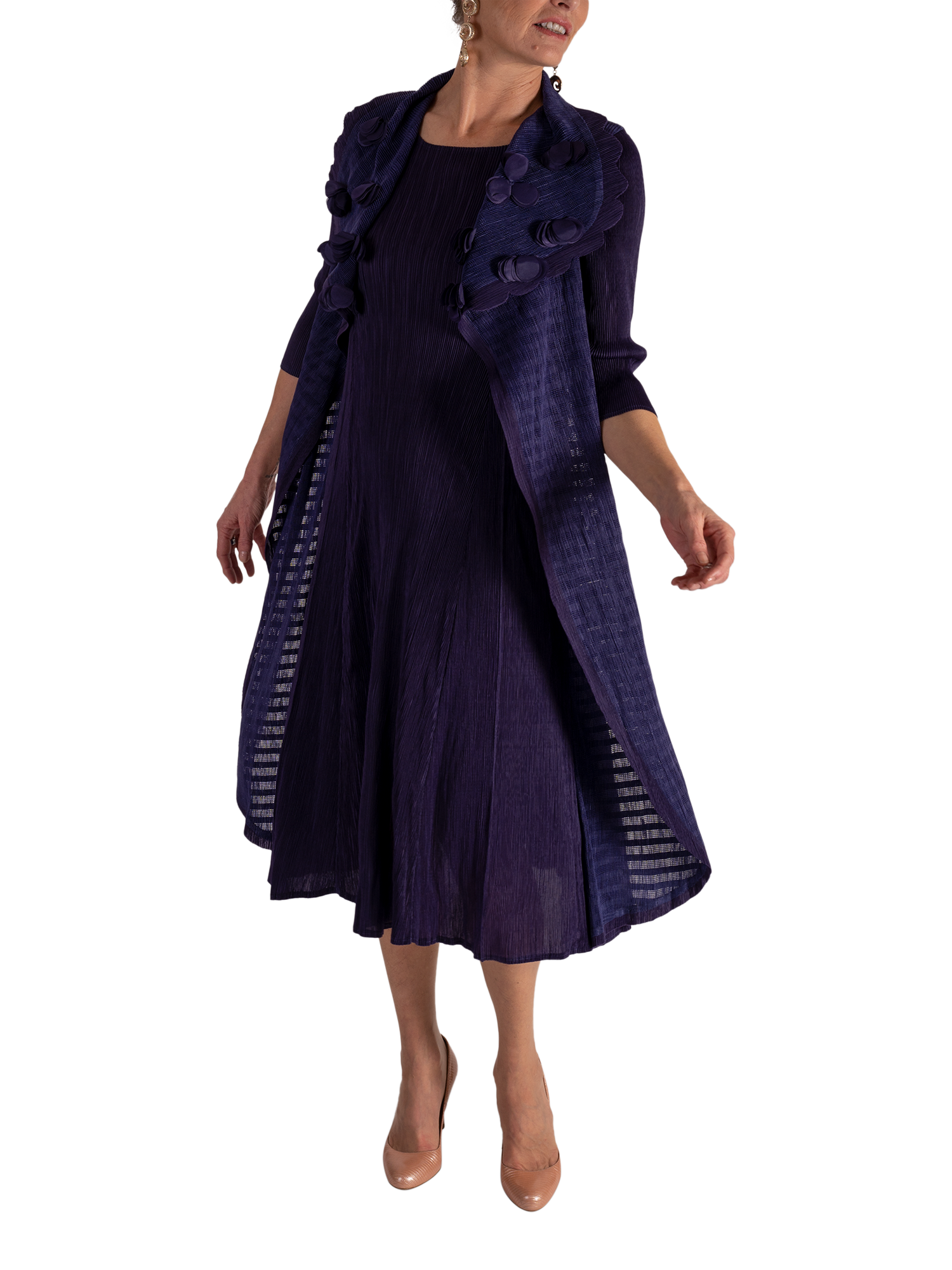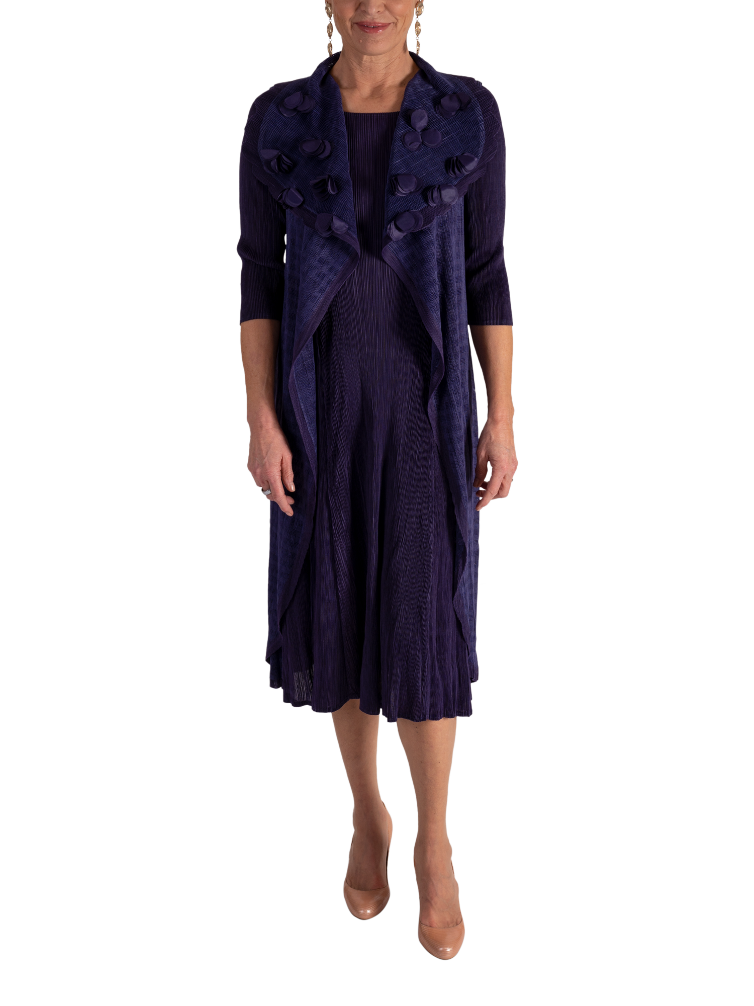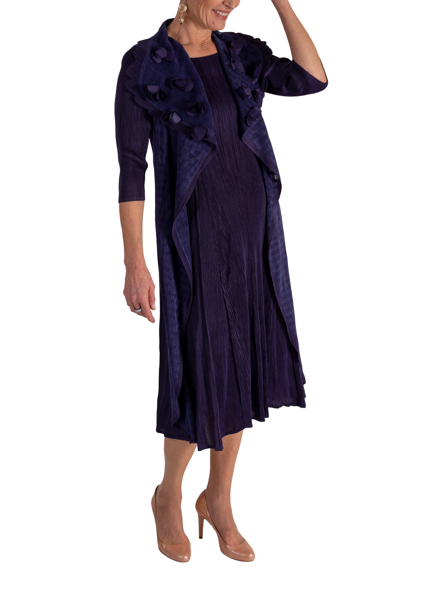 chescaApplique Chiffon Pleated Dress, Grape