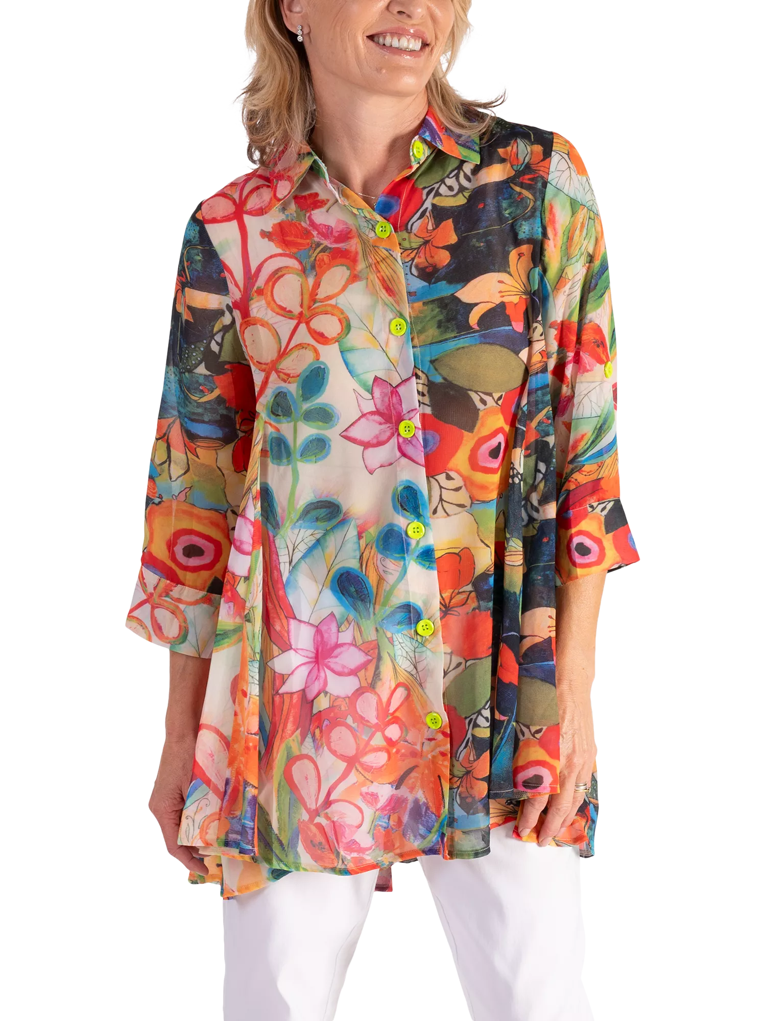 Making an impression on your morning commutes, this swing style blouse will instantly lift your mood with its artistic bloom-filled floral print in a host of vibrant summertime colours. Designed with a crisp collar neckline, three-quarter tab detail sleeves and high-low curved hemline, it is made from a light yet durable chiffon fabric and is ideal for relaxed daytime wear.