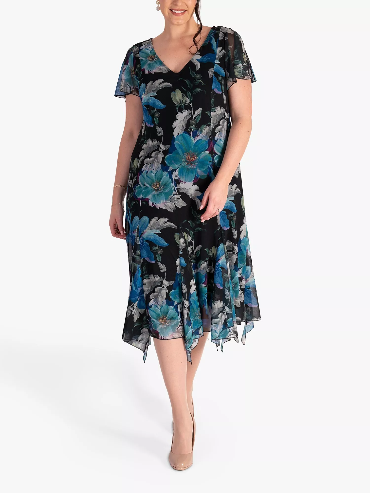 Flaring out at the hem for a feminine silhouette, this midi dress from chesca is made using a blend of fabrics. With a universally flattering v-neckline and short sleeves, it effortlessly charms with a timeless floral.