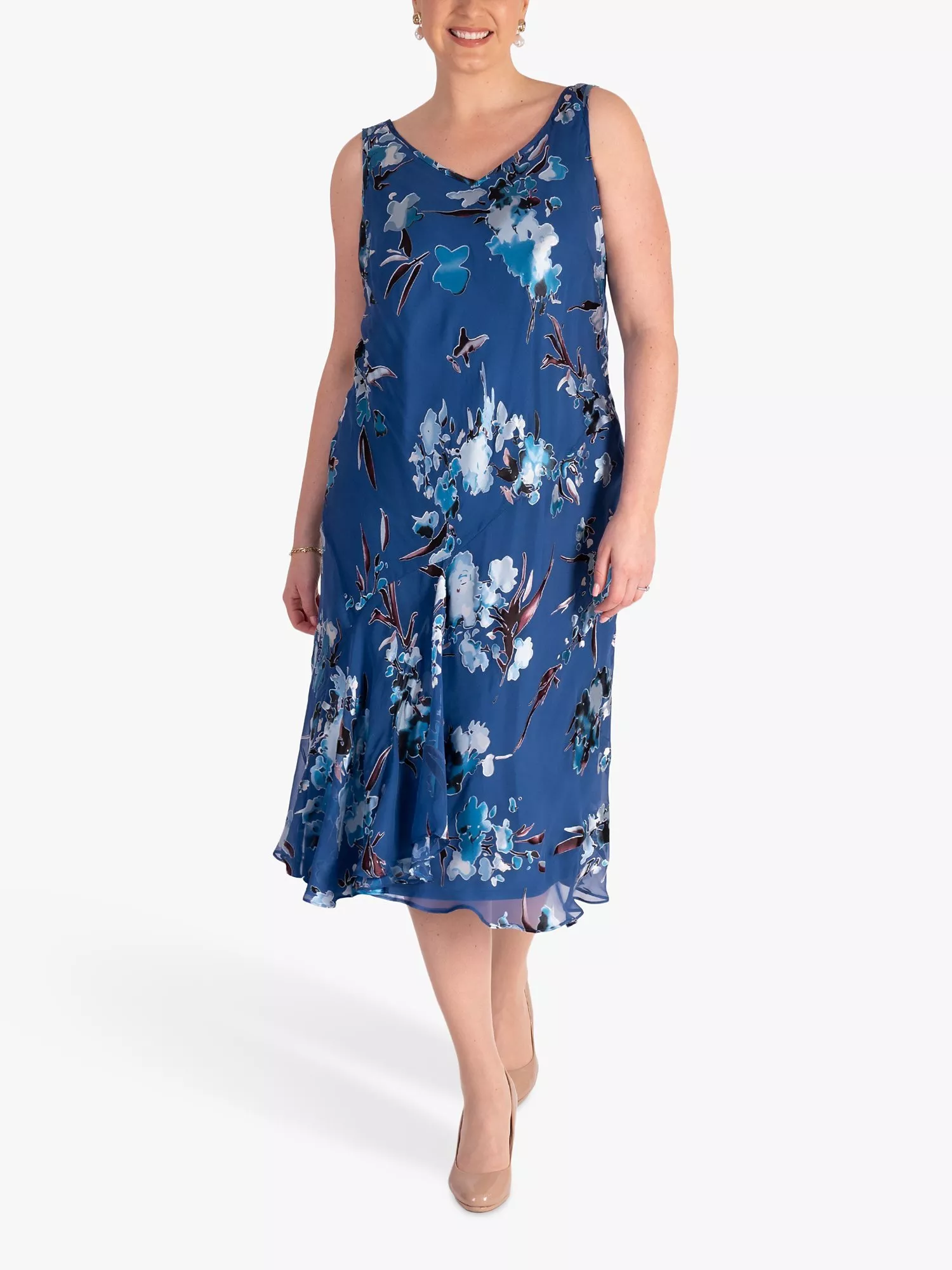 Constructed with a nipped in waist and flared hem, this knee length dress from chesca is whisked up with a hint of silk. Effortlessly flattering thanks to a fuss-free v-neckline, this sleeveless style is planted with a feline print.
