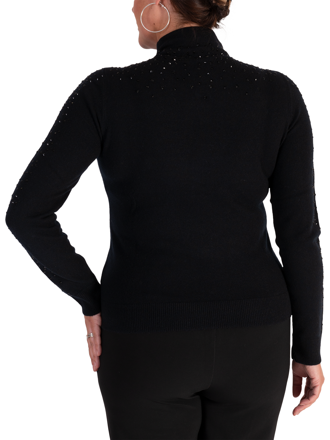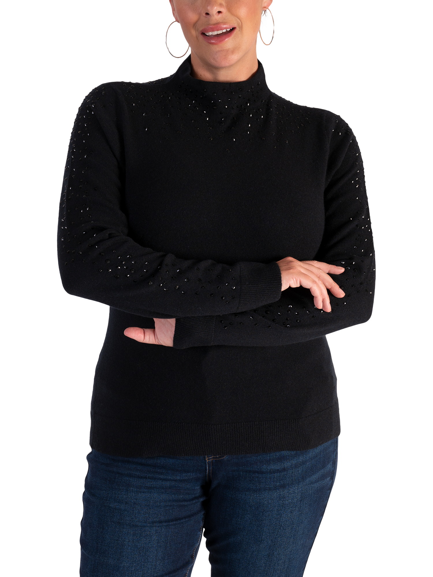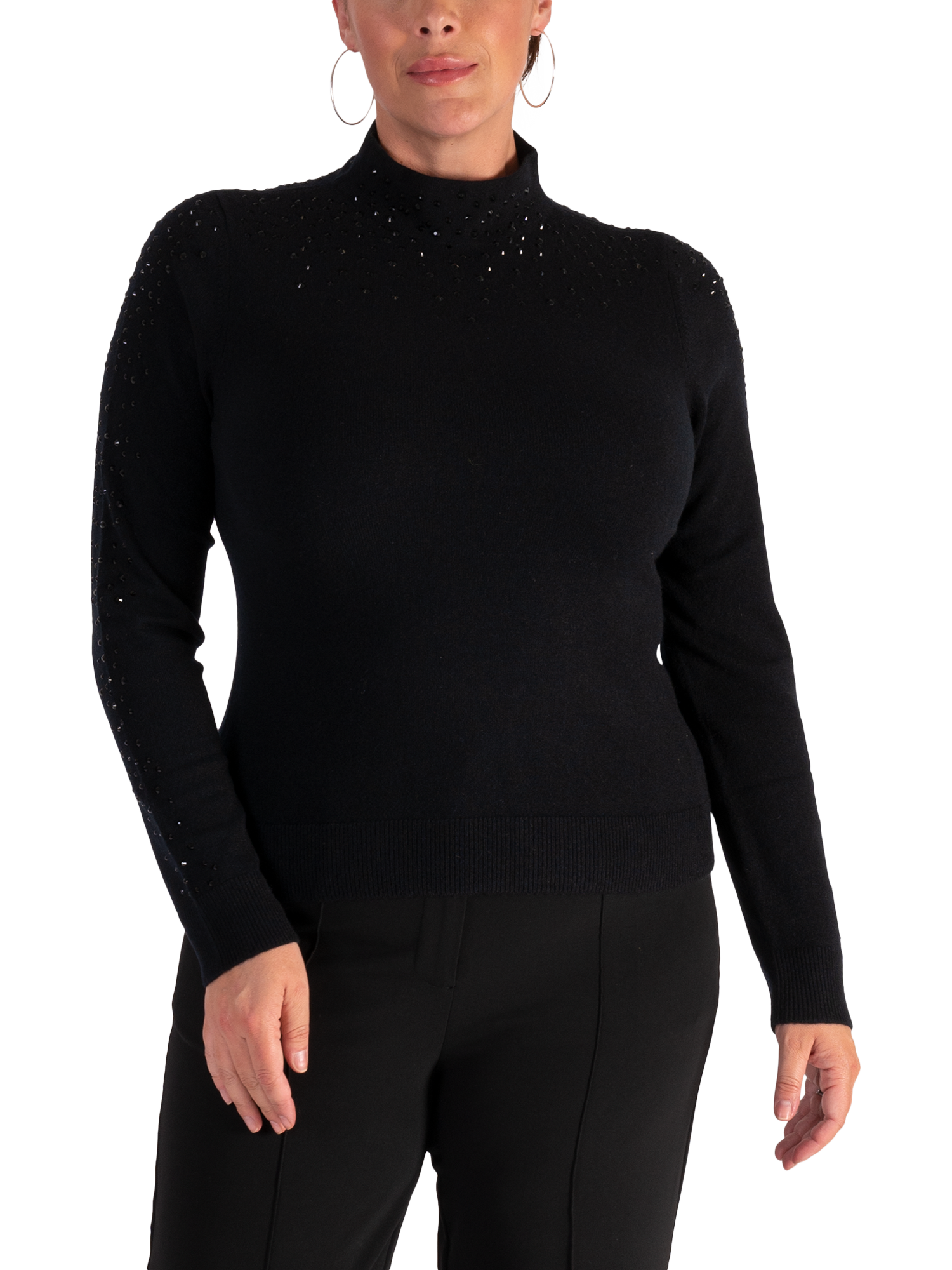 The crystal embellishment adorning the neckline and sleeves elevates this fine knit cashmere jumper into a class of its own. Crafted from 100% cashmere for the ultimate in luxury, it features a funnel neckline and long sleeves. Wear yours with slimline trousers and heels for a sophisticated edge. Jumper length 64cm from shoulder neck point to hem.
