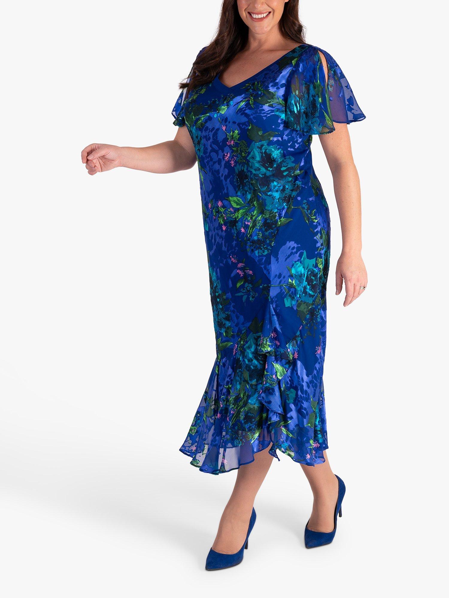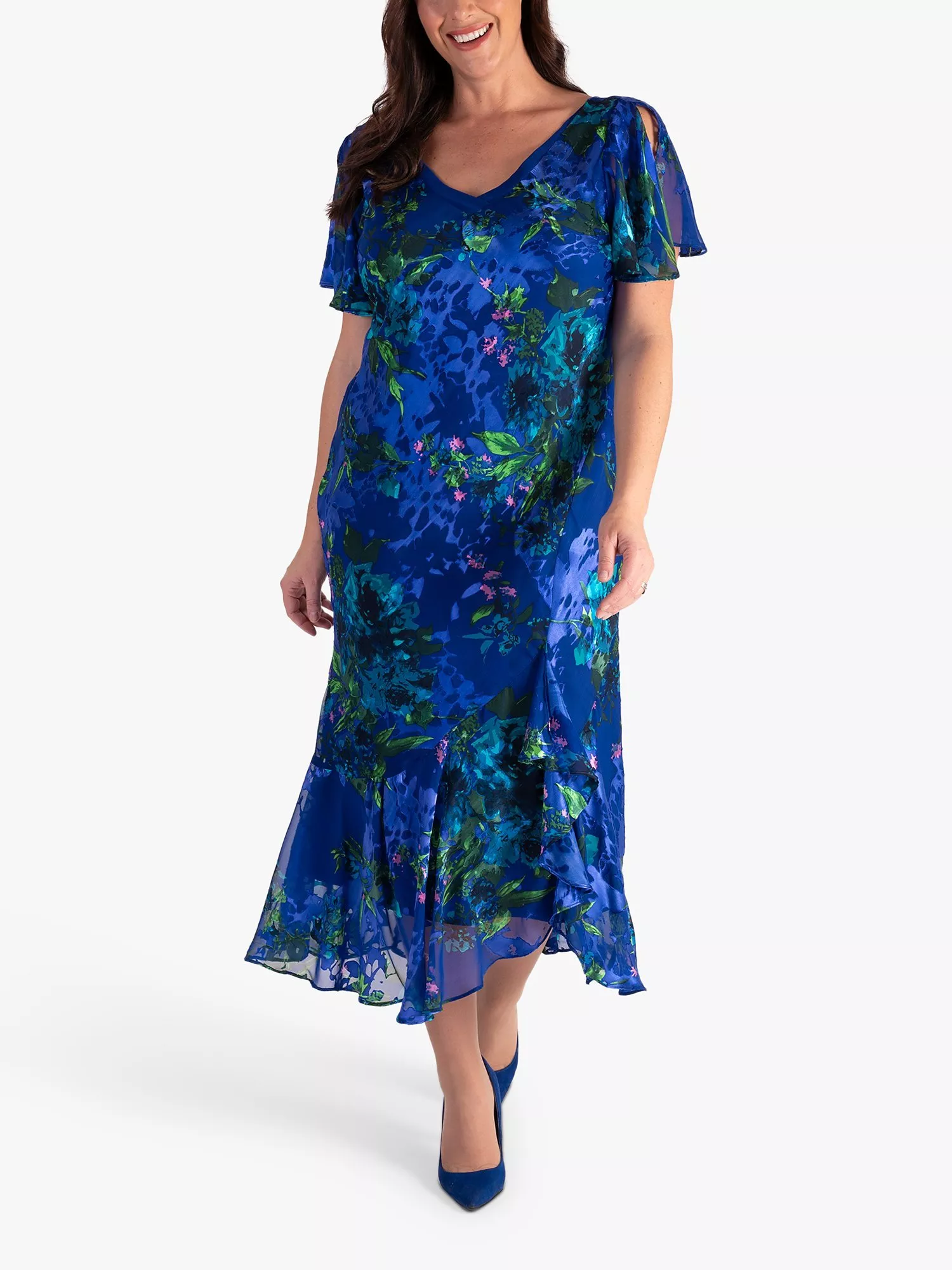 Flaring to an elongating fishtail hem, this mid-length dress from chesca is light and luxurious with its silk blended base. Effortlessly flattering thanks to a fuss-free v-neckline and short sleeves, this style proves that florals aren't just for spring.