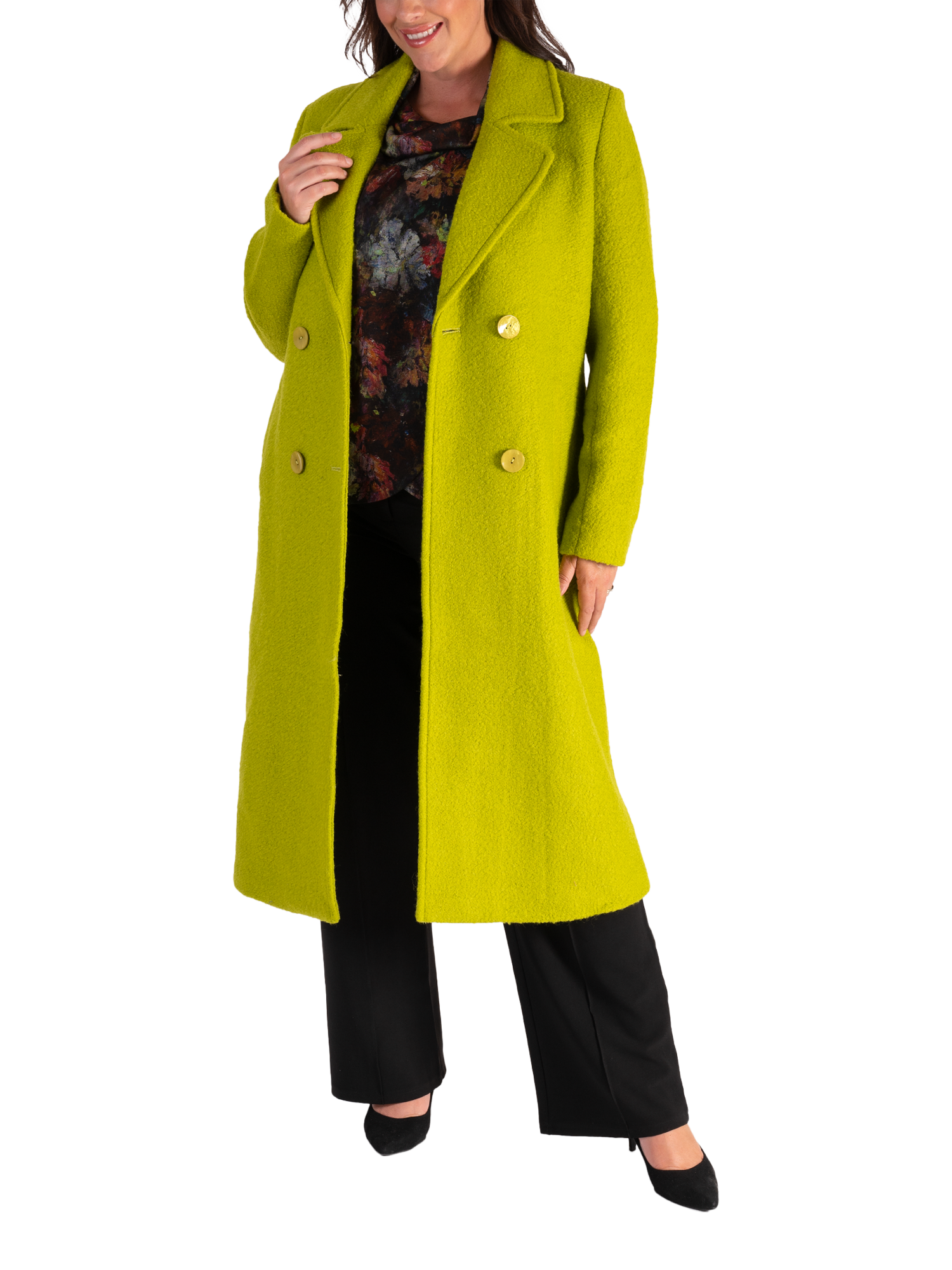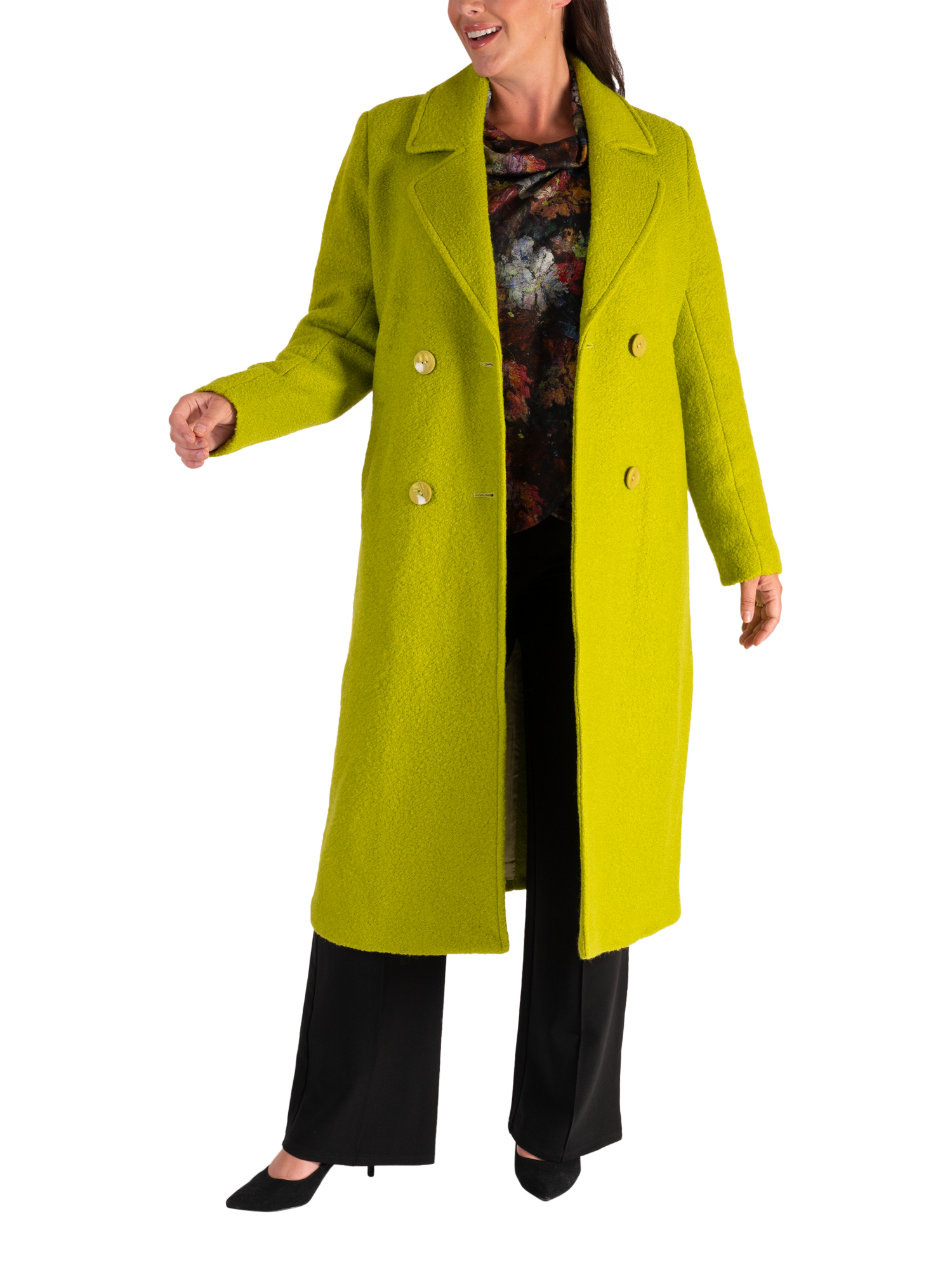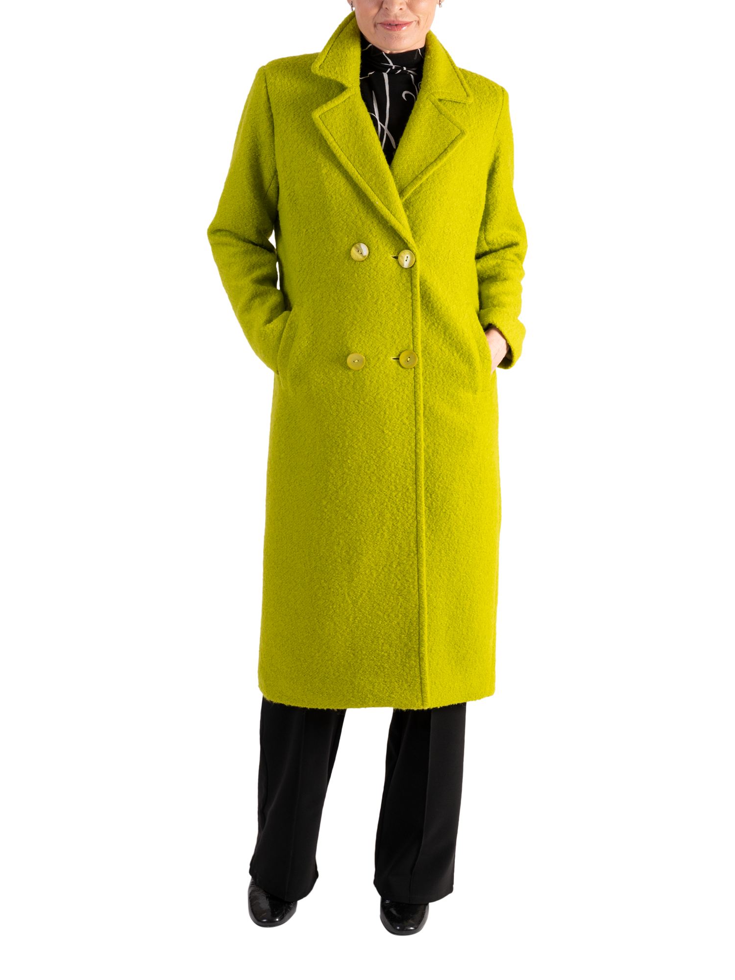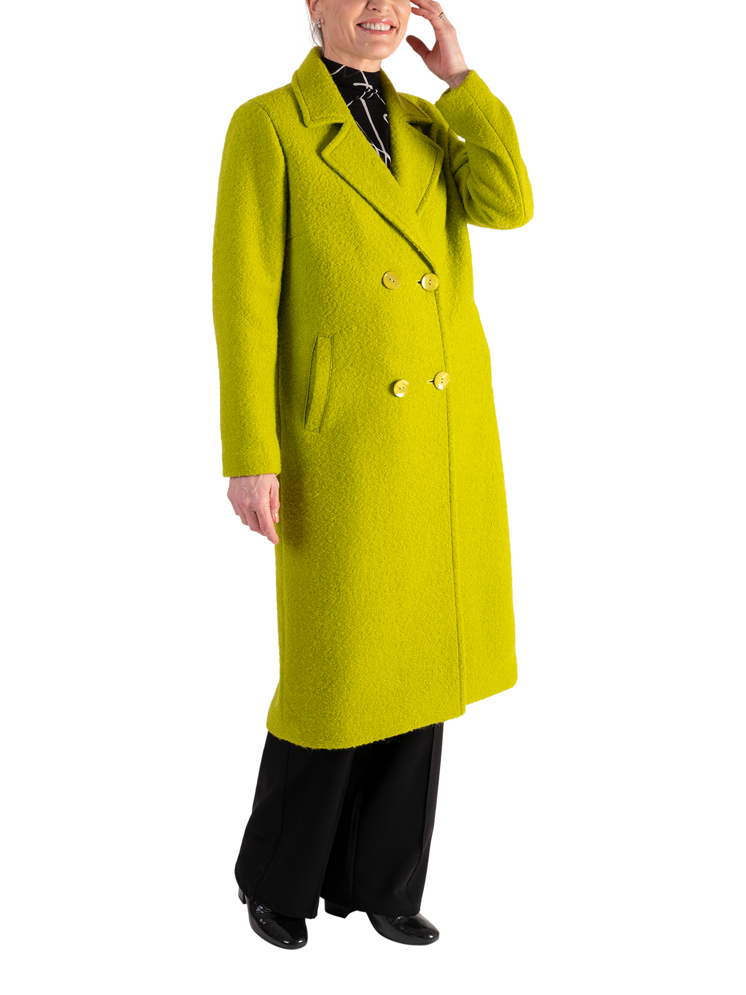 chescaDouble Breasted Wool Blend Coat, Lime
