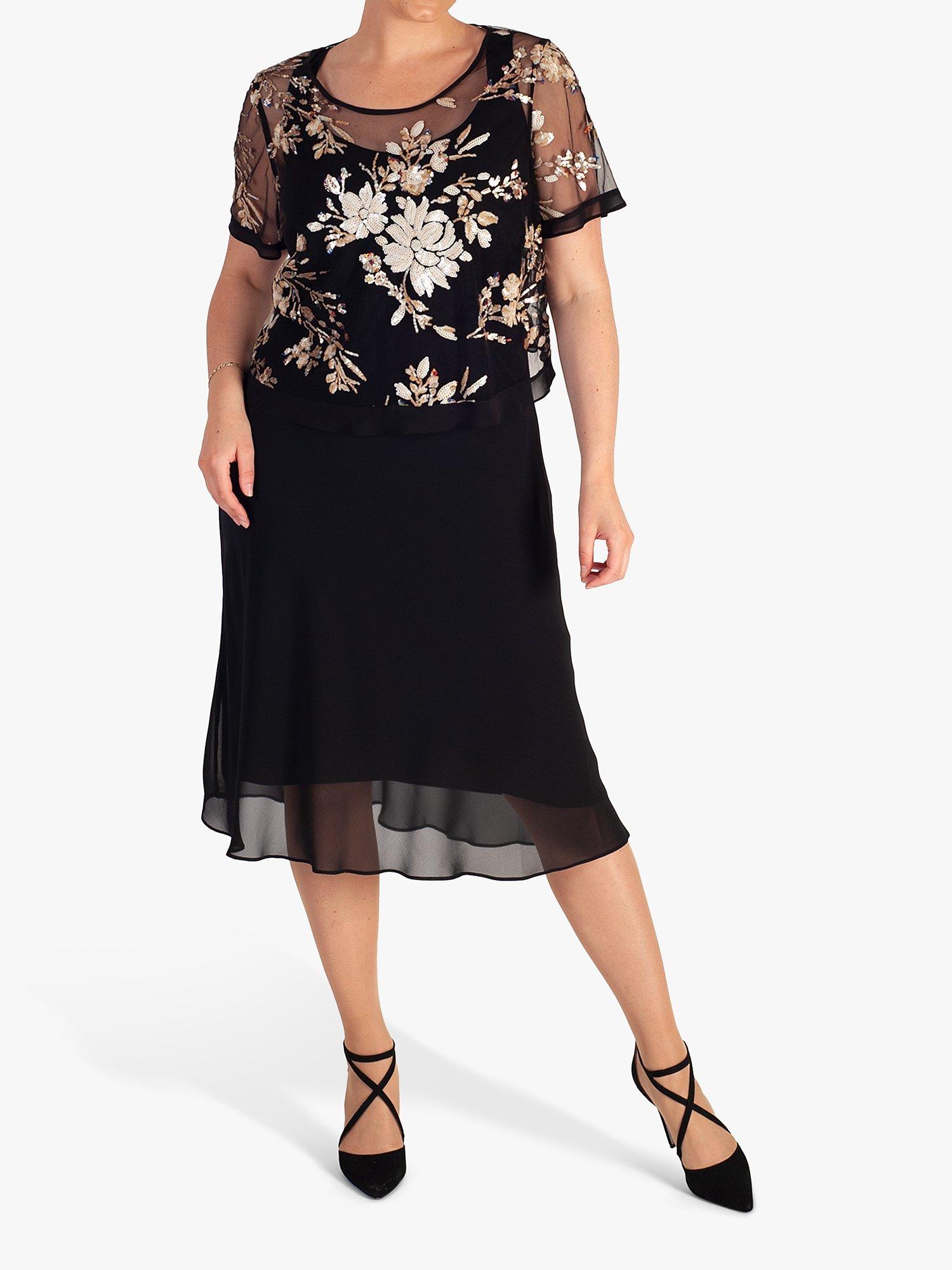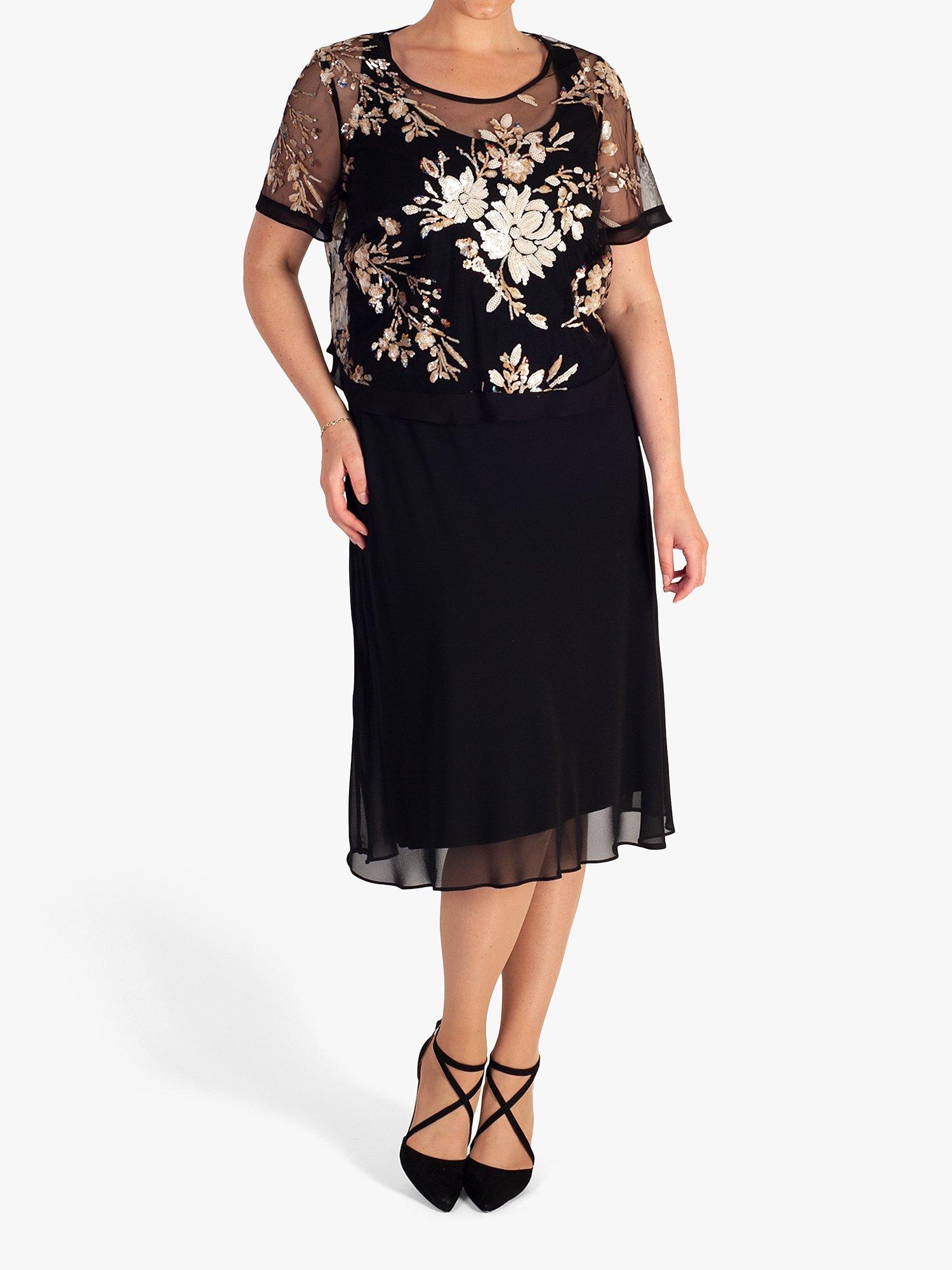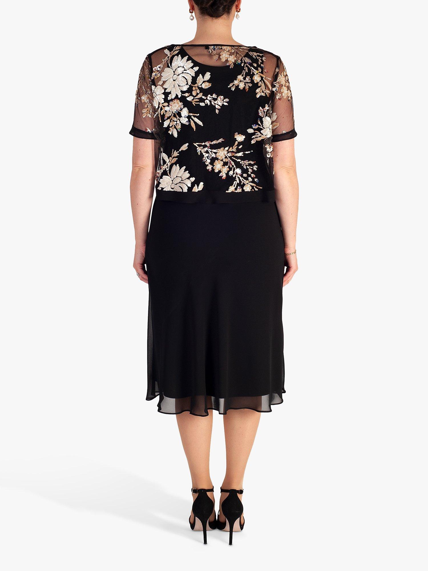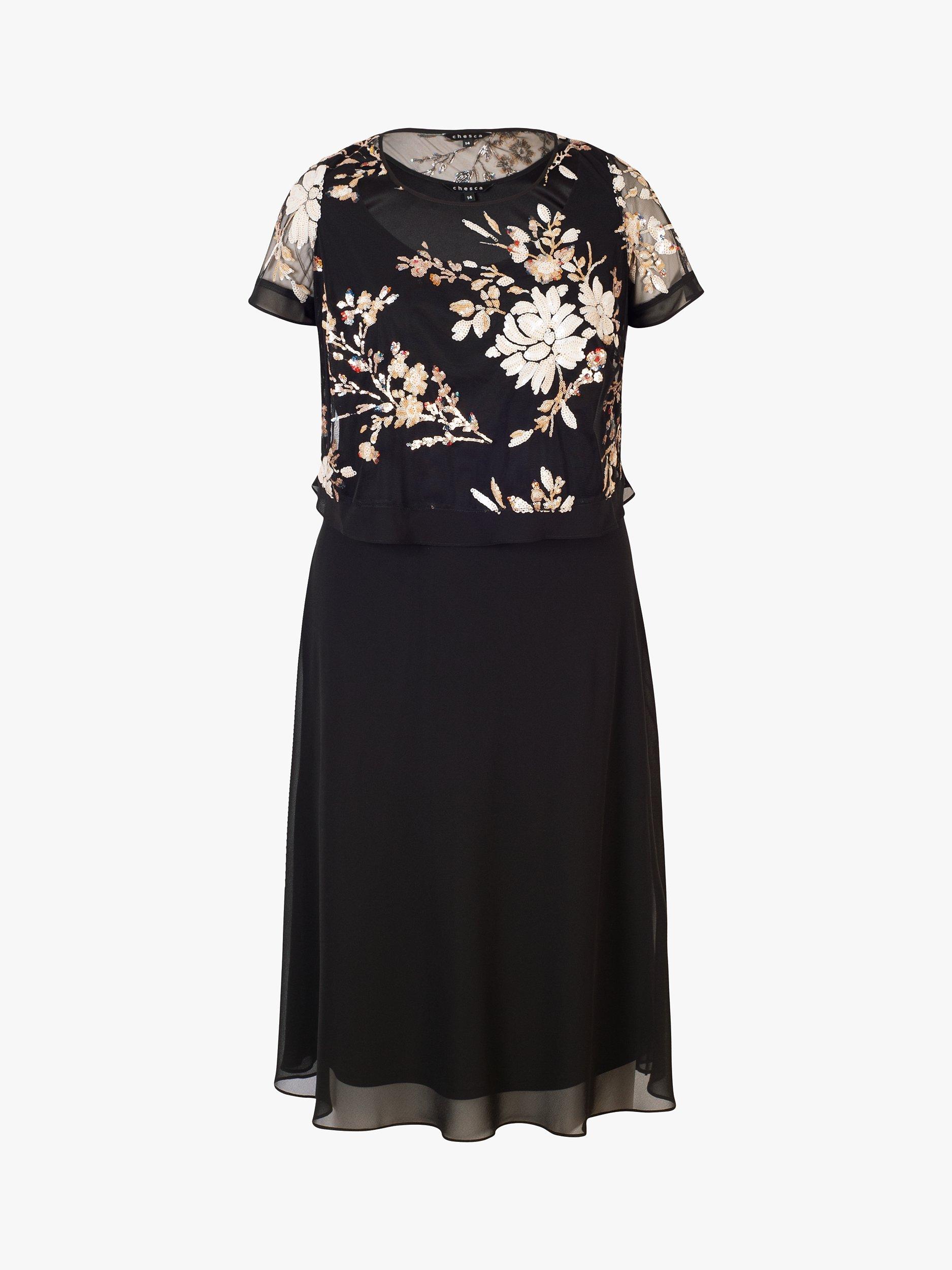 Designed to a timeless shift silhouette, this knee-length dress by chesca is accented with pretty floral embellishment.