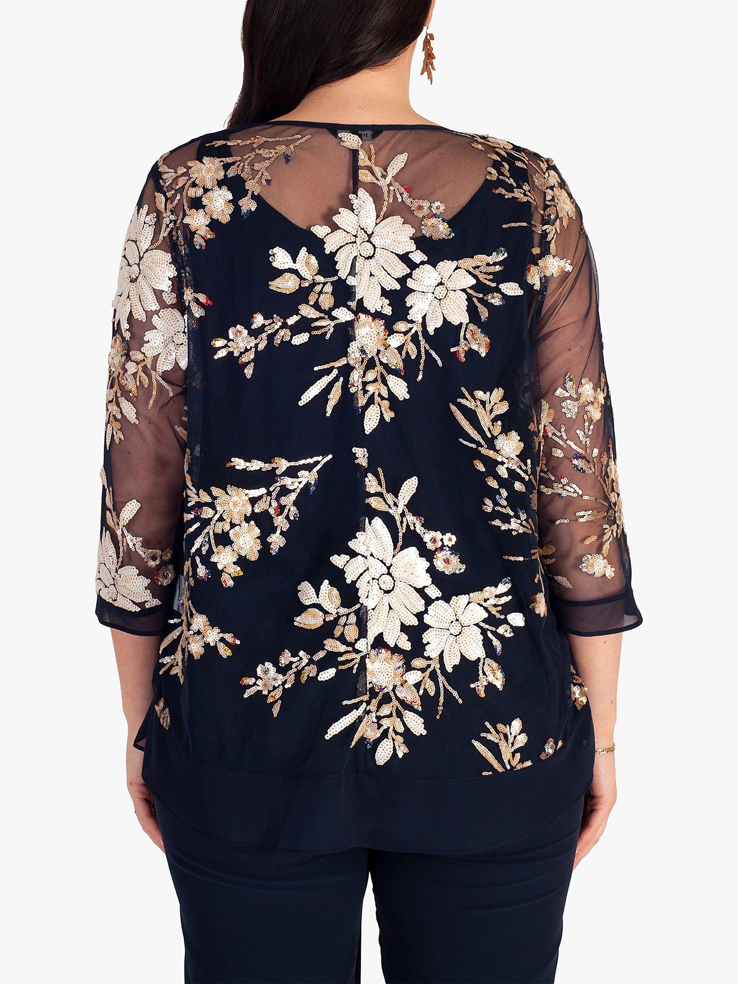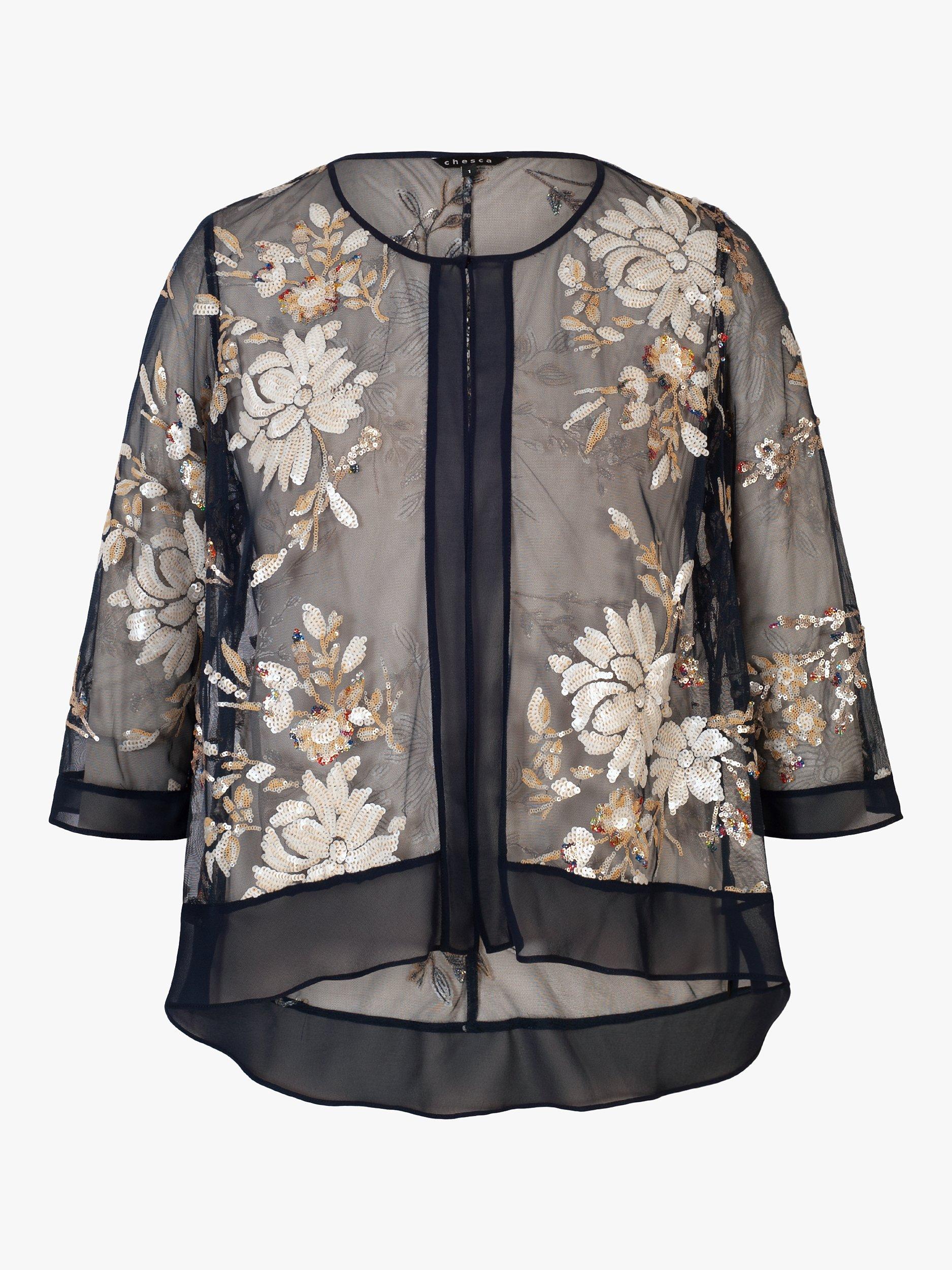 chescaEmbroidered Sequin Jacket, Navy