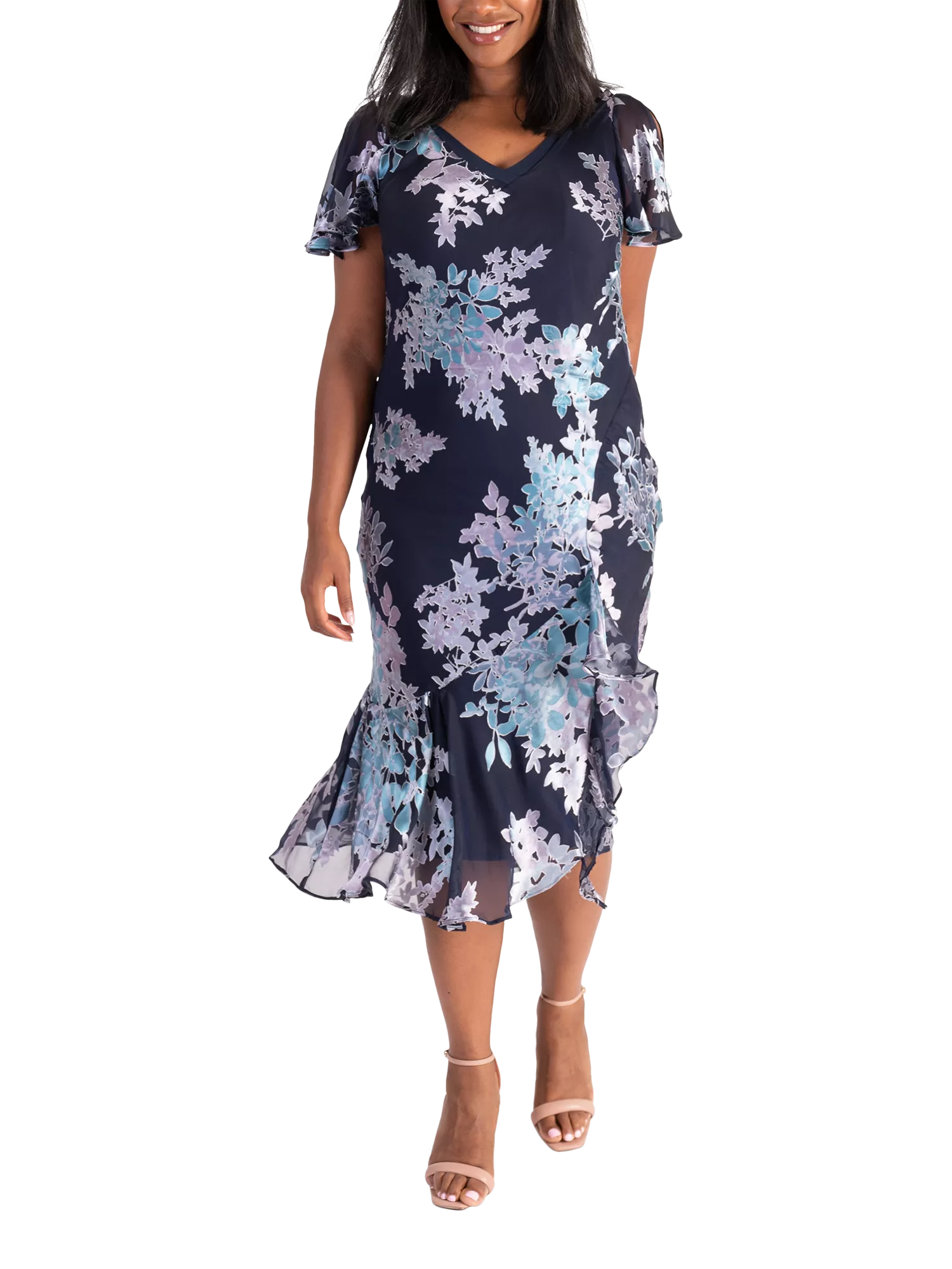 Crafted from a soft and comfortable silk blend fabric and doused in an enchanting leaf trail, this devoree print dress from chesca is an elegant option for parties and special occasions. With a V front and back and finished with feminine angel sleeves, the skirt has flattering seaming to give a full swishy feel.