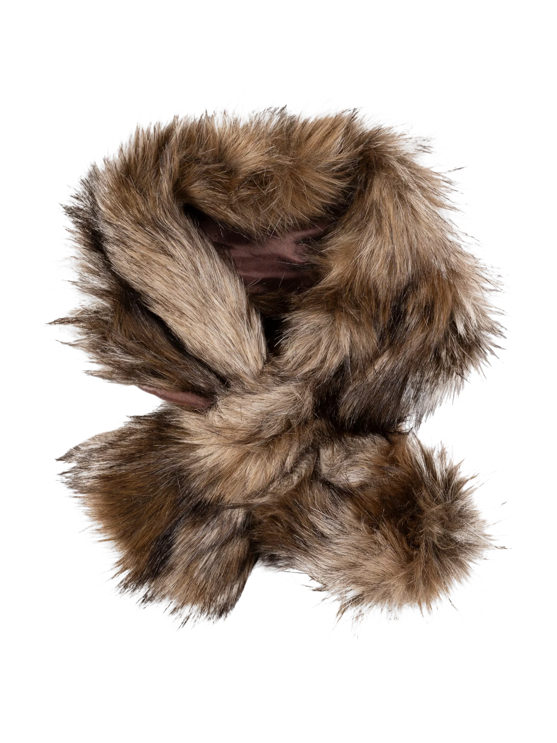 Luxurious brown and black faux-fur scarf. This scarf has a satin underside and a slip through knot for easy fastening. Wear over your coat or jumper to keep you warm and look glamourous on those cooler winter days.