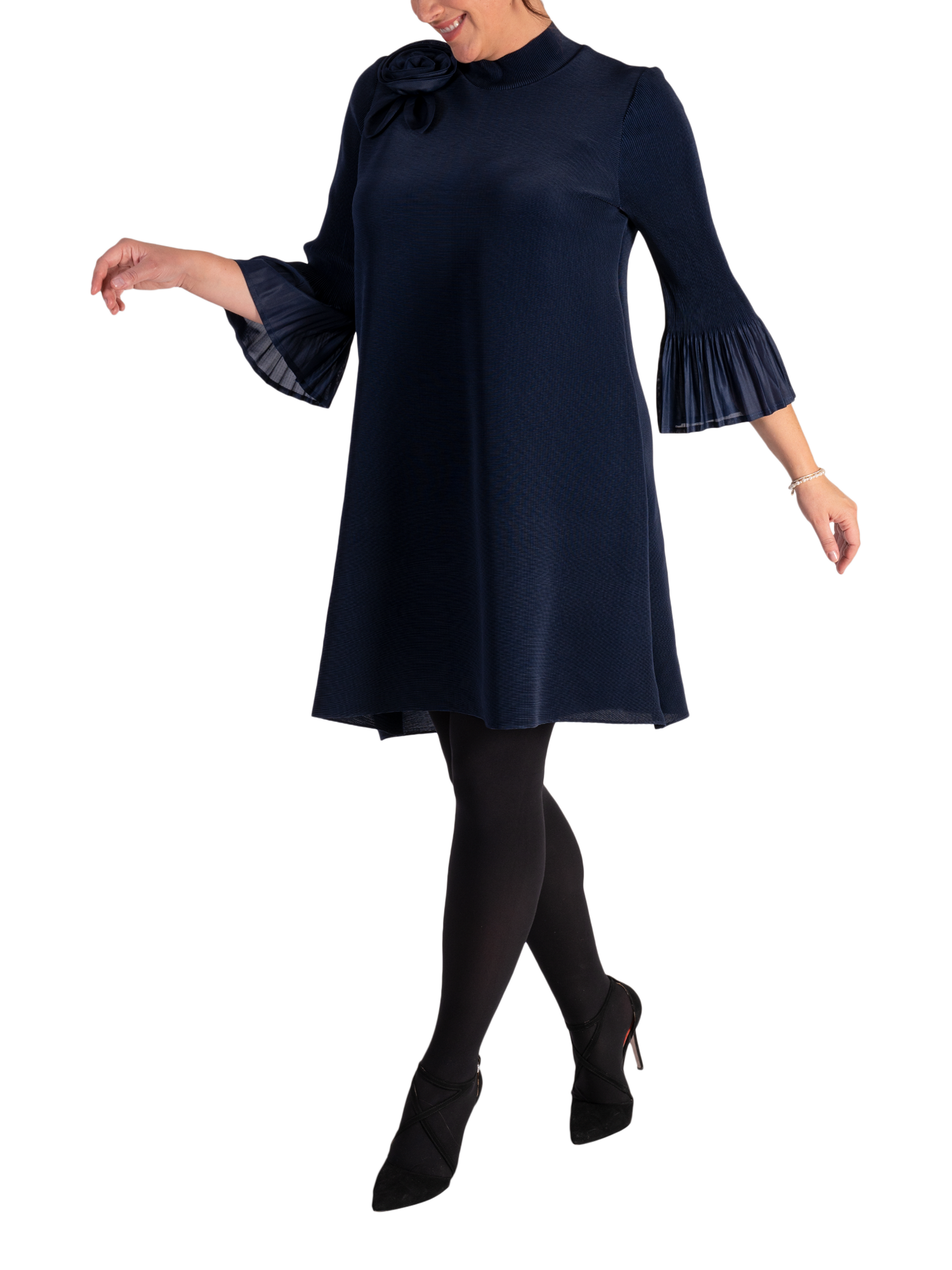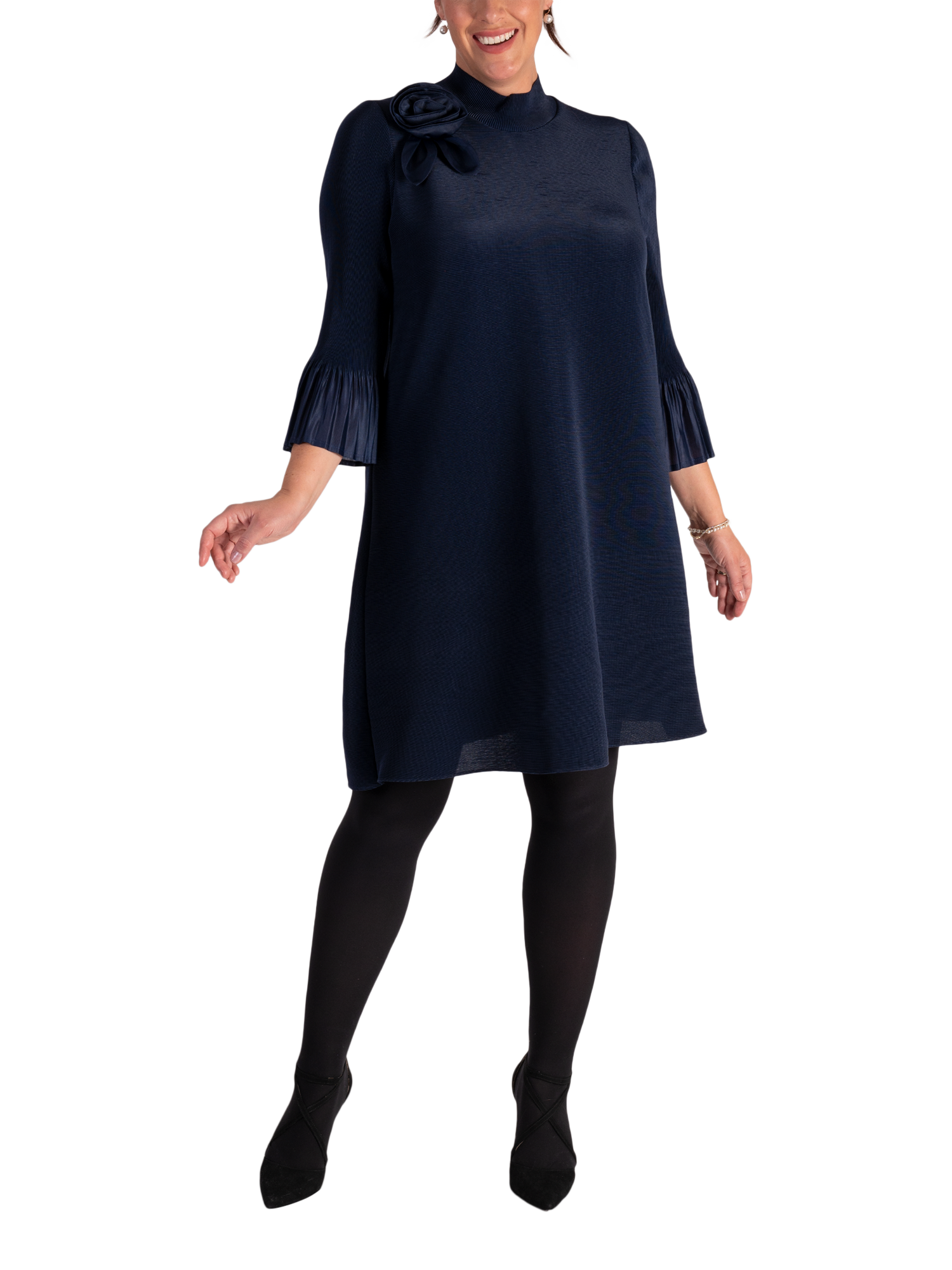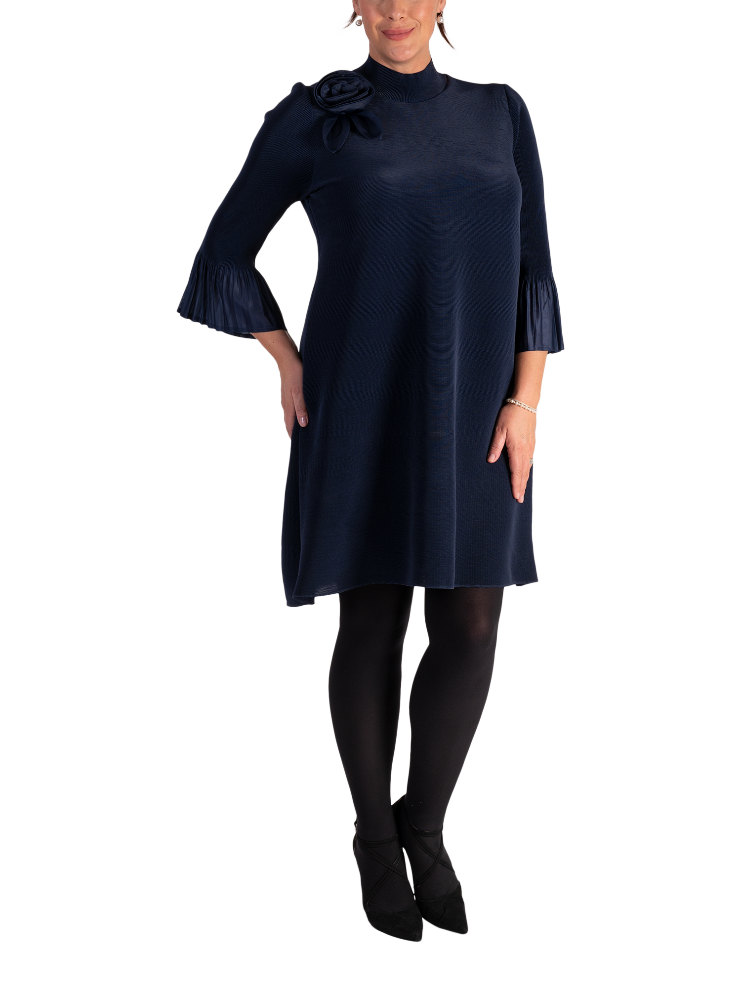 With a nod to the days of Carnaby Street, this playful A-line plissé midi dress from Chesca is perfect for any occasion or event where you want to turn heads. Statement fluted sleeves and an applique on-the-shoulder flower bring this dress to life, making it ideal for both special occasions and stylish everyday wear. With its flattering fit and timeless design, it s the perfect addition to any wardrobe for a fresh, feminine look.