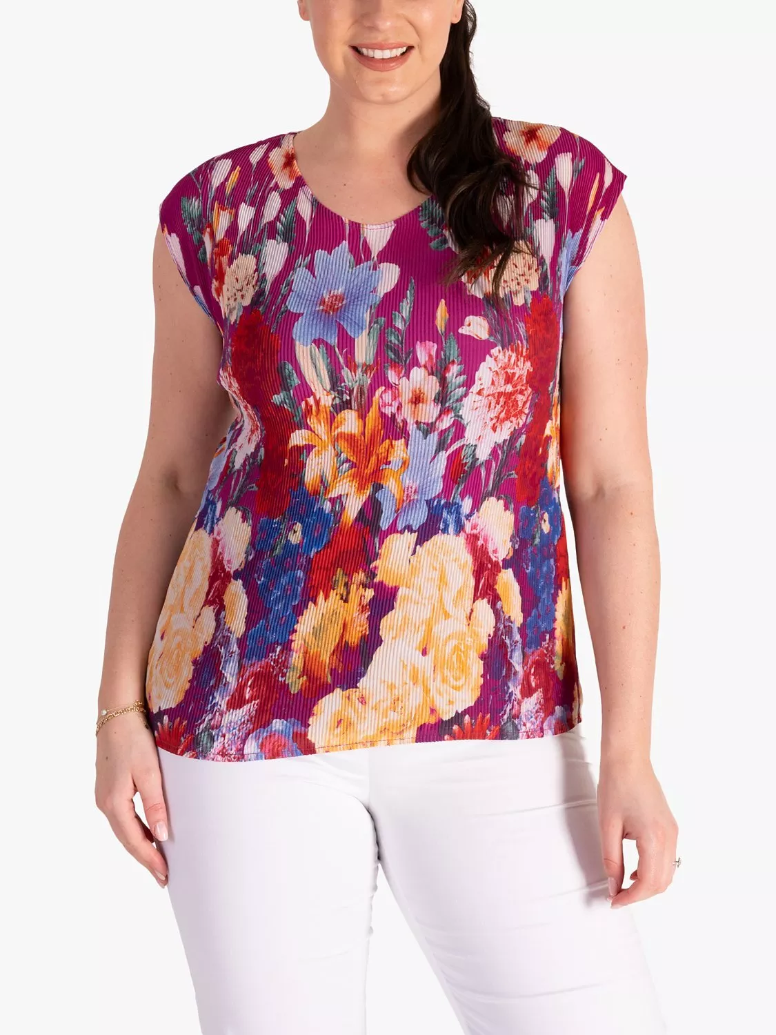 Bolstering your daytime collection, this t-shirt by chesca stays feminine with a pretty floral print.