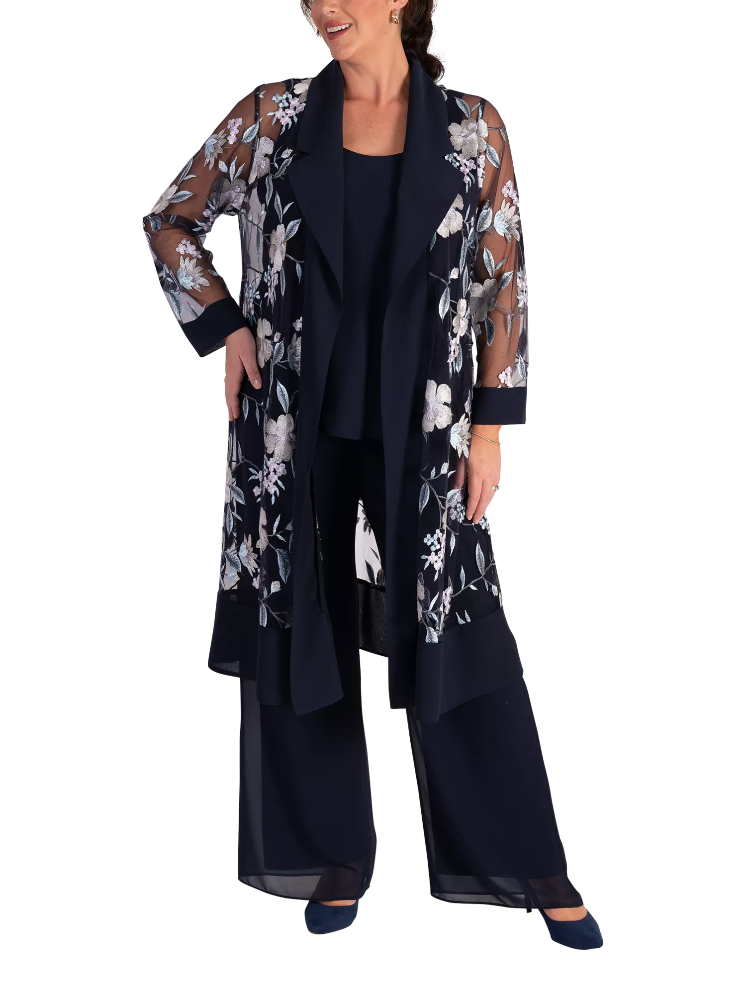 A simple way to elevate your look, this superstar piece from Chesca falls to a versatile knee-length hem for practical coverage. Crafted from floral embroidered mesh in pastel colours and neatly framed with shawl neckline in chiffon, this elegant coat is finished with a chiffon trim at the hem. Pair with either palazzos or a bias cut dress from the collection, add a touch of jewellery and you have a stunning outfit for the mother of the bride/groom, guest at a wedding or any special event.