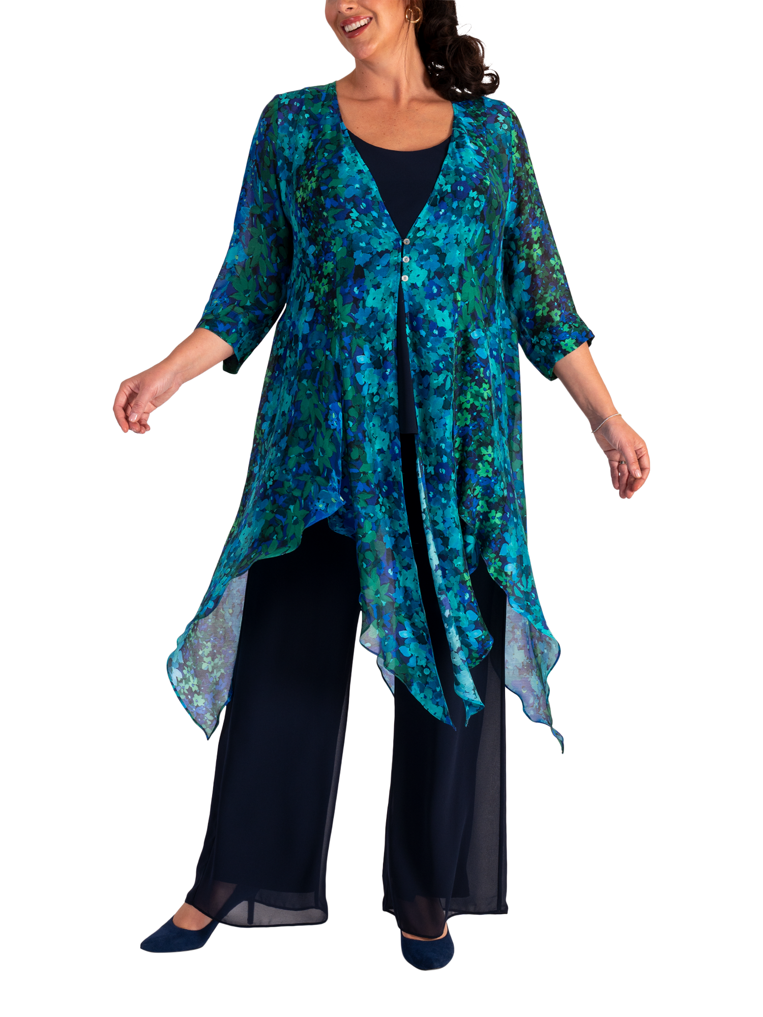 Expand your warm-weather wardrobe with the help of chesca and this lightweight pixie coat, a design dominated by vibrant florals.
