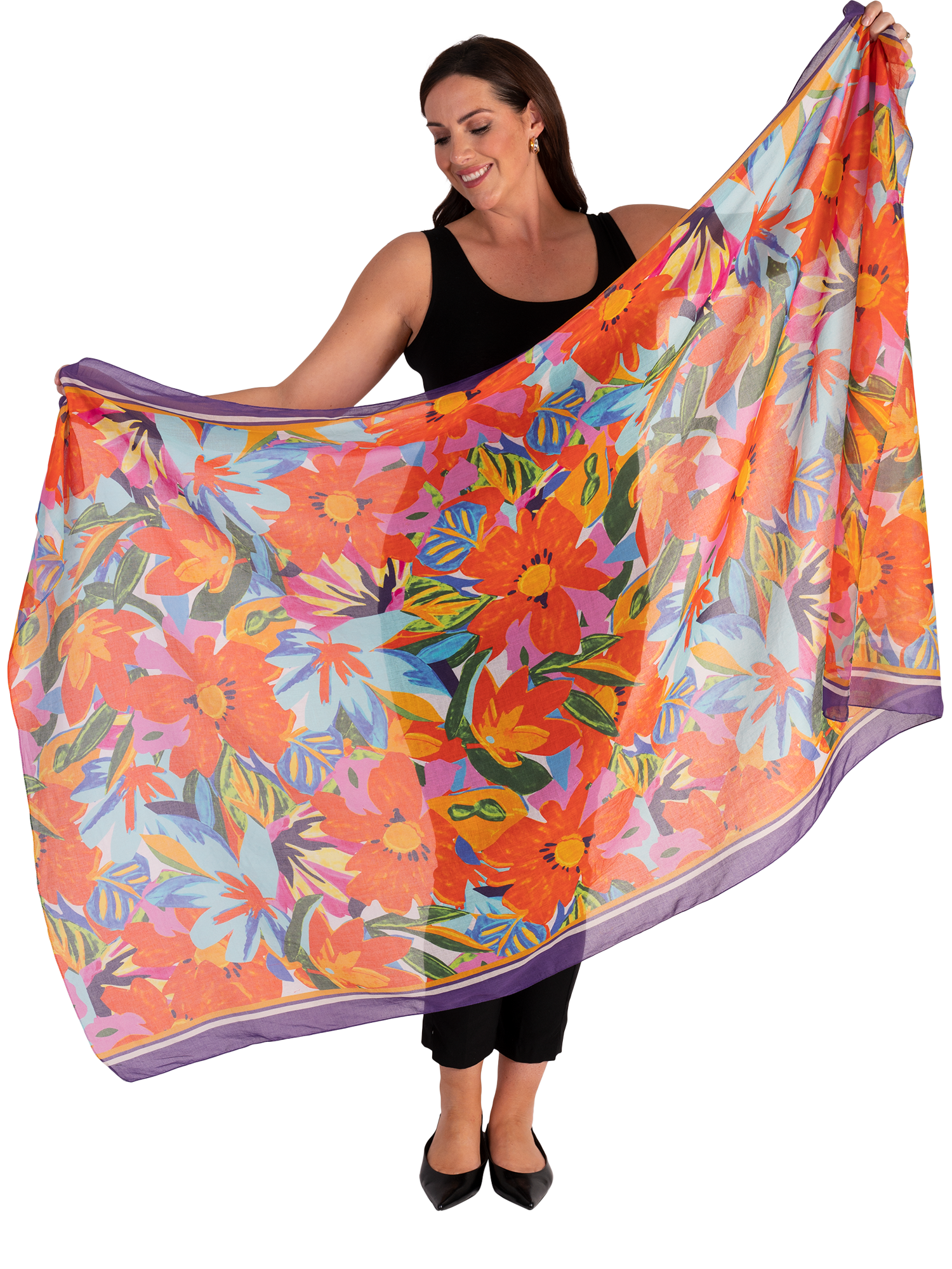 chesca applies a striking print to a soft cotton base to create this bold yet incredibly practical scarf.