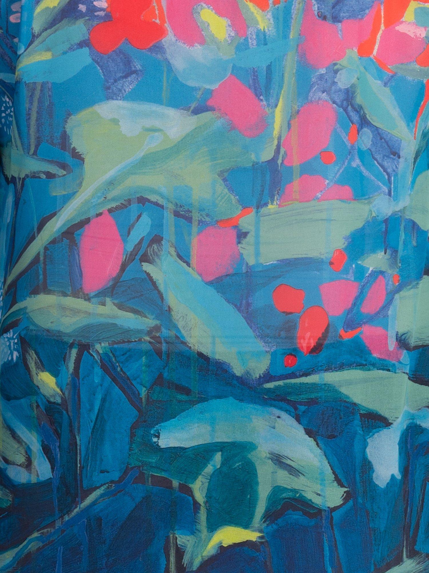 Opt for an eye-catching look with this elegant sheer blouse, awash with a vibrant abstract botanical print. Framed with a crisp collared neck and long sleeves, it is made with from a feminine chiffon fabric and is ideal for easy daytime wear. Pair with refined separates for a smart contemporary look.
