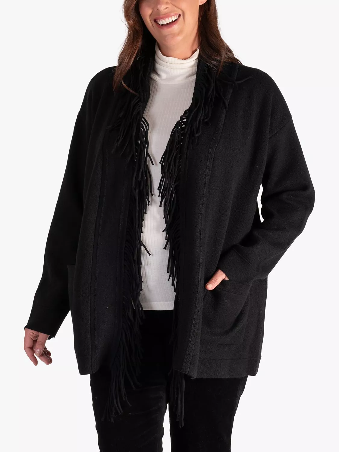 Layering neatly over dresses and tops alike, this cardigan by chesca features a subtly textured handle and keeps the cold at bay with the wool-rich blend.