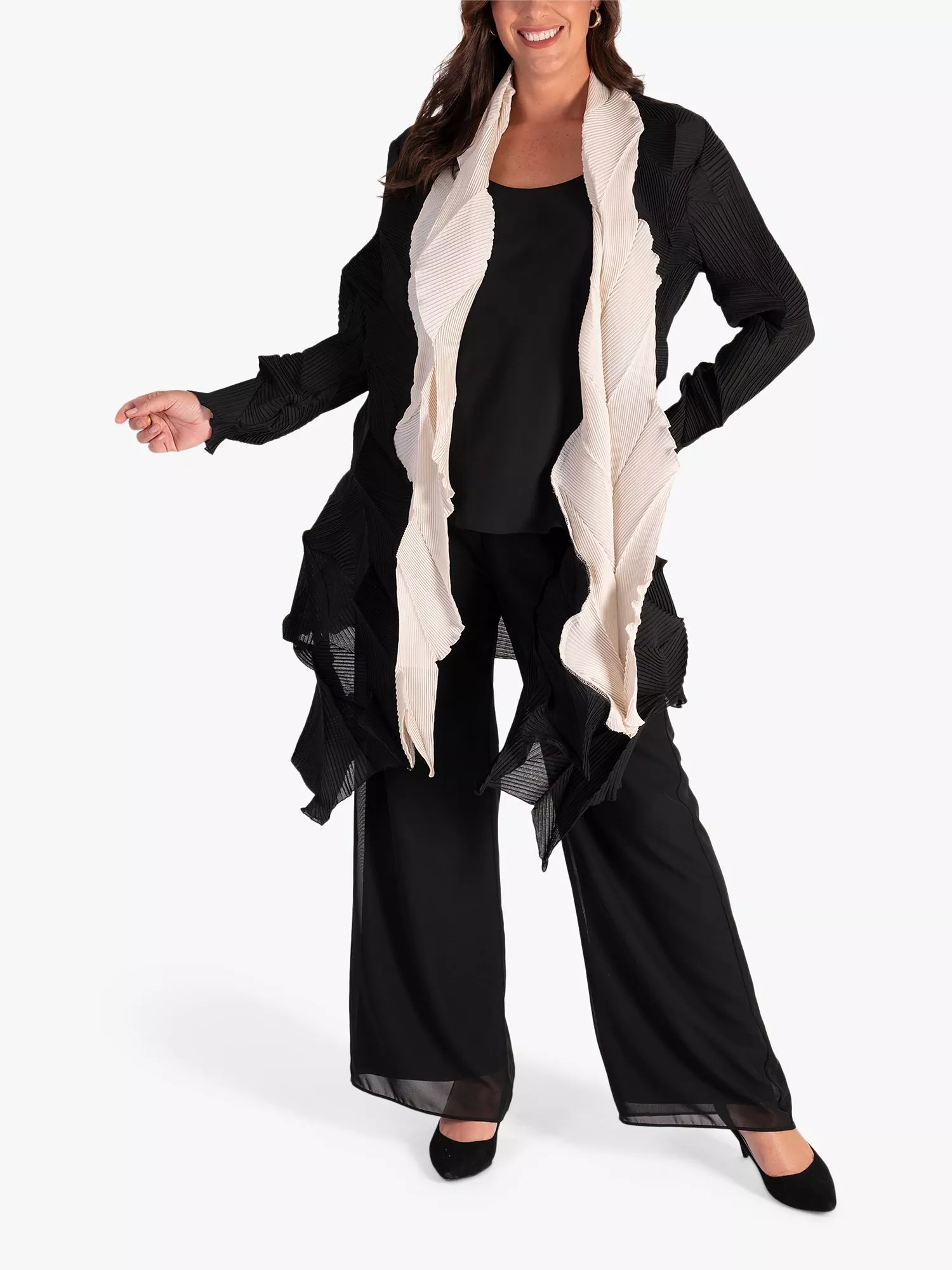 An unique layering piece, this lightweight shrug from chesca is crafted from 3D pleated chiffon producing a stunning sculpural effect. Designed with a relaxed, open neckline and three quarter length sleeves, this style elongates your profile with its longline cut and is ideal to throw over a smart-casual outfit to create a modern, edgy look.